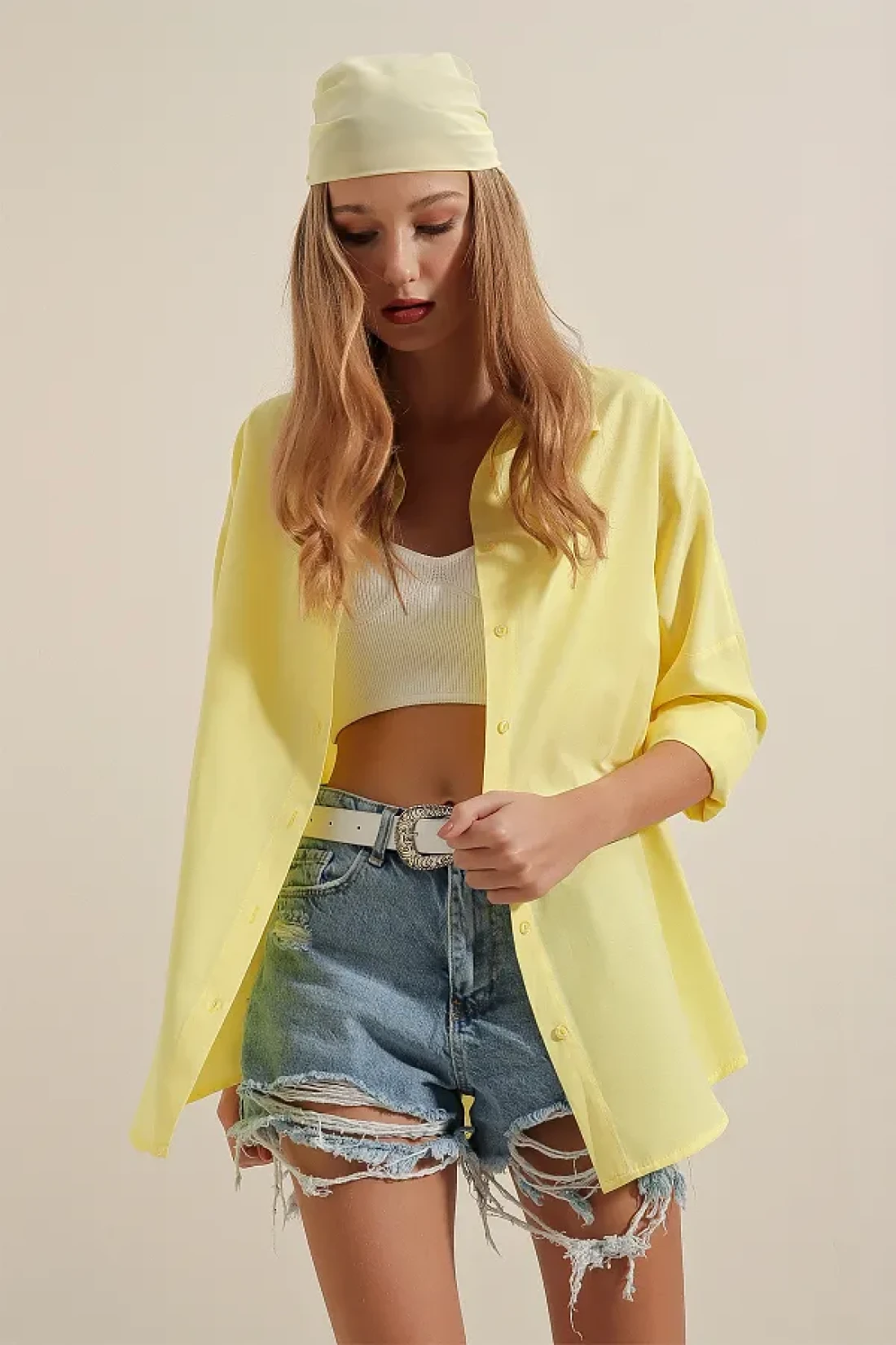 النوع المسطح من المنتج مثالي لأولئك الذين يفضلون البساطة - فهو يتناسب بسهولة مع أي ملحق. تم تصميمه بأسلوب عرضي يمكن تفضيله بسهولة في البيئات اليومية. تبرز ياقة القميص بمظهرها الأنيق والبعيد عن الرسمية. بفضل نوع القماش المنسوج، فهو متين ويعد بالاستخدام على المدى الطويل. يضيف النمط الكبير الحجم إلى أسلوبك الحديث والمريح مع زيادة حرية حركتك. لديه نمط مخطط يصبح رائجًا في كل موسم كجزء من المجموعة الأساسية؛ يعطي مظهرًا خالدًا.
