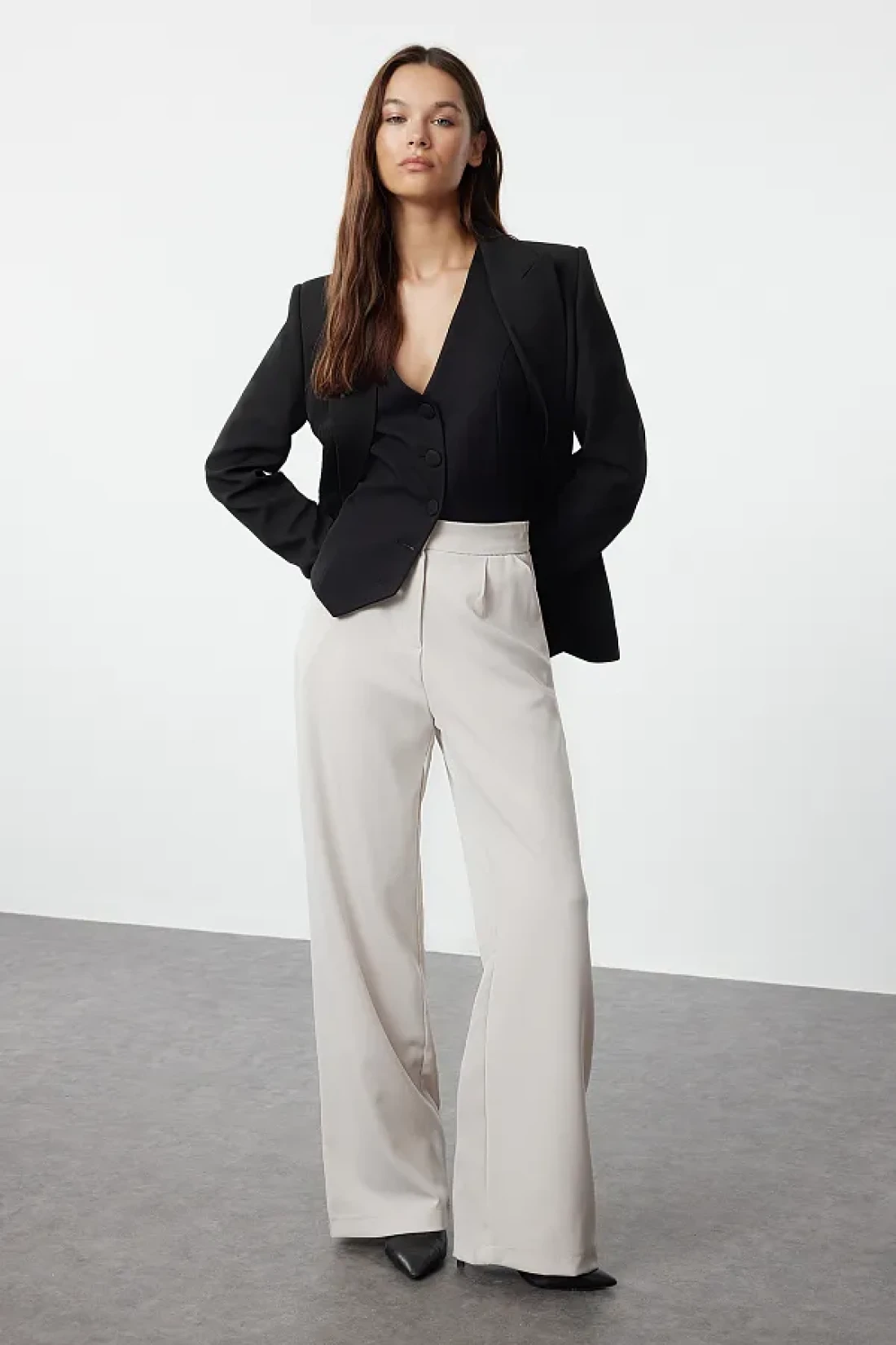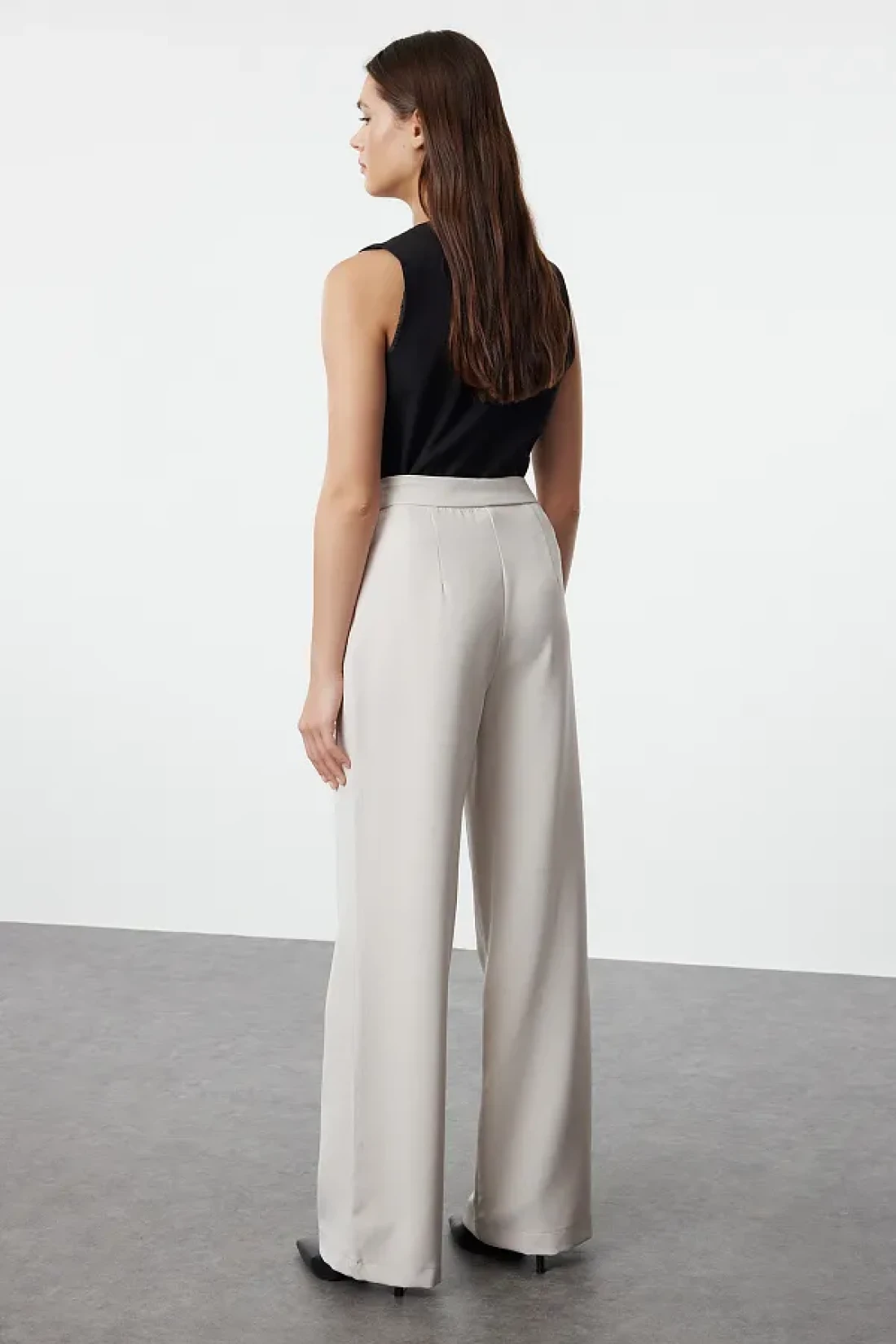 Collection بنطال منسوج باللون البيج بأرجل واسعة - TWOAW22PL0139