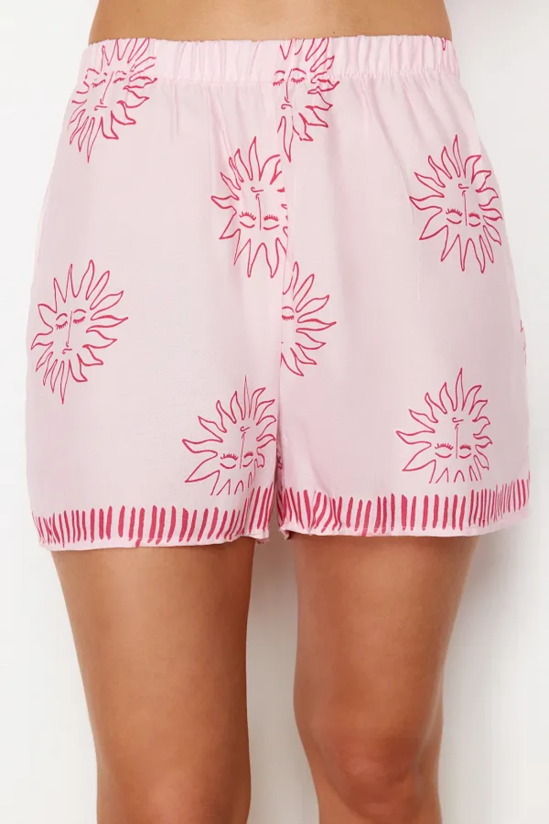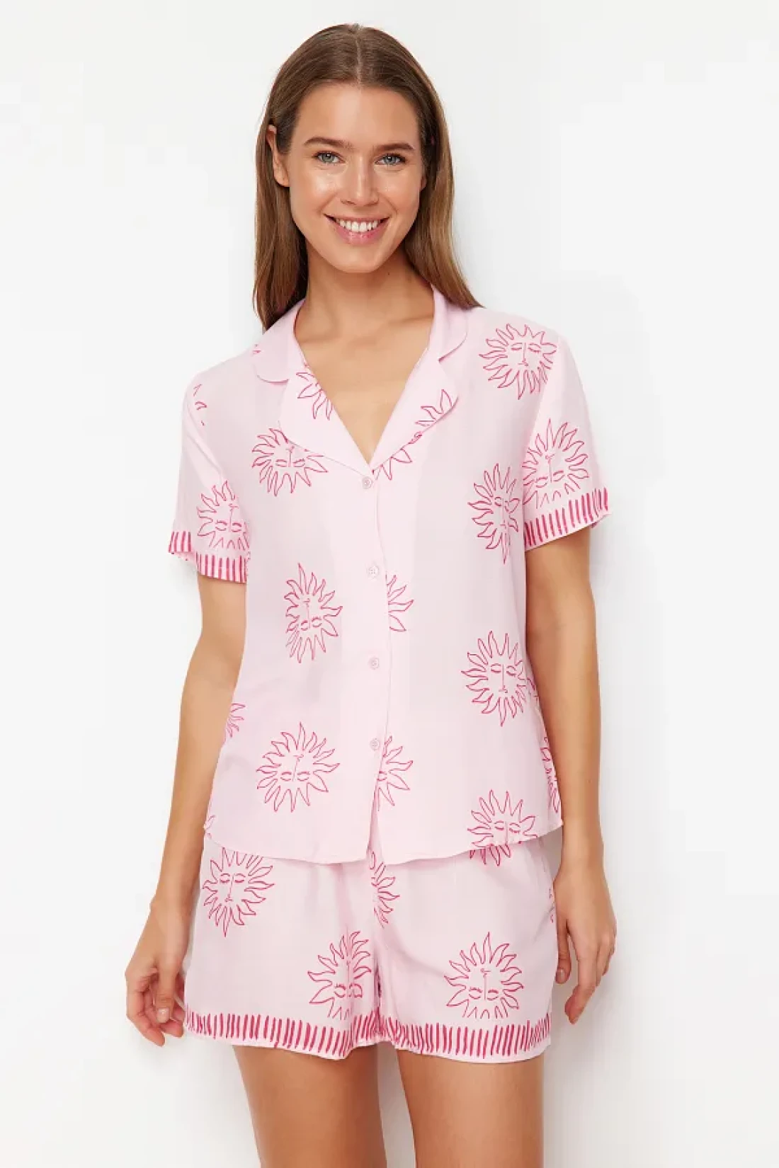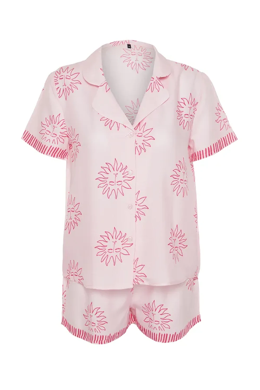 Collection طقم بيجامة منسوجة بنقشة الشمس الوردية مع شورت فيسكوز THMSS24PT00009