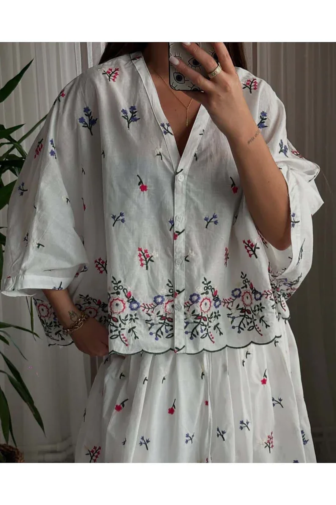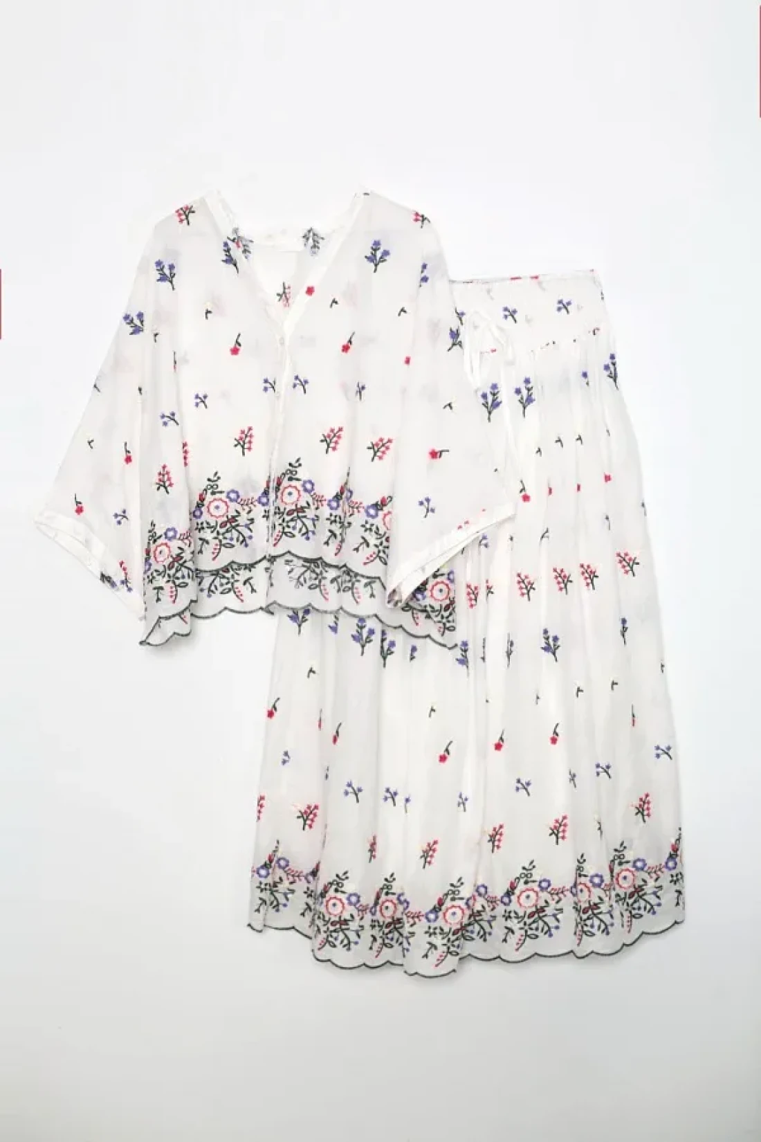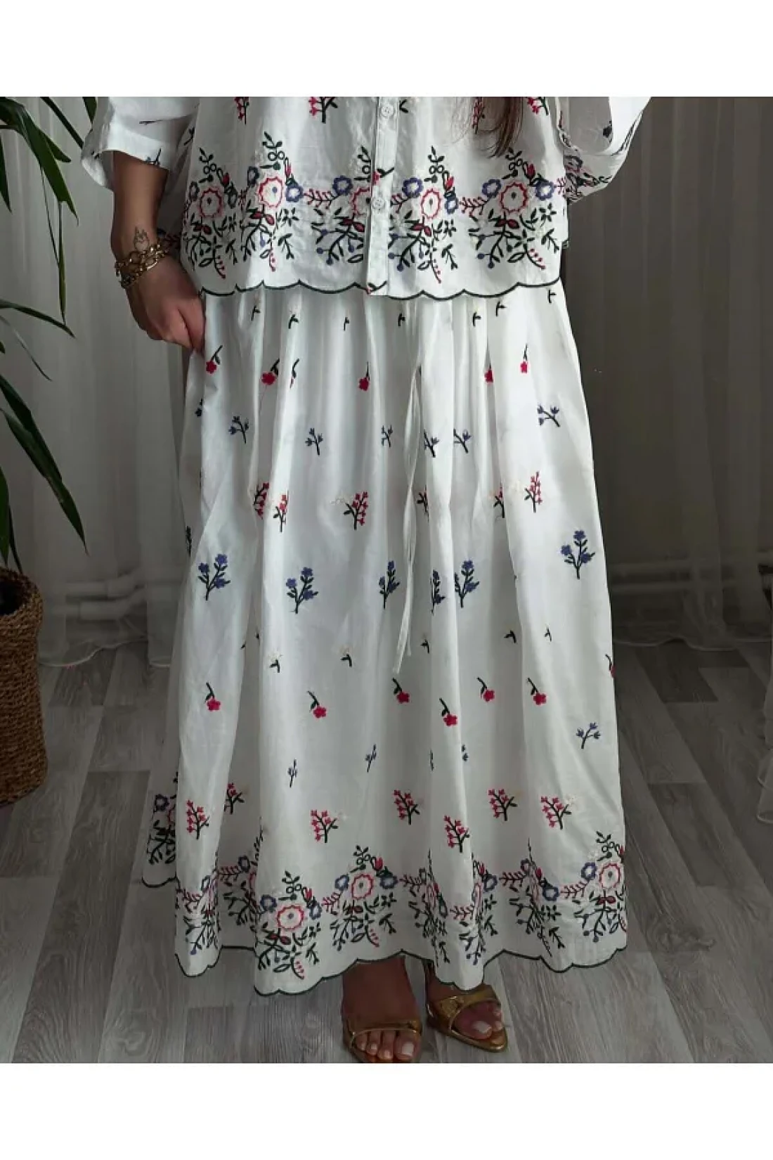 Lavanta Tekstil طقم تنورة قميص مطرزة