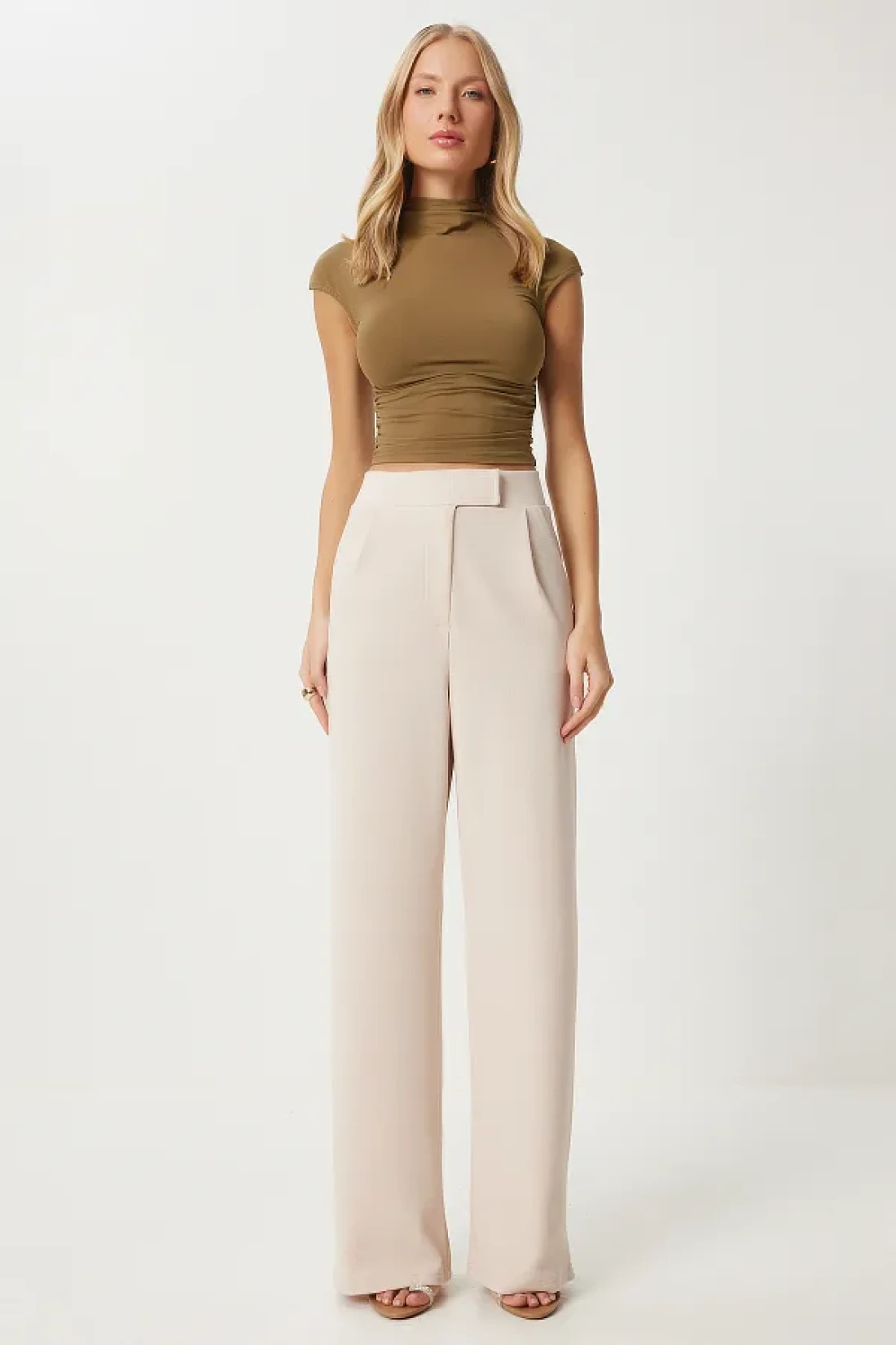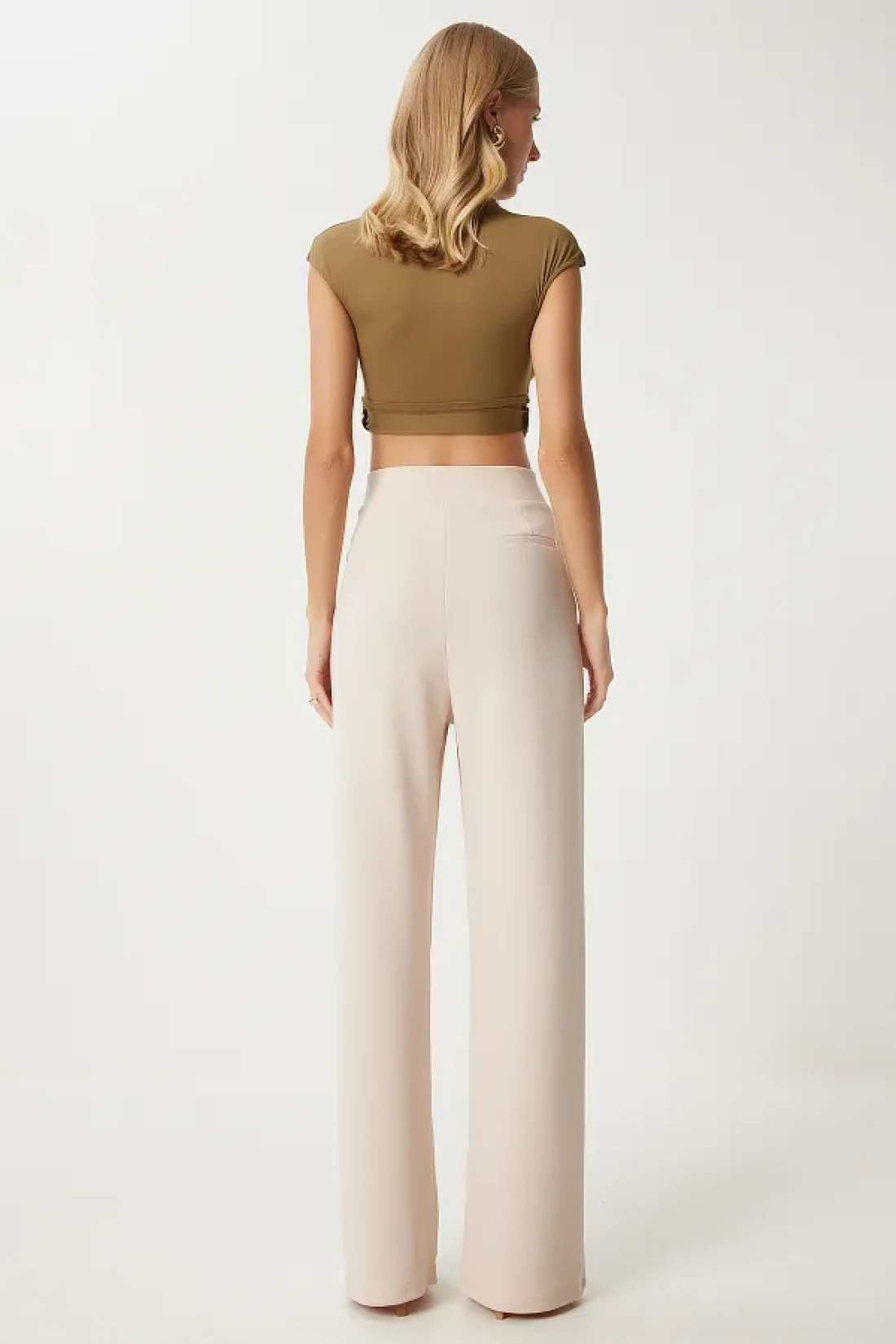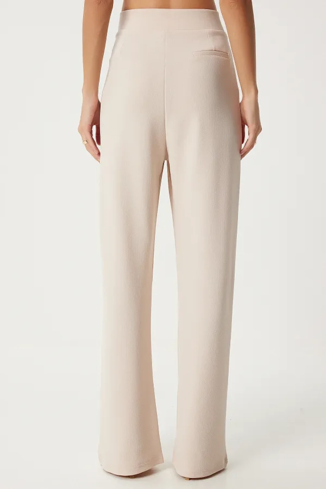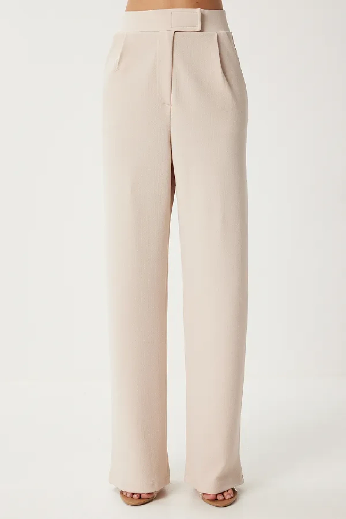 Happiness İstanbul بنطلون نسائي منسوج مريح بخصر كريمي وفيلكرو RV00150
