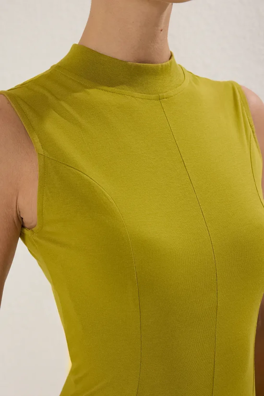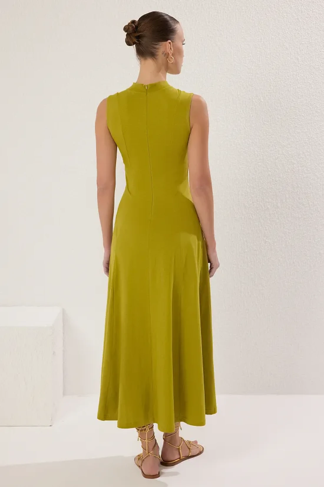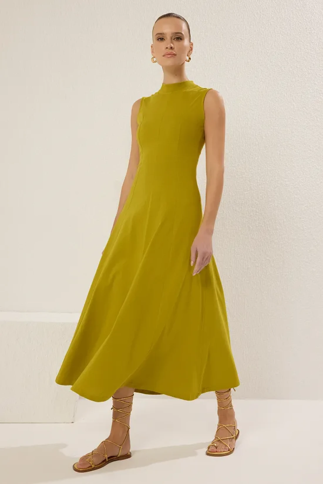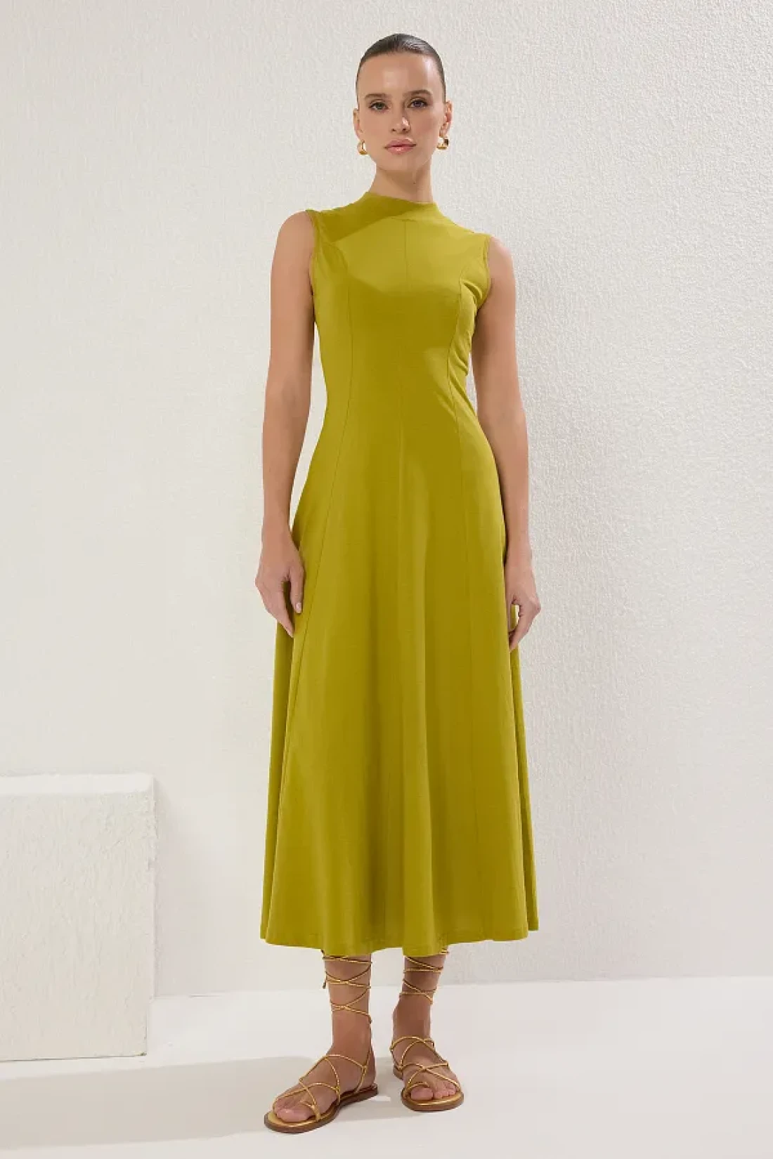 Collection فستان طويل محبوك من القطن باللون الأخضر الداكن على شكل حرف A/Bell-Cut TWOSS25EL00462