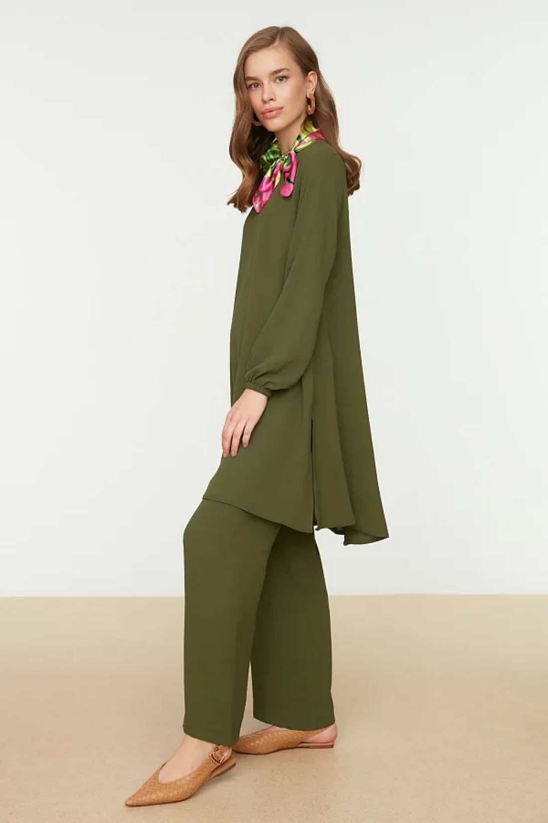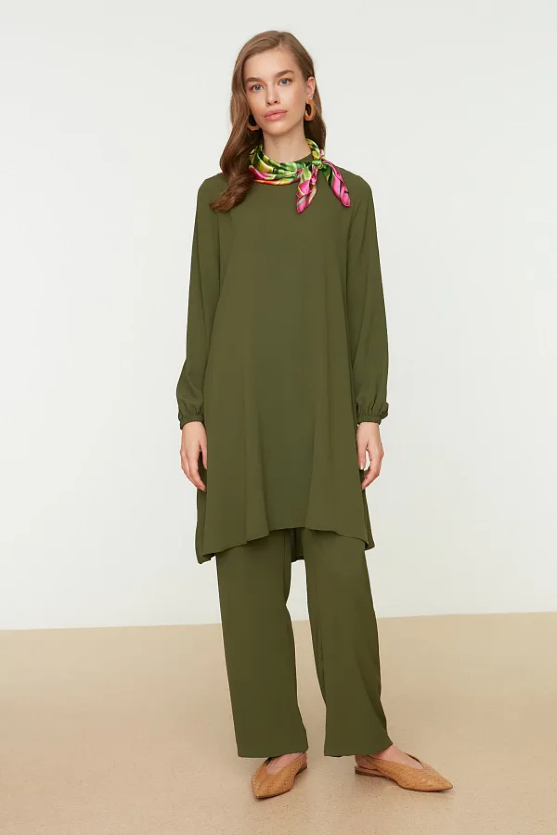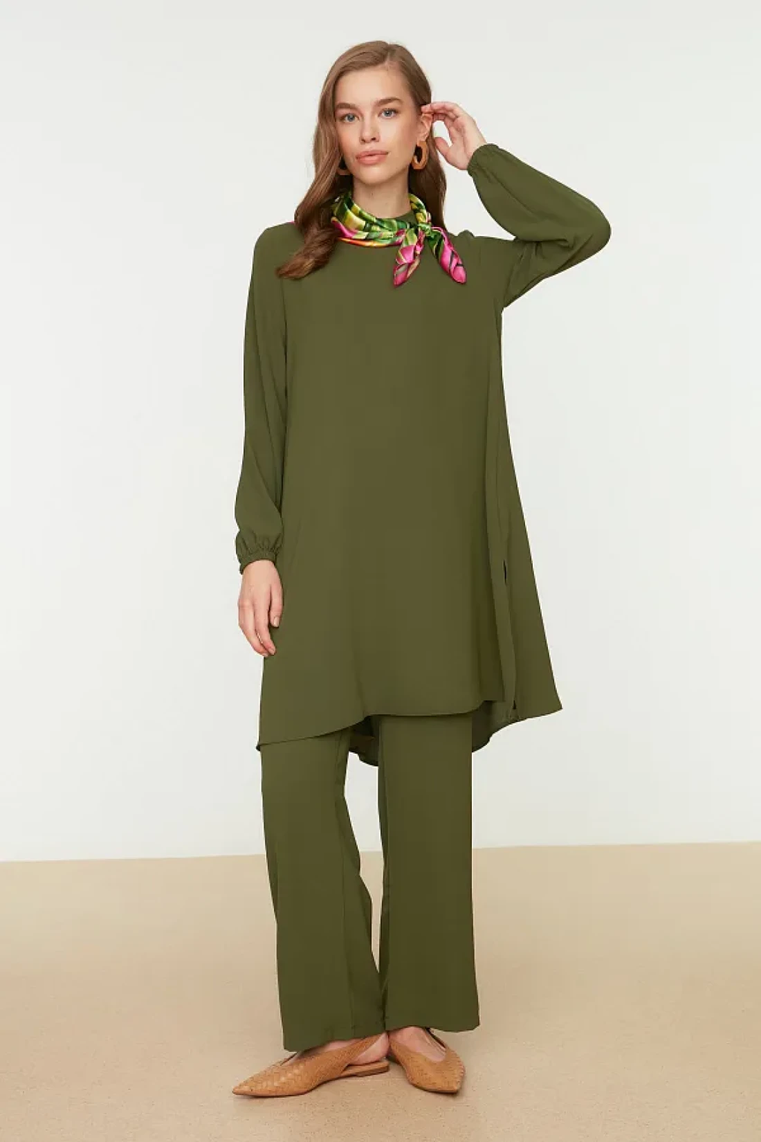 Modest طقم منسوج بأكمام كاكي مرنة وواسعة الساق من Aerobin - بنطلون TCTSS22US0023