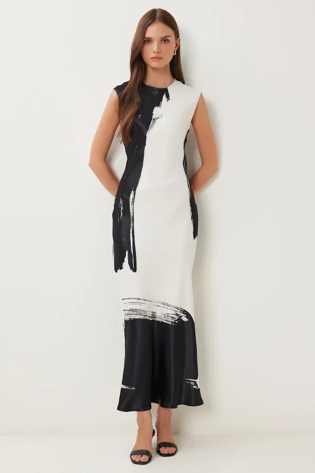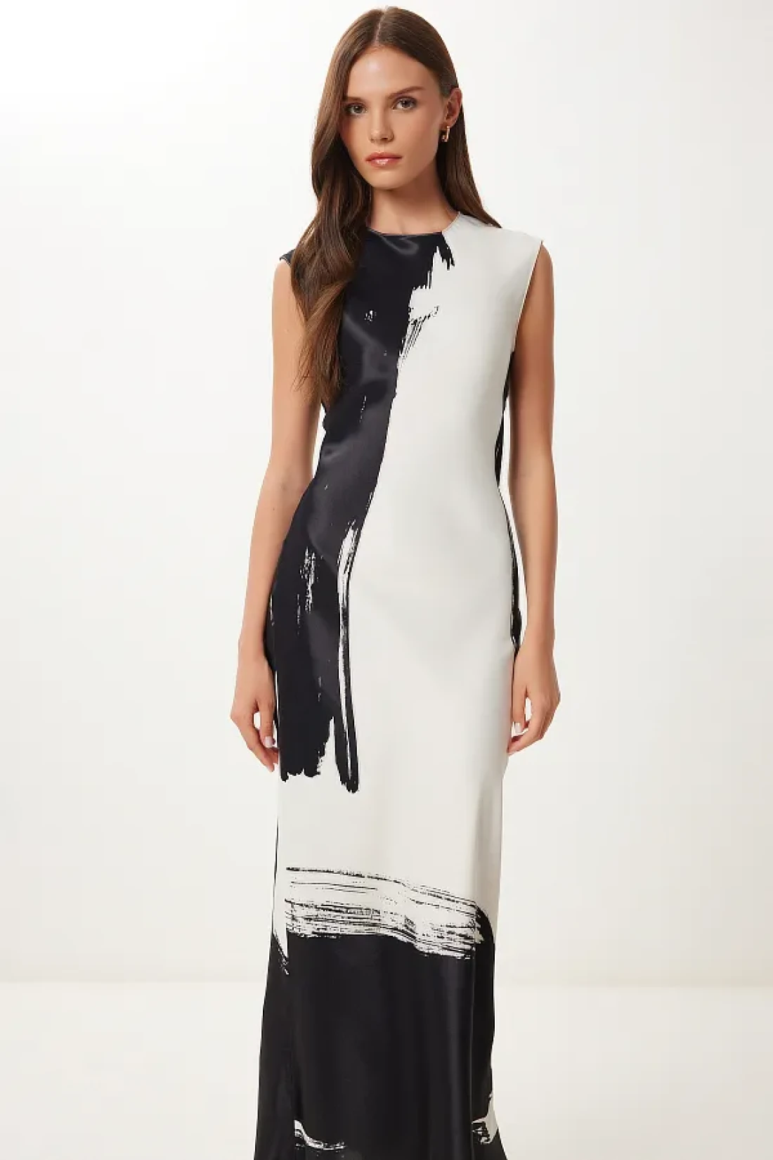 100٪ فيسكوز؛ فستان طويل برقبة دائرية، بدون بطانة، ملائم للجسم، مطبوع، سطح الساتان؛ طول المنتج: 145 سم؛ قد تختلف الألوان في لقطات الاستوديو بسبب اختلافات الإضاءة. الارتفاع: 1.74 سم، الصدر: 82 سم الخصر: 62 سم الورك: 88 سم
