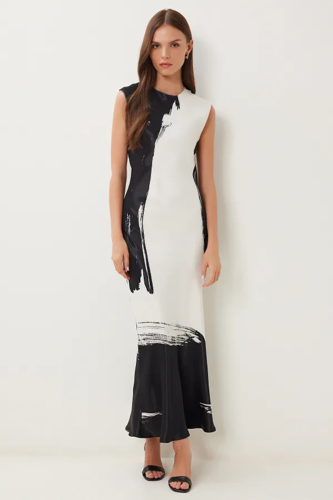 Happiness İstanbul فستان نسائي أسود من الساتان بنمط عظمي VW00008
