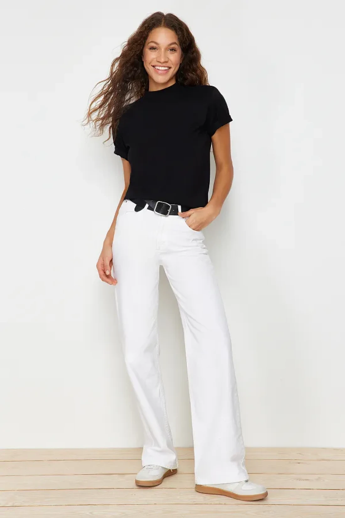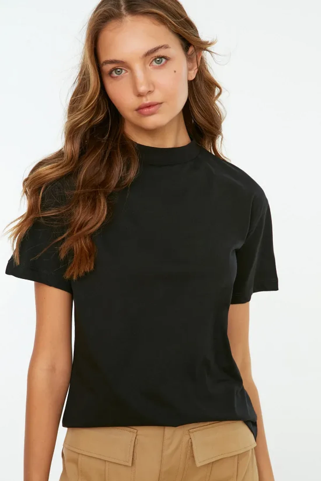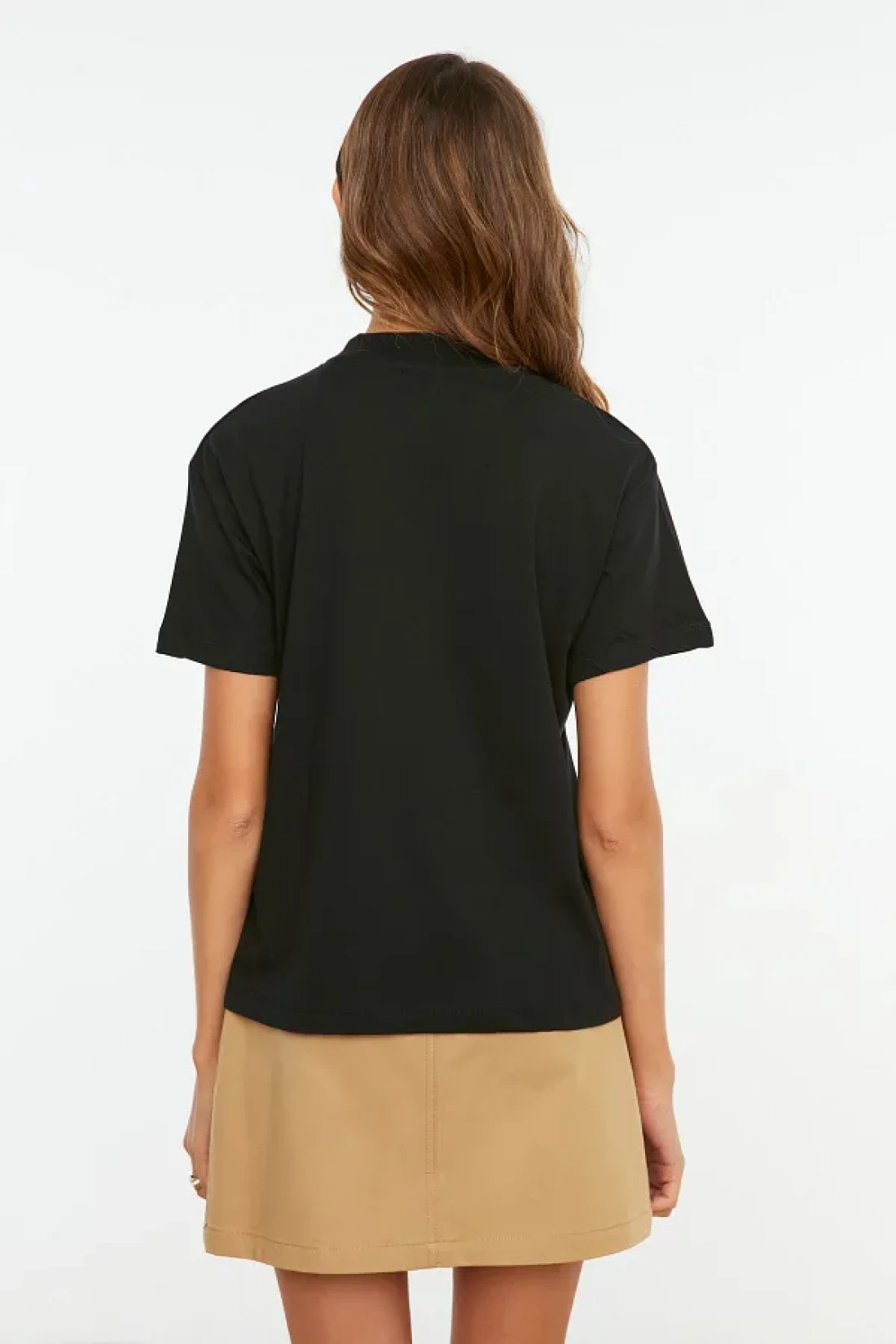 Collection تي شيرت أسود بياقة واقفة 100% قطن - TWOAW20TS0096