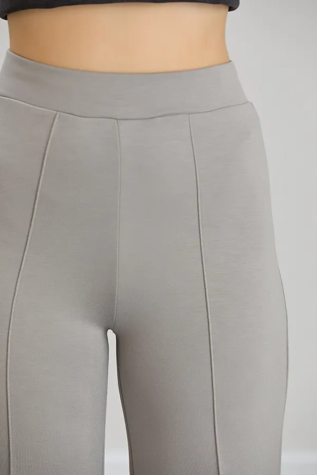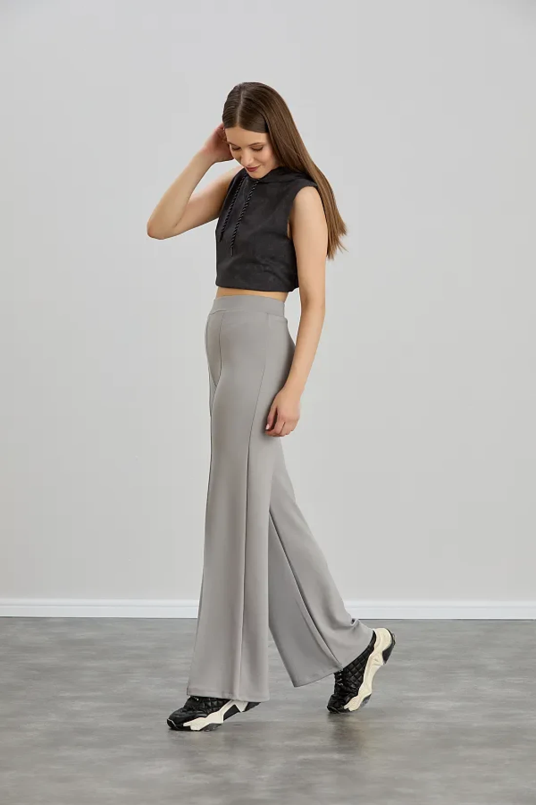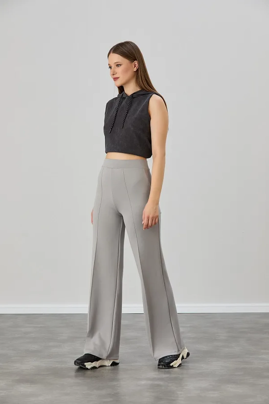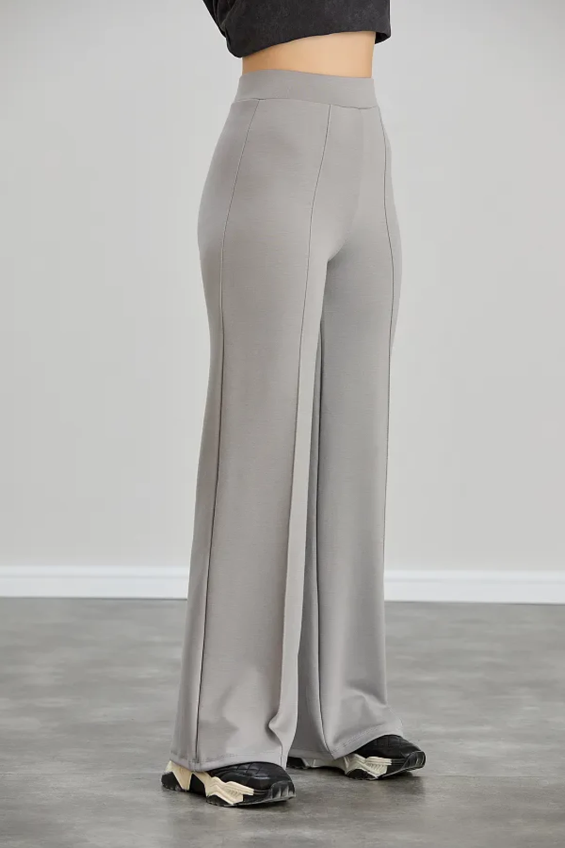 Alos بنطال نسائي رمادي فضفاض واسع الساق مخطط بخصر عالٍ وناعم ومطاط من الليكرا