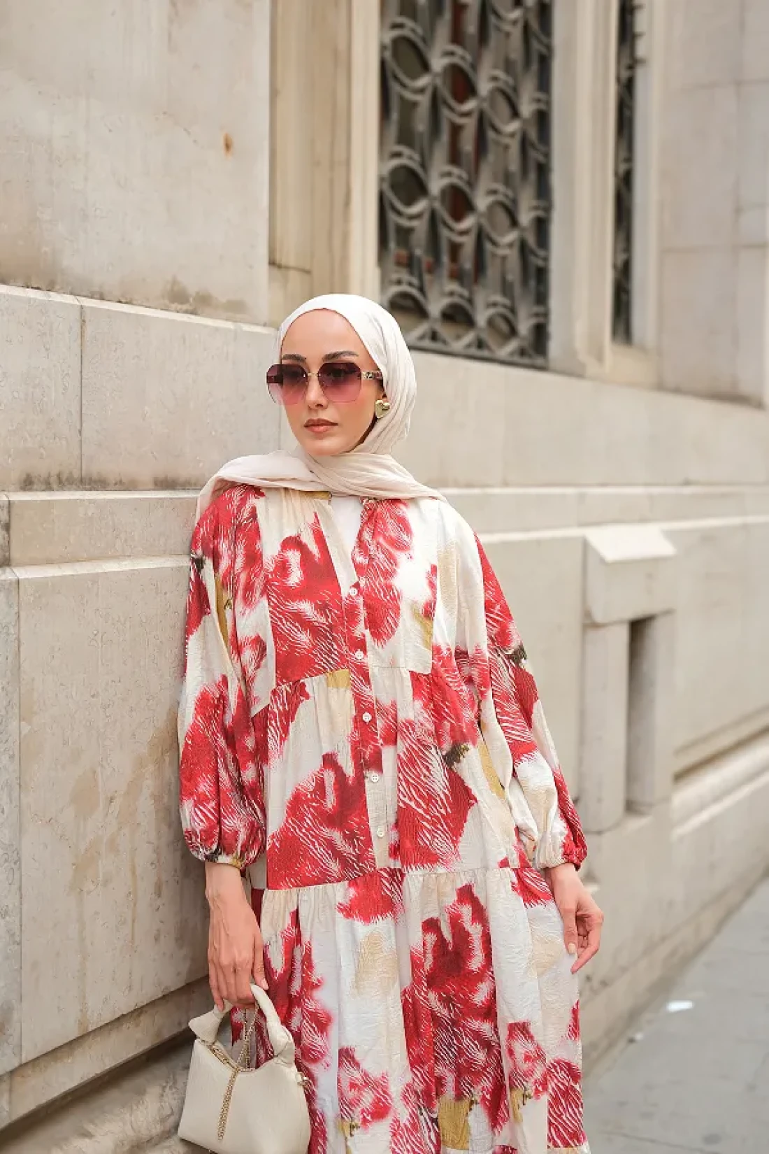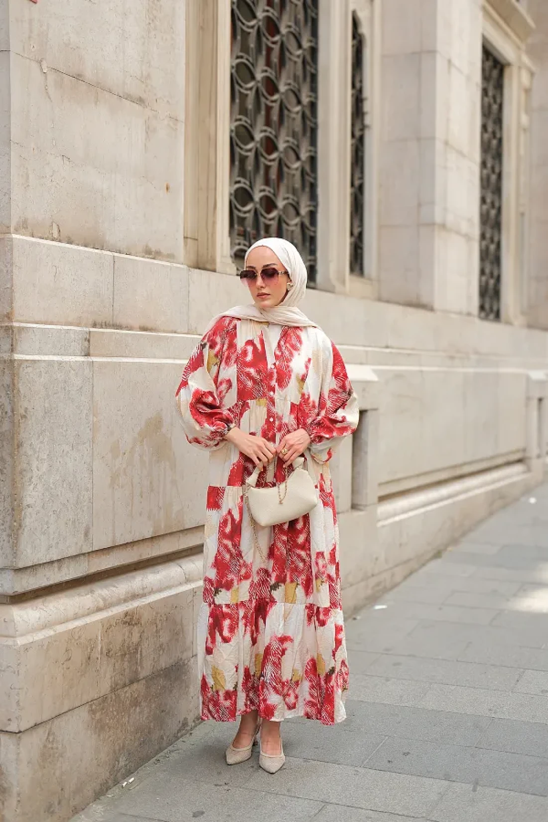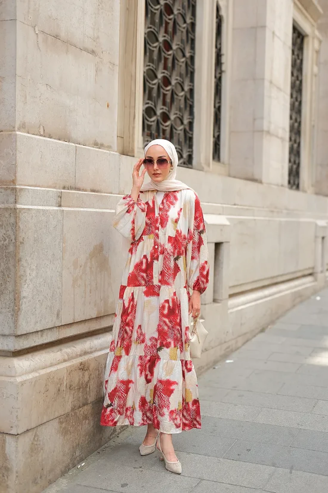 LOCCO فستان نسائي منقوش باللون الأحمر