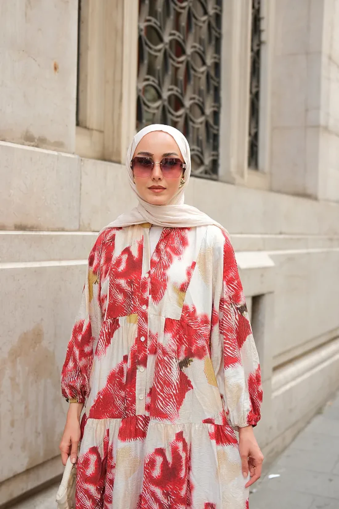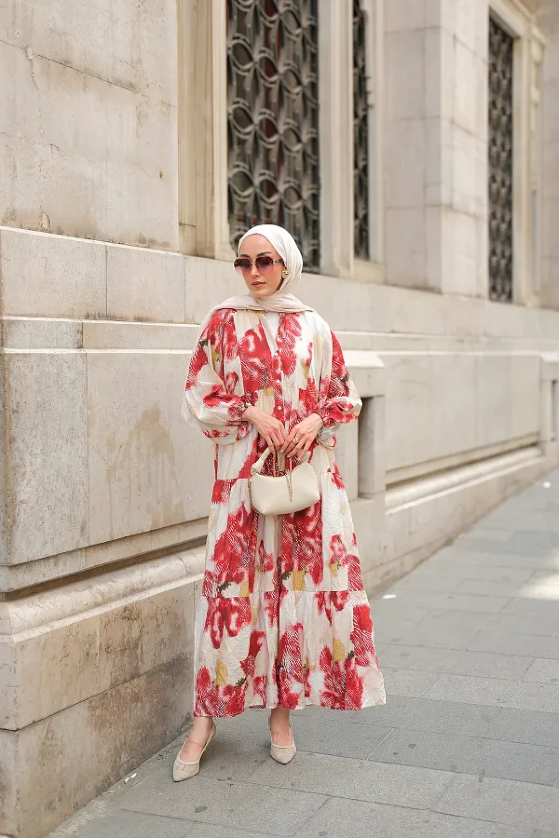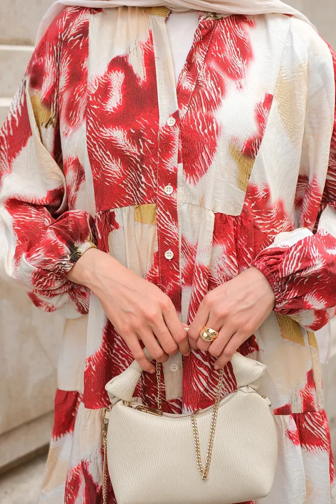 LOCCO فستان نسائي منقوش باللون الأحمر