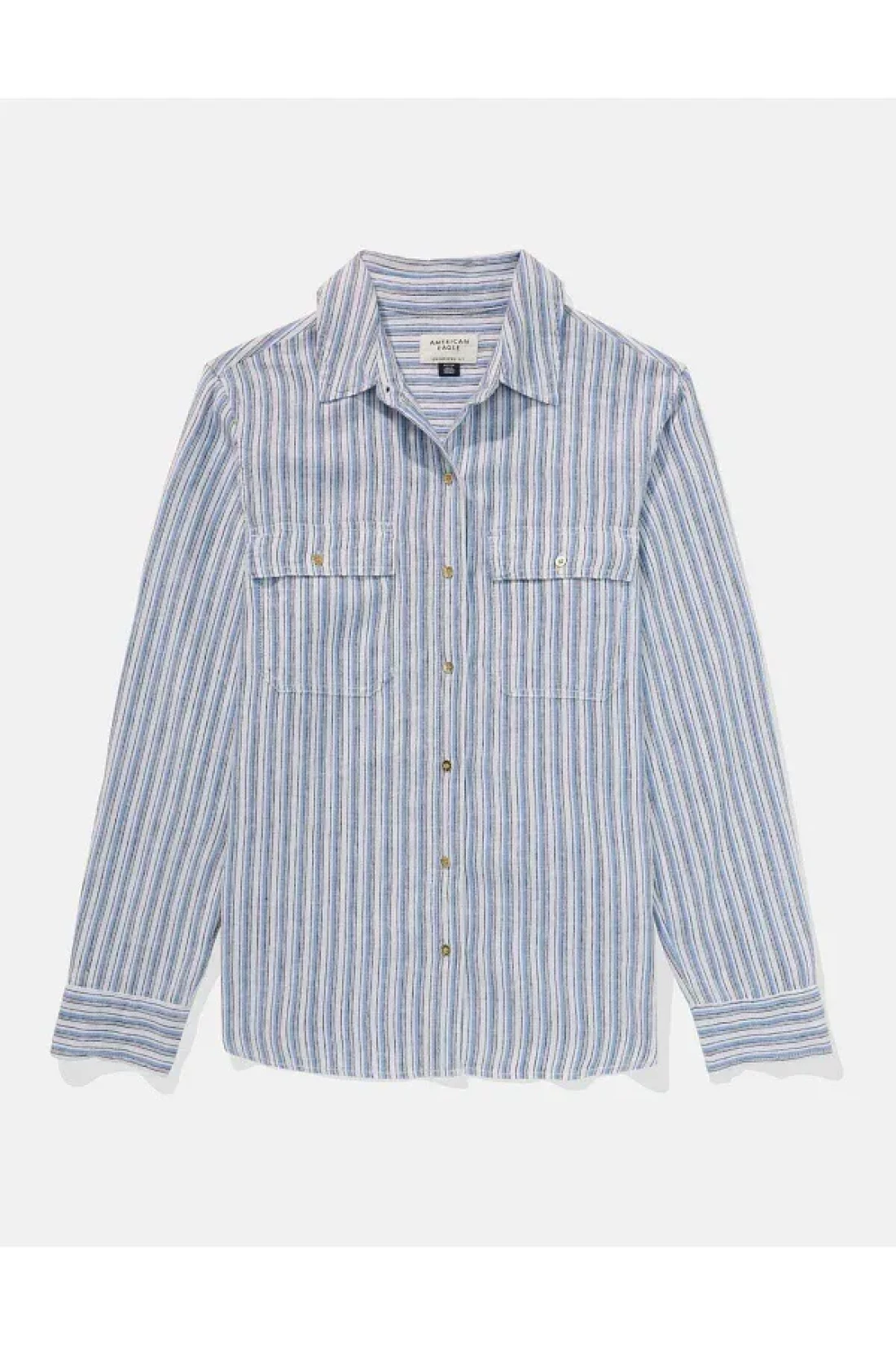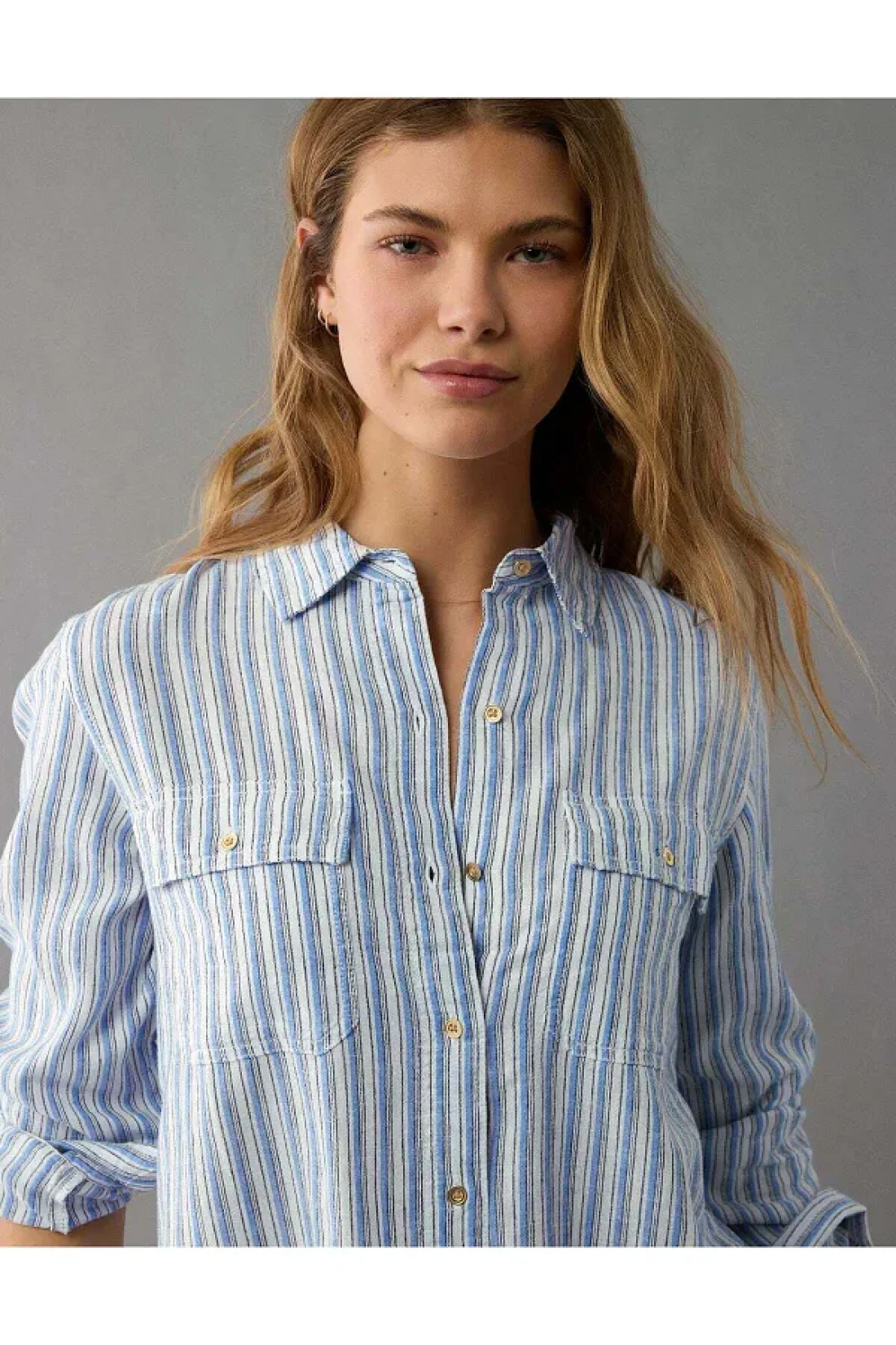 American Eagle قميص AE Weekend Vibes بأكمام طويلة وأزرار