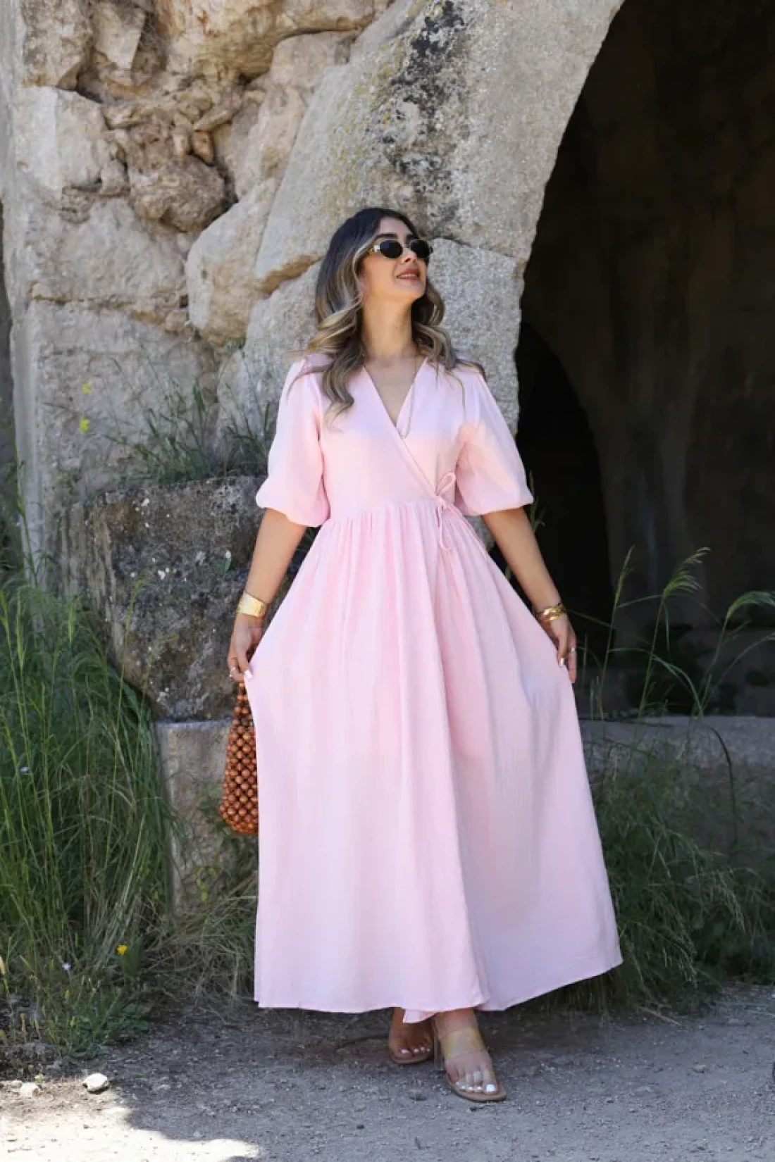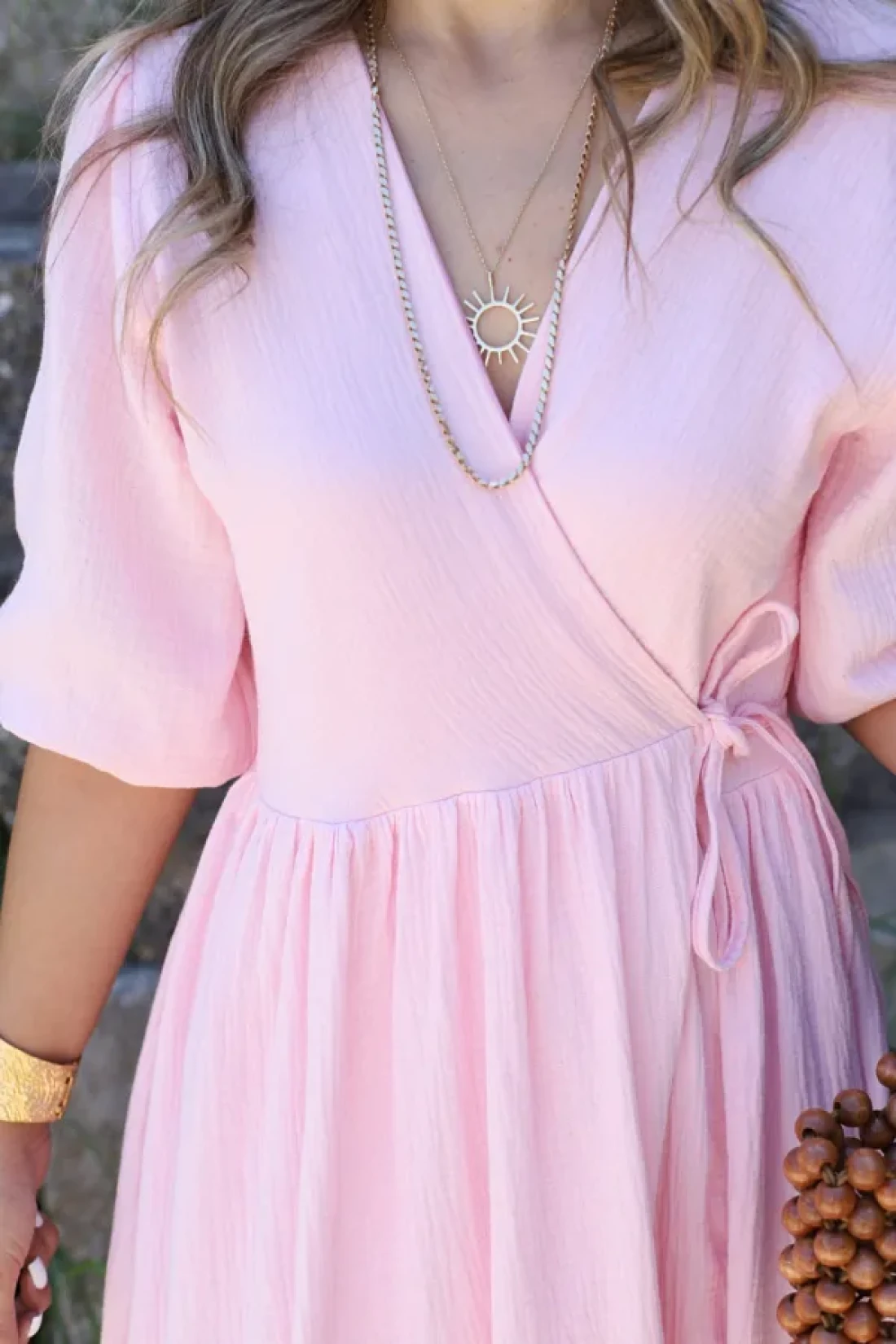 فستان طويل مربوط من الموسلين الوردي