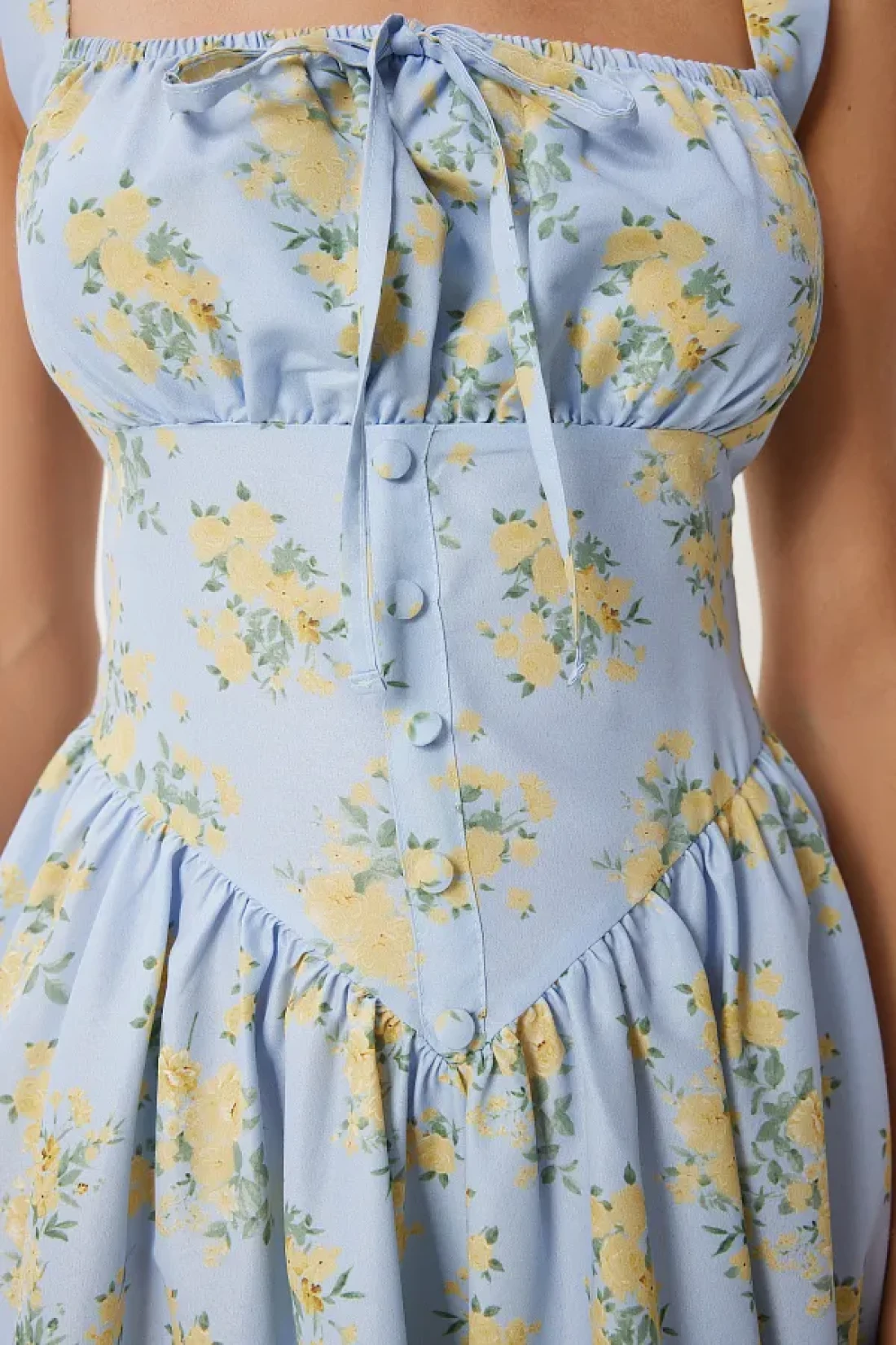 97٪ بوليستر 3٪ إيلاستين؛ فستان صيفي متوسط الطول من البوبلين بنمط زهري، مع ياقة على شكل حرف U، وأشرطة سميكة؛ طول المنتج: 125 سم؛ قد تختلف الألوان في الصور الاستوديو بسبب الاختلافات في الإضاءة. الصبي: 1.73 سم. الصدر: 79 سم. الخصر: 60 سم. الورك: 90 سم.