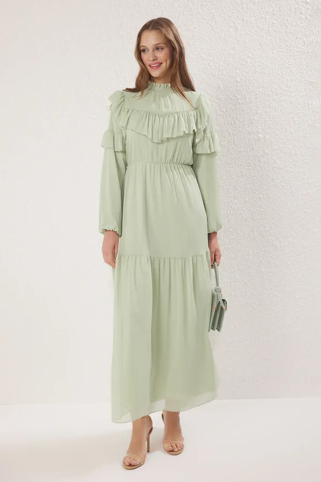 Modest فستان منسوج مبطن بالشيفون بالنعناع TCTSS25EB00108