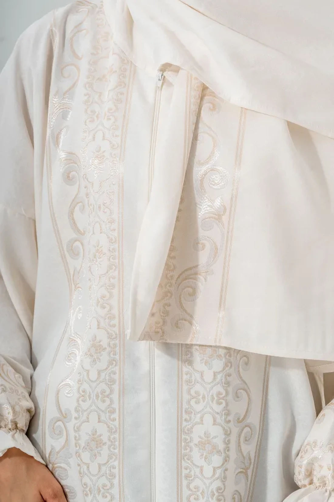 فستان صلاة فاخر بسحاب طويل من قطعة واحدة يمكن ارتداؤه بسهولة وشال من الخلف