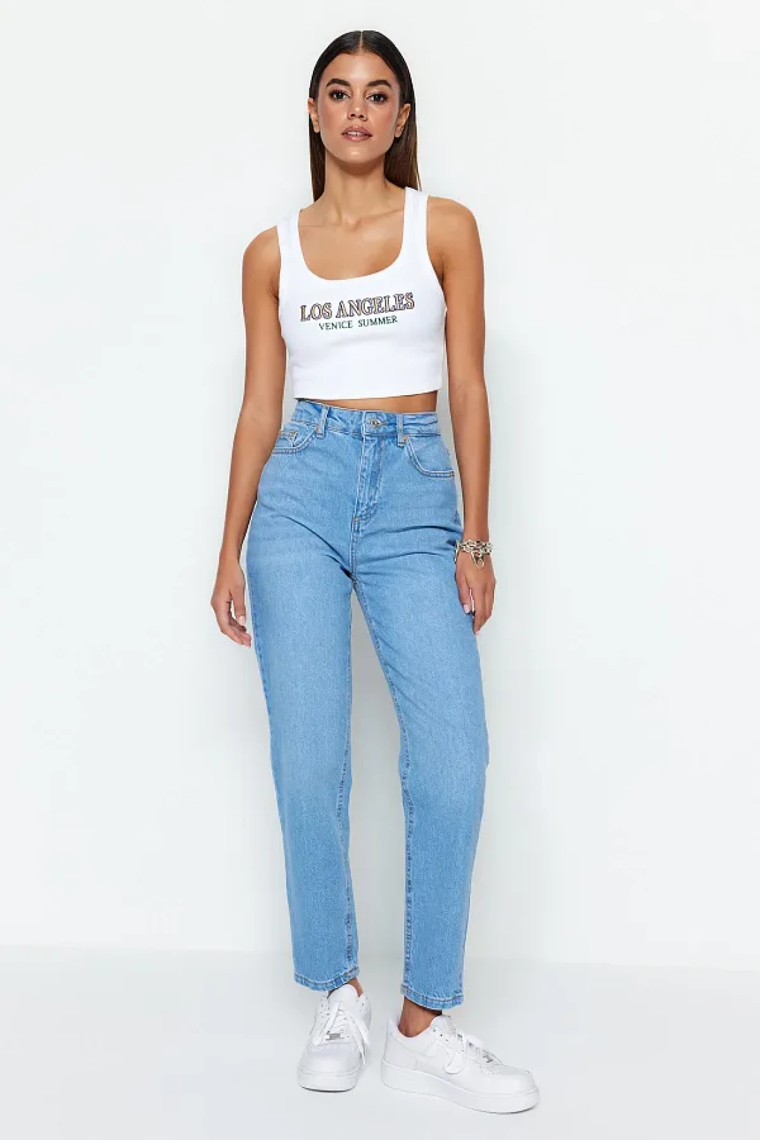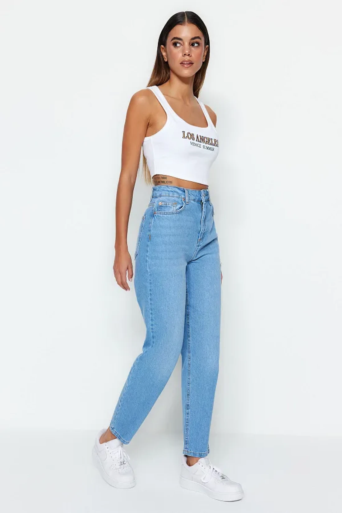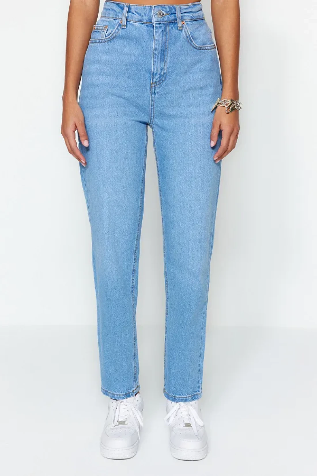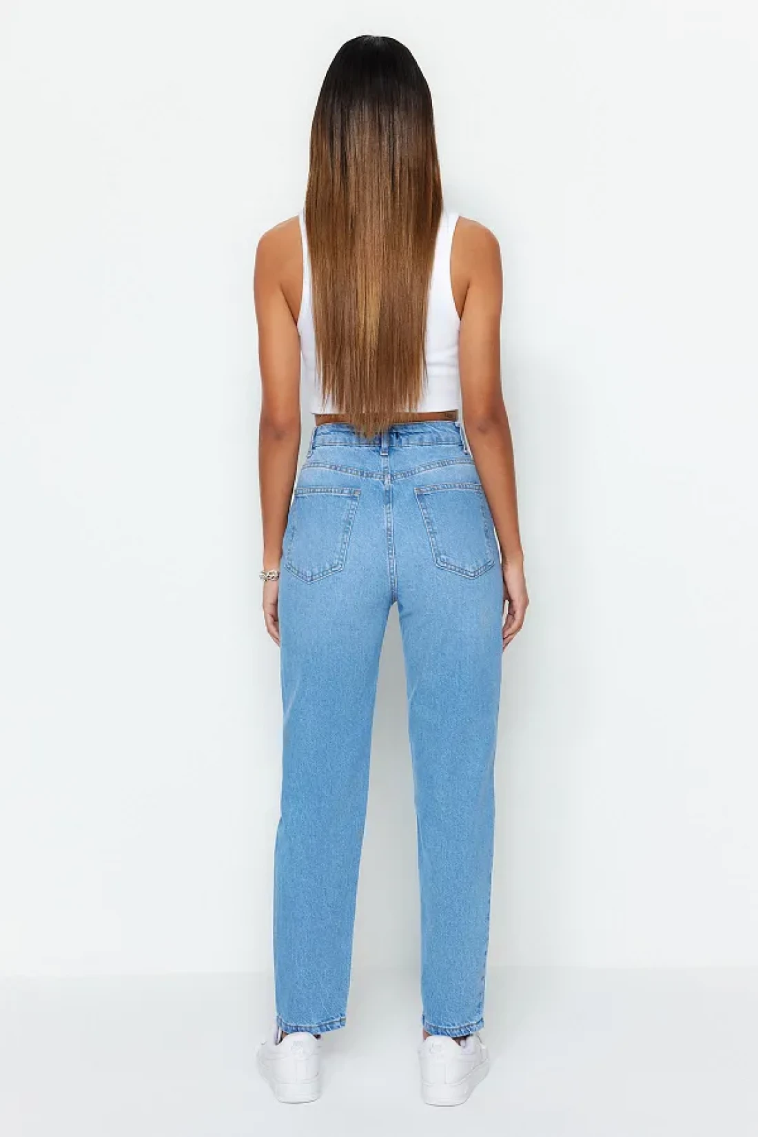 Collection جينز أمي عالي الخصر باللون الأزرق الفاتح TWOSS23JE00067