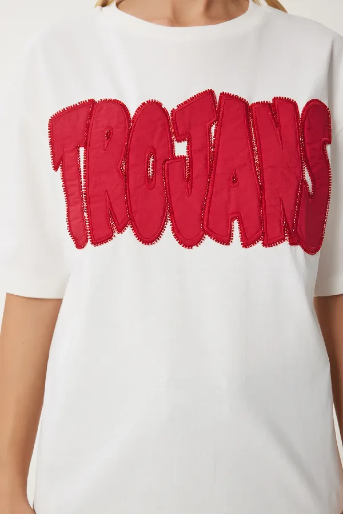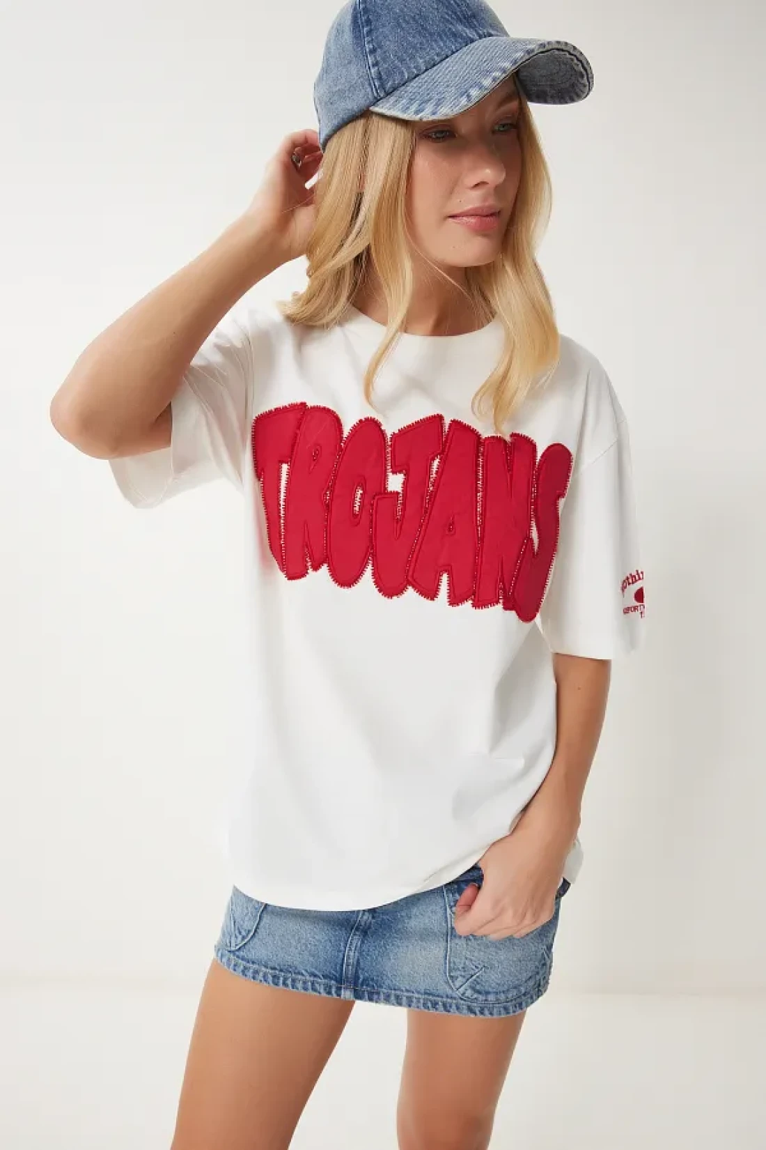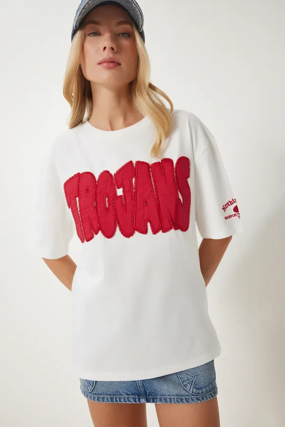 Happiness İstanbul تي شيرت نسائي من القطن مطرز بشعار إكرو CR00463