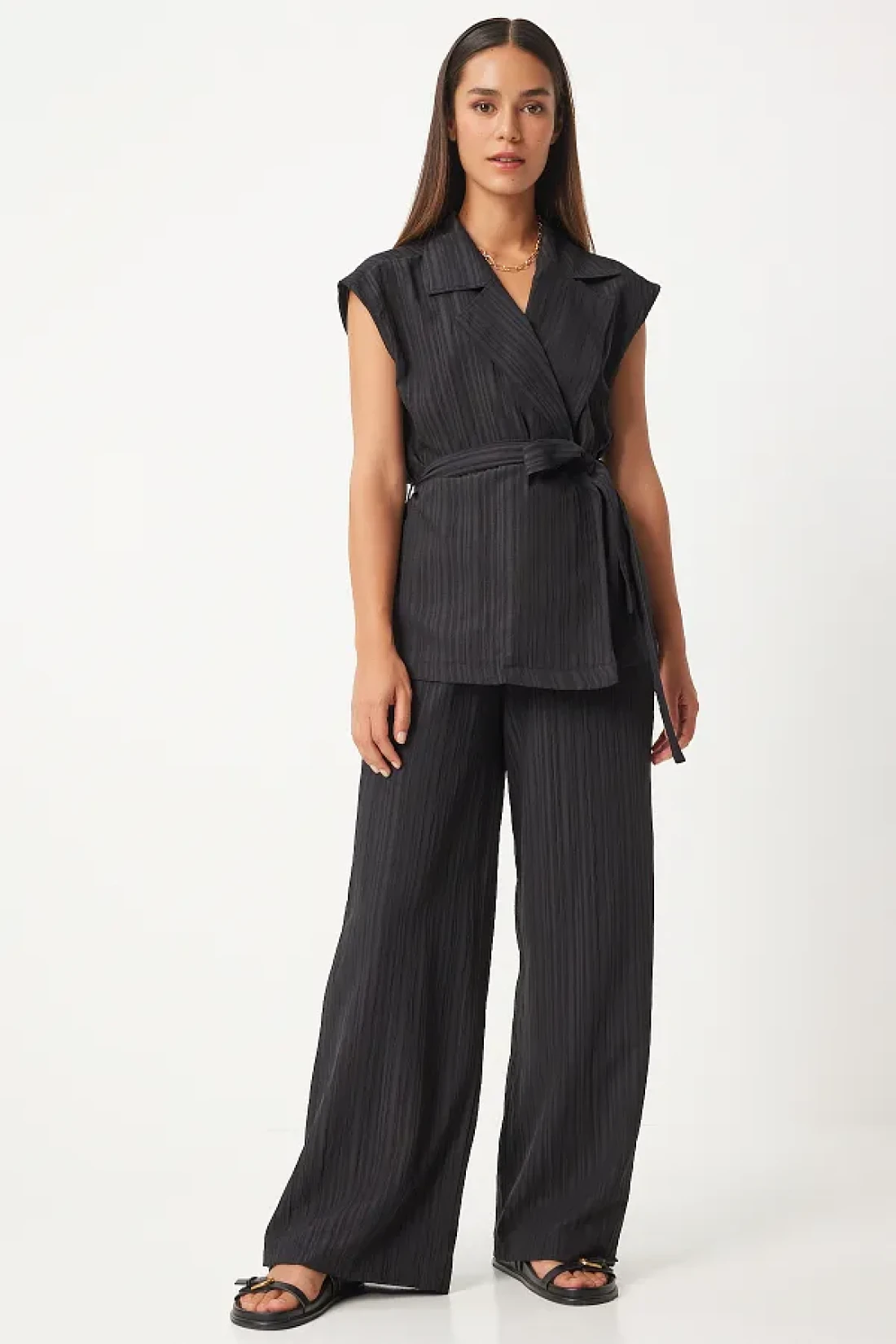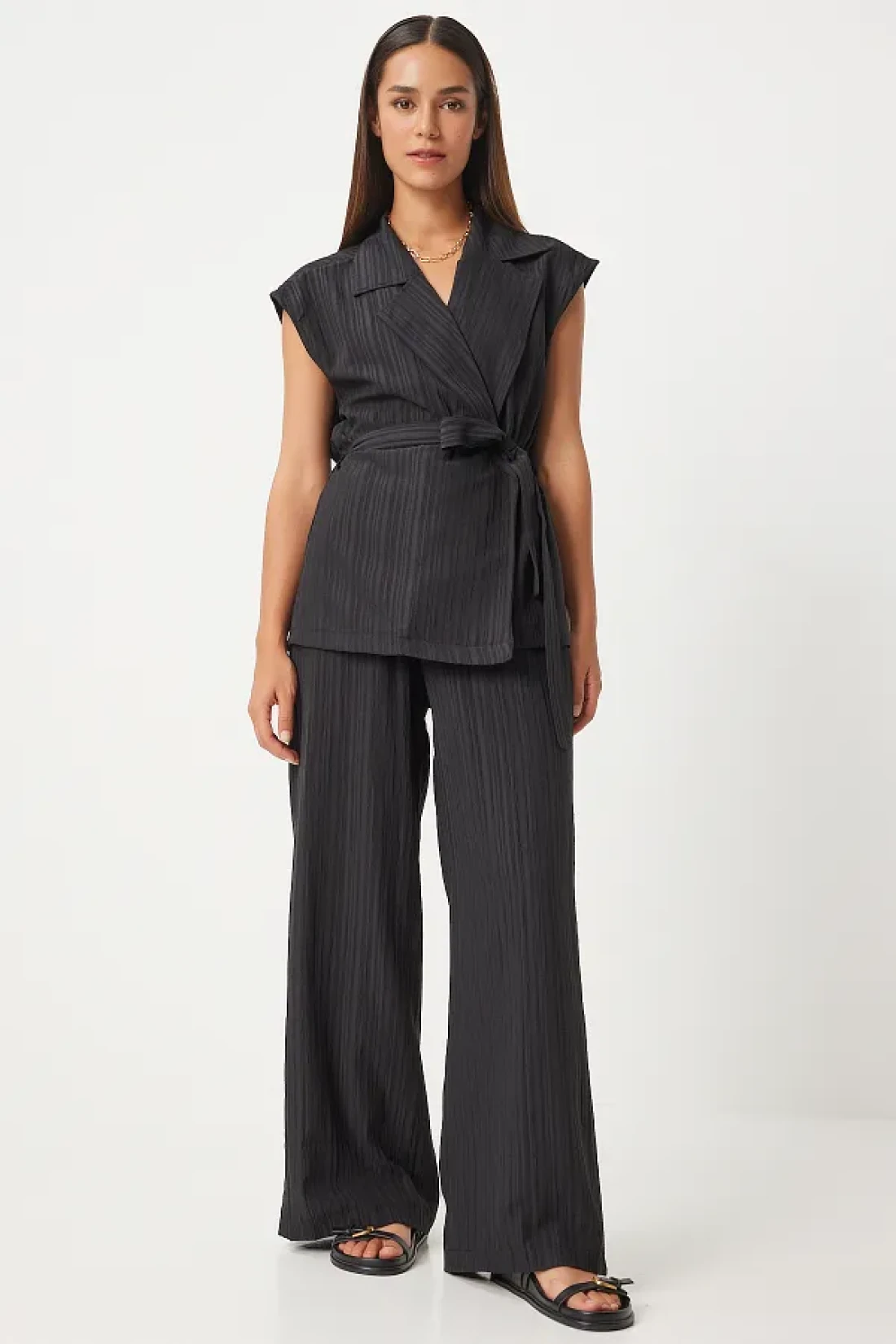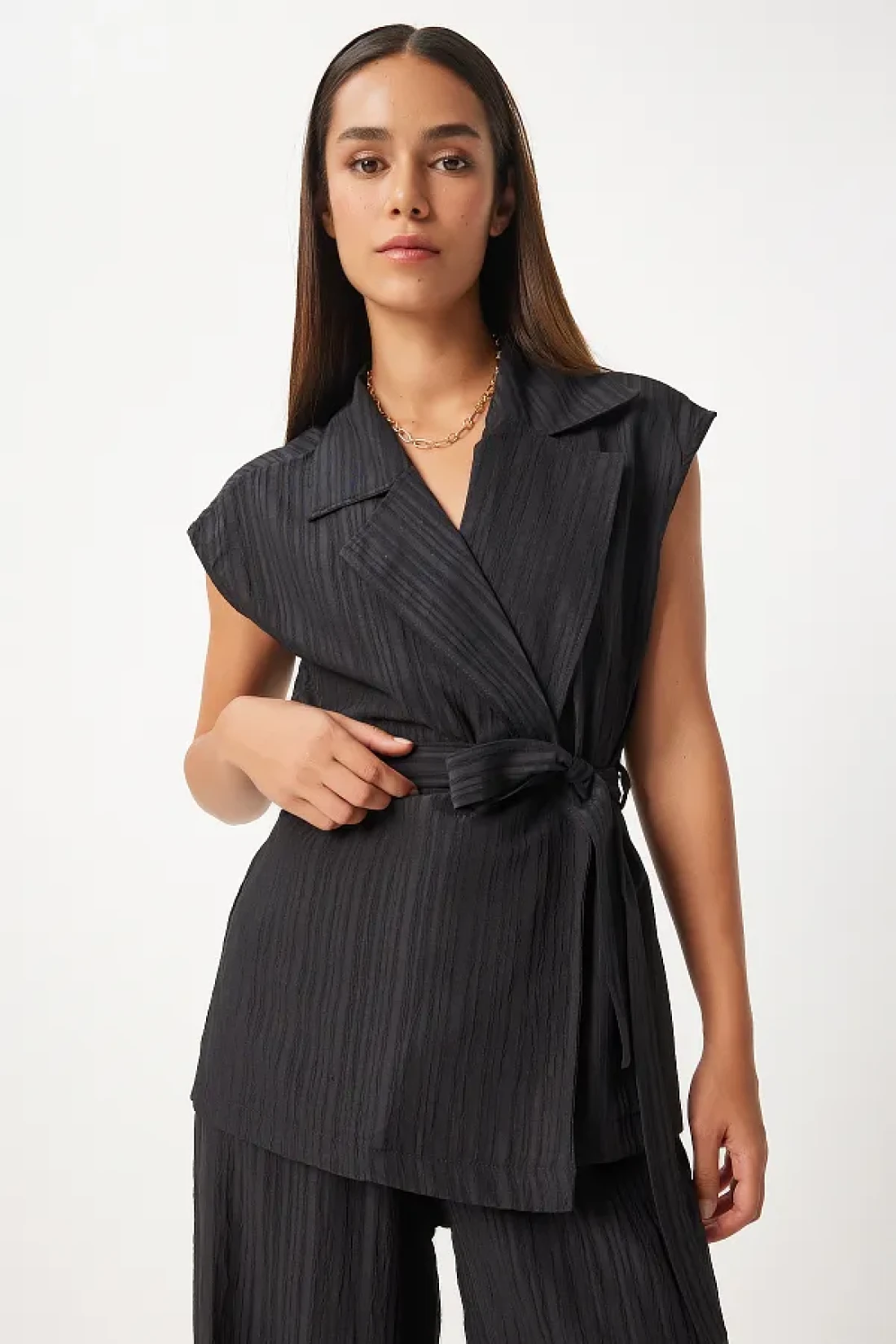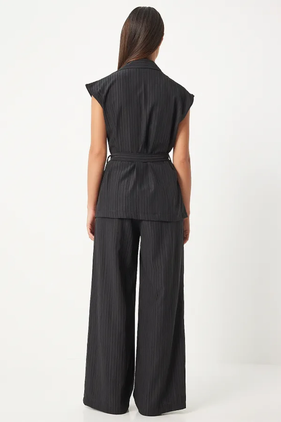 Happiness İstanbul سترة بالازو بحزام أسود ومجموعة محبوكة - BY00055