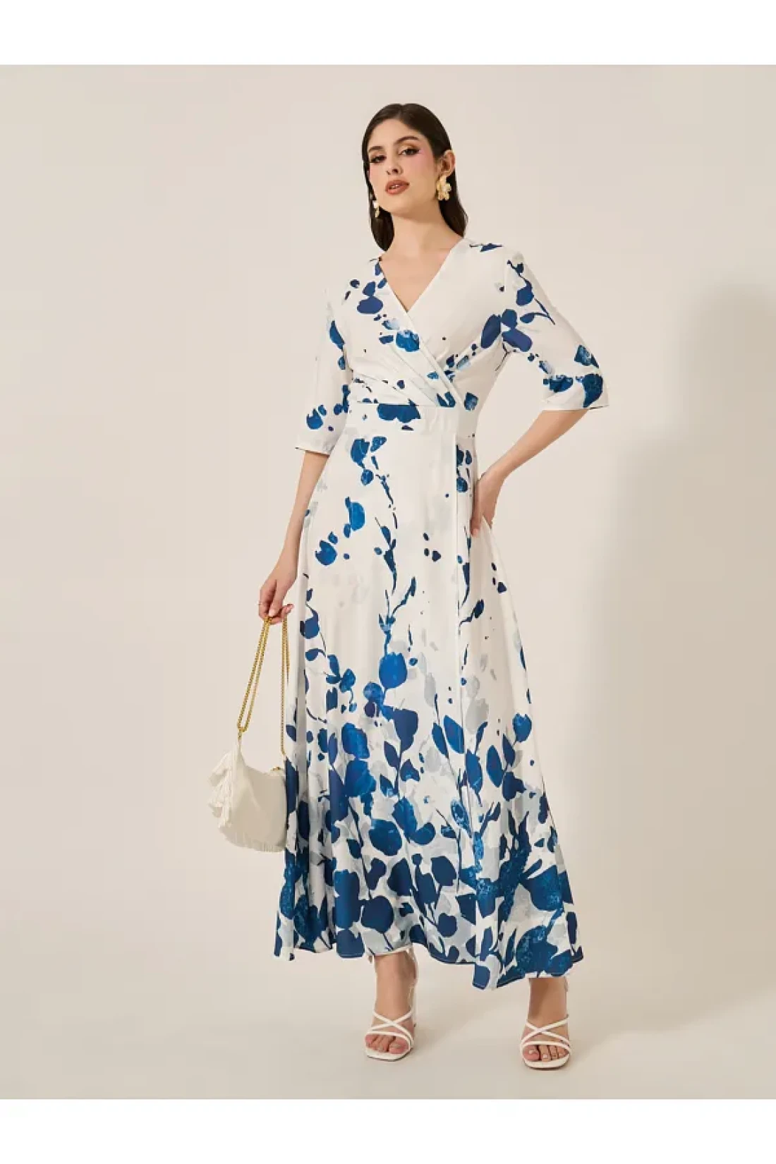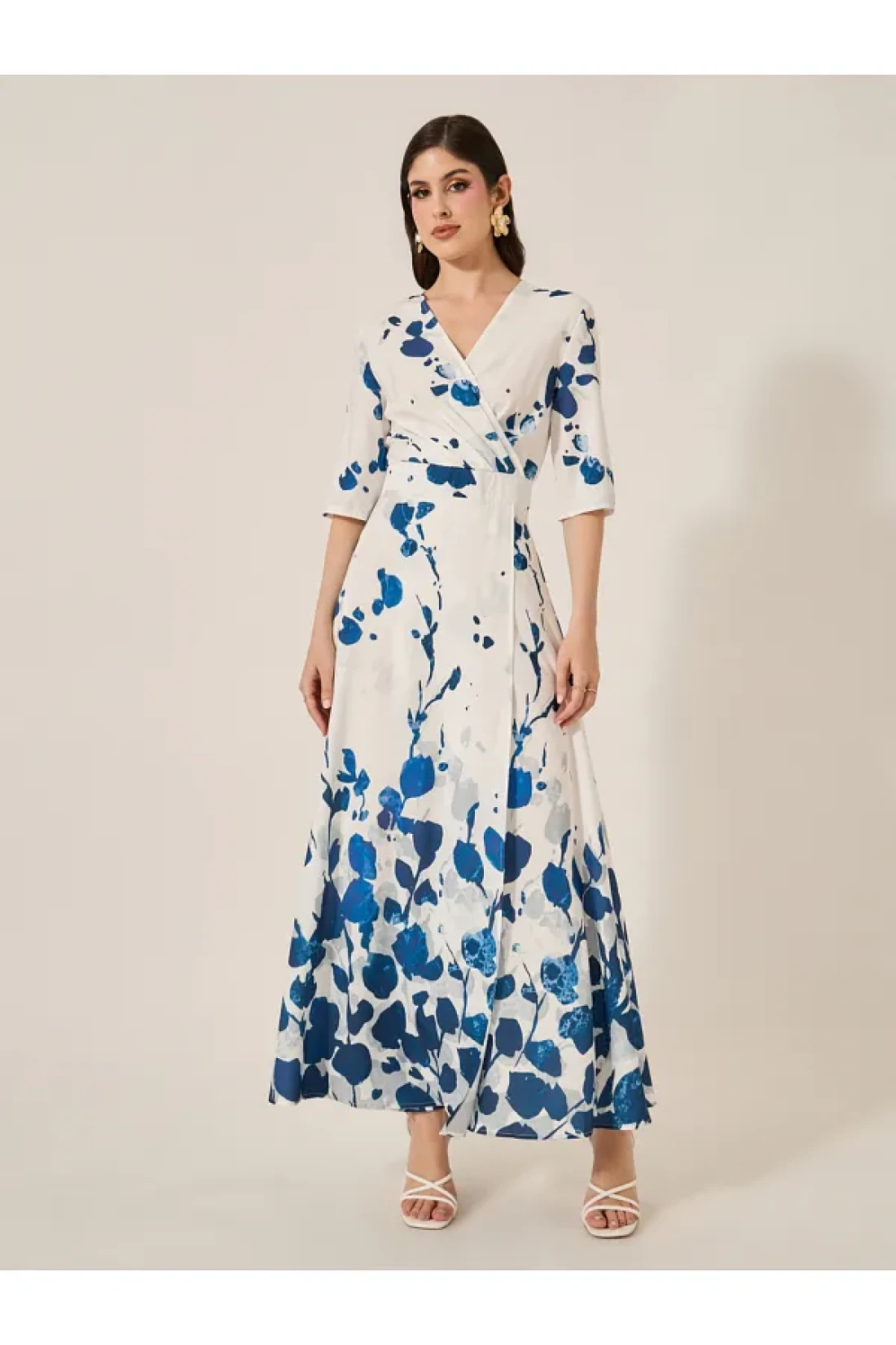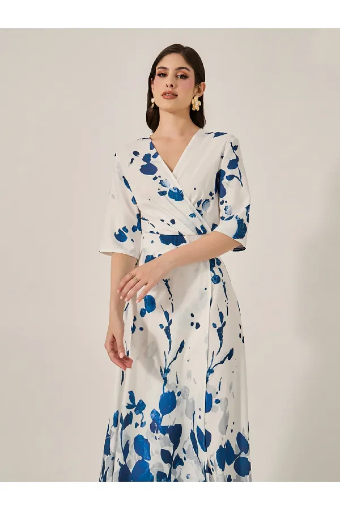 Styli فستان ماكسي بطبعة زهور وتصميم ملفوف على شكل حرف A