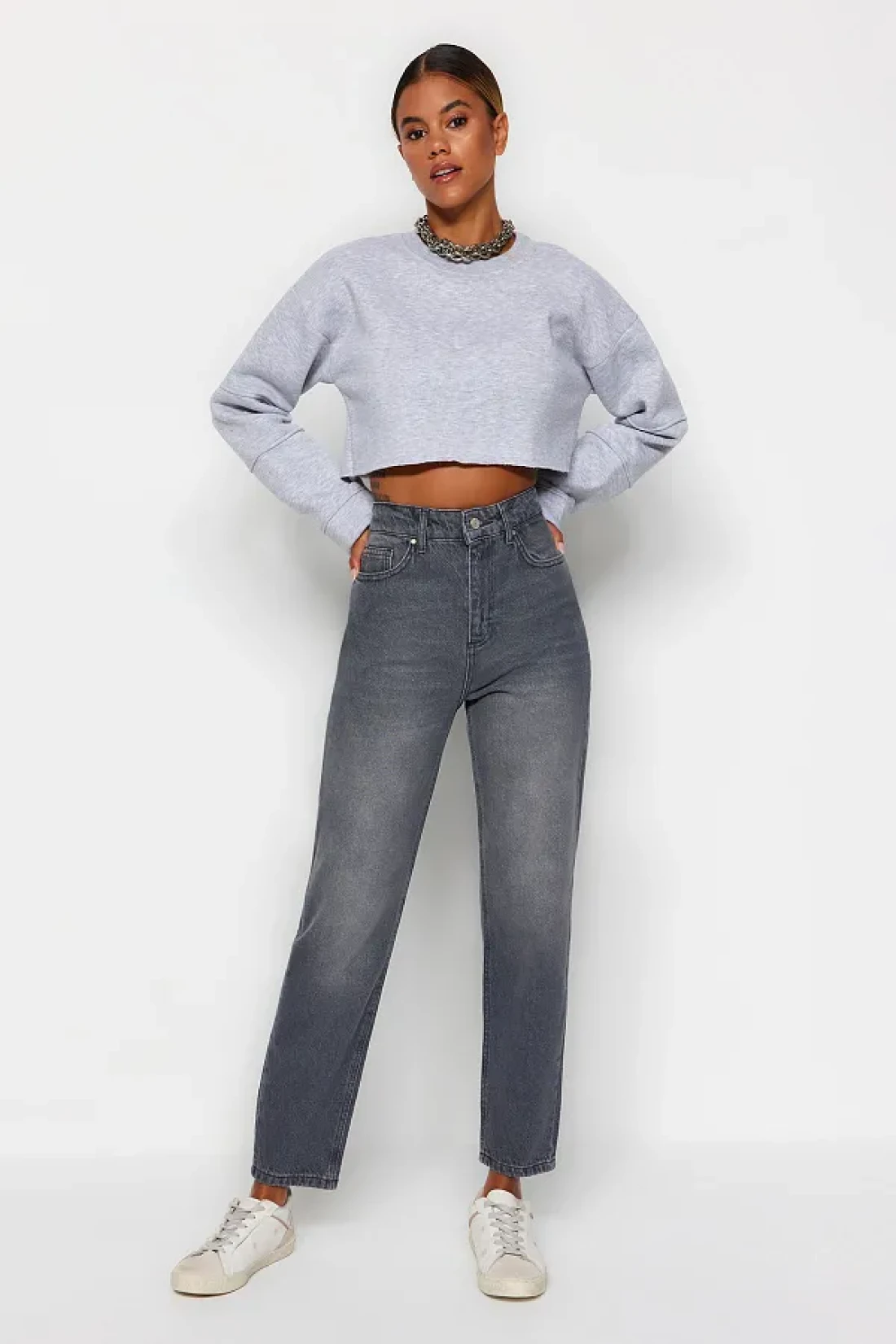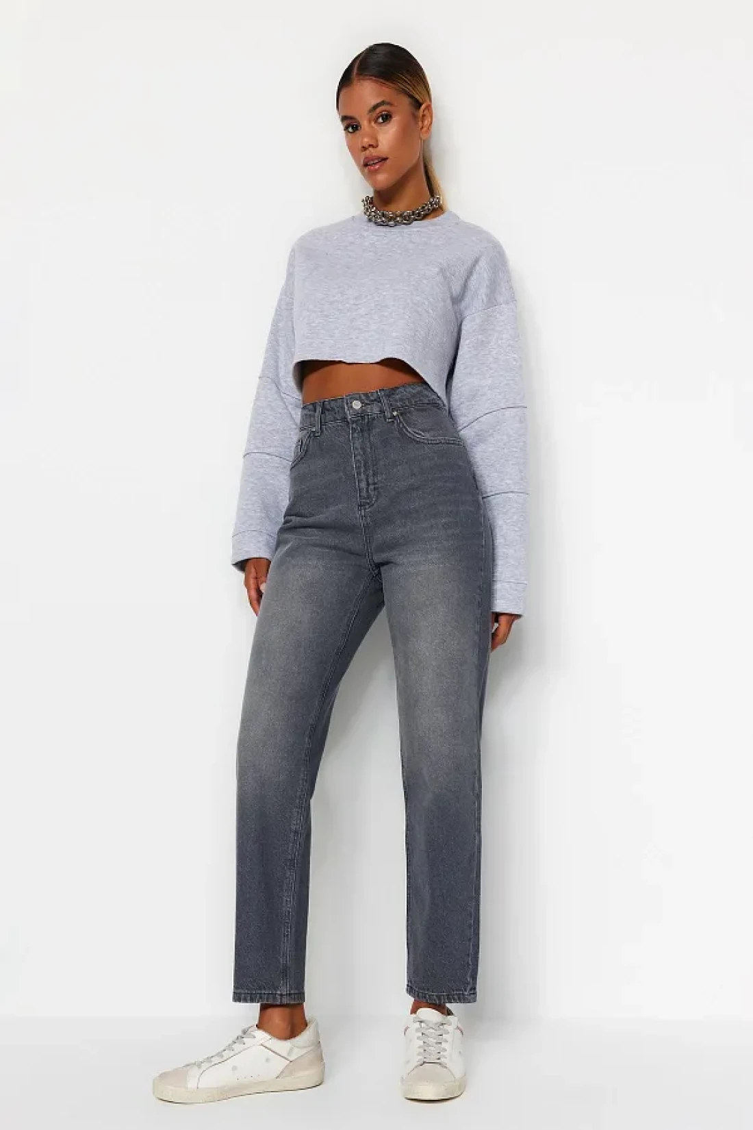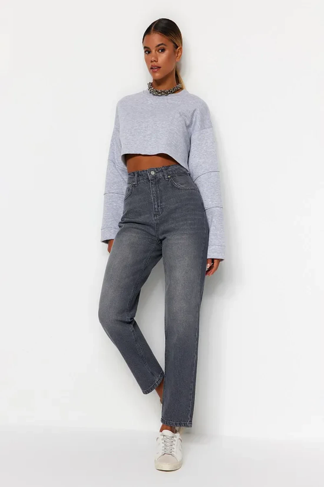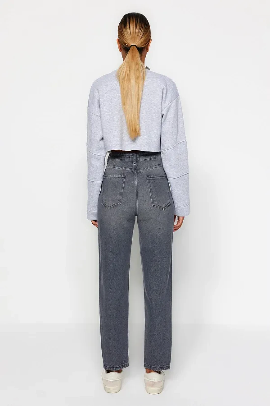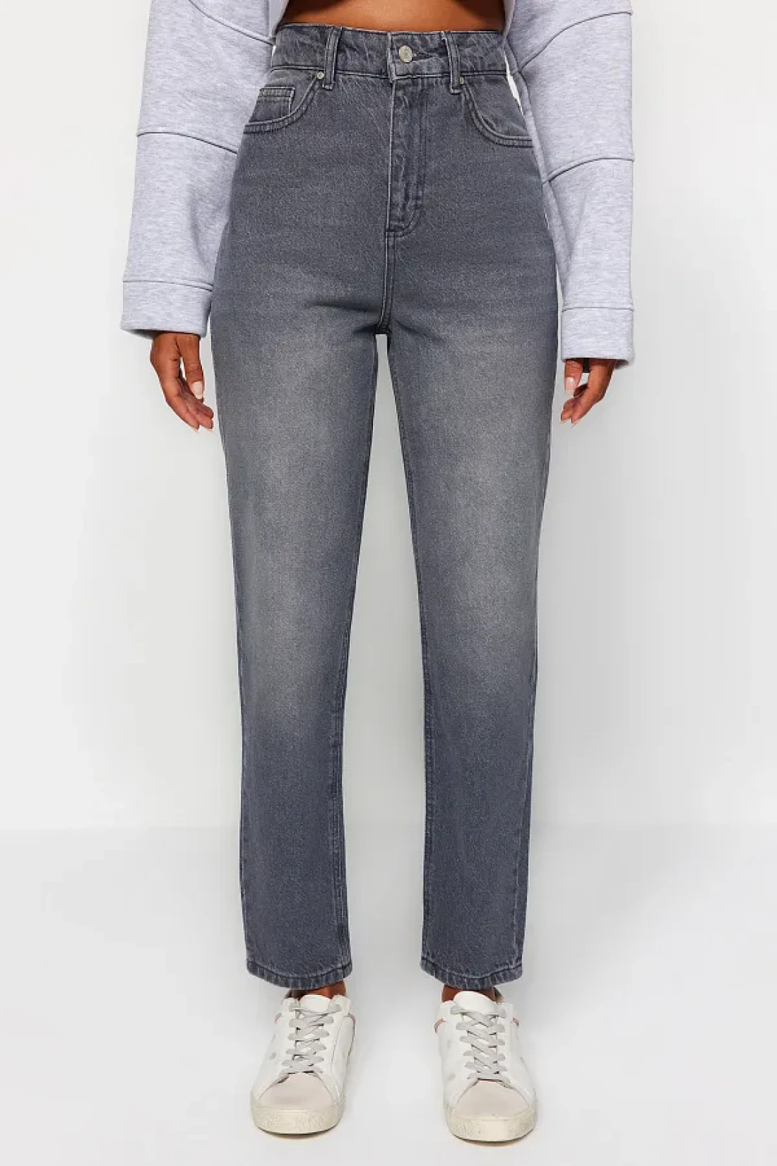 Collection جينز أمي رمادي عالي الخصر TWOAW24JE00076