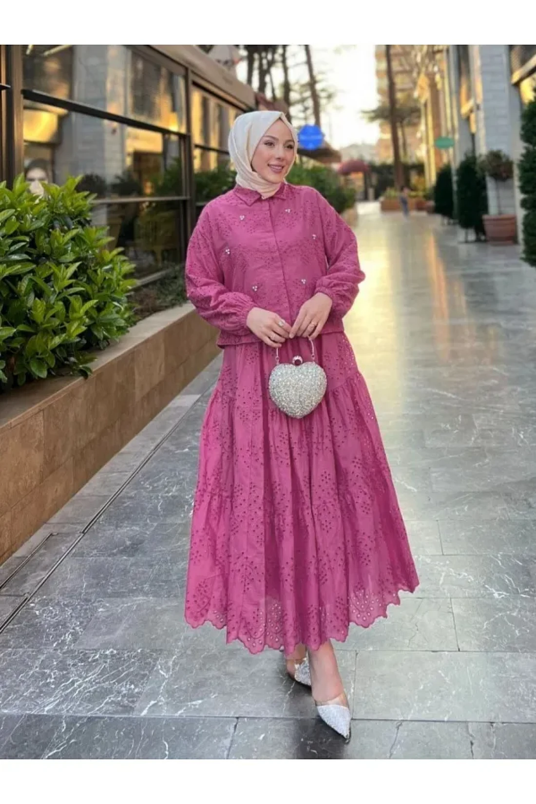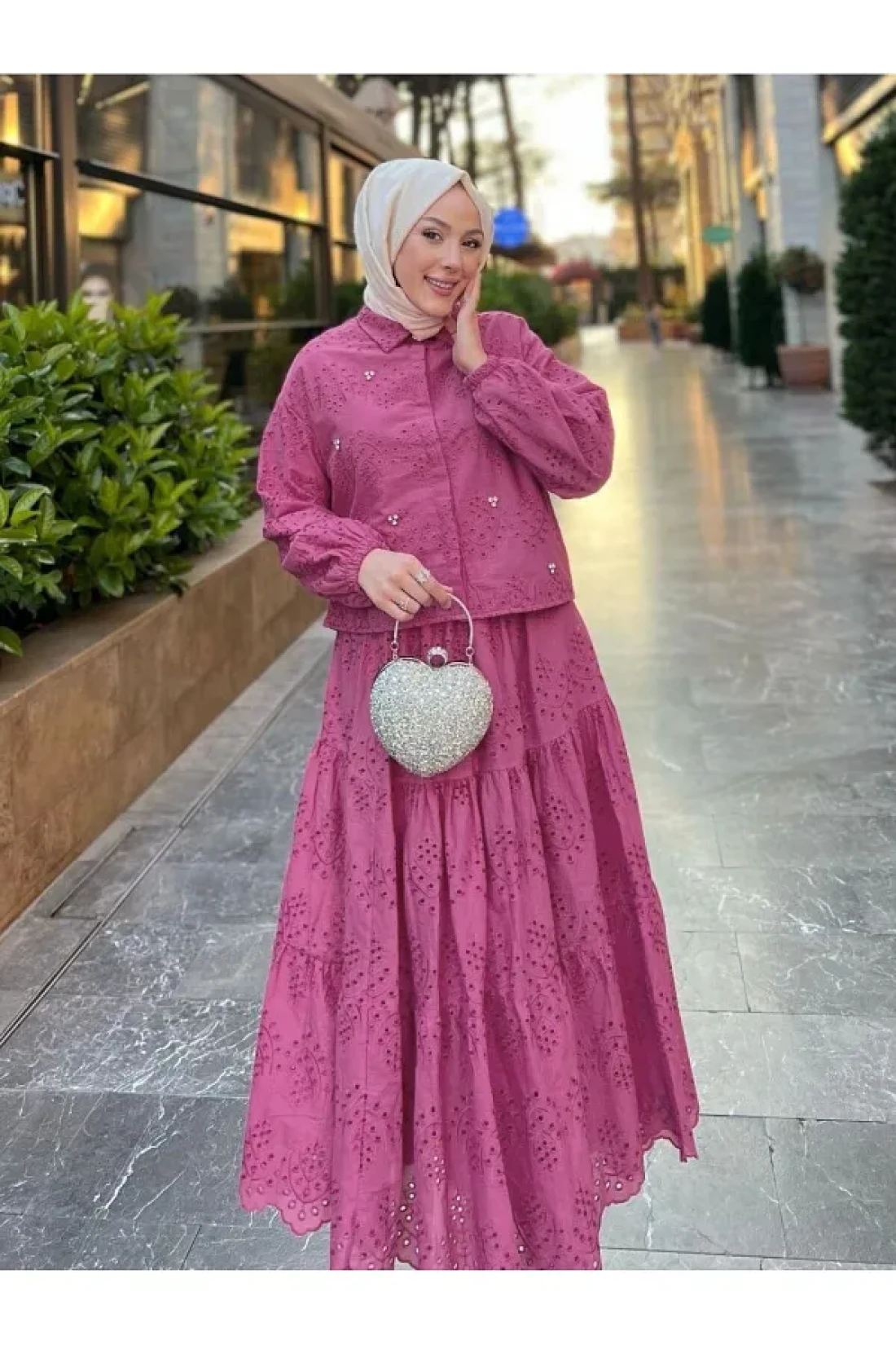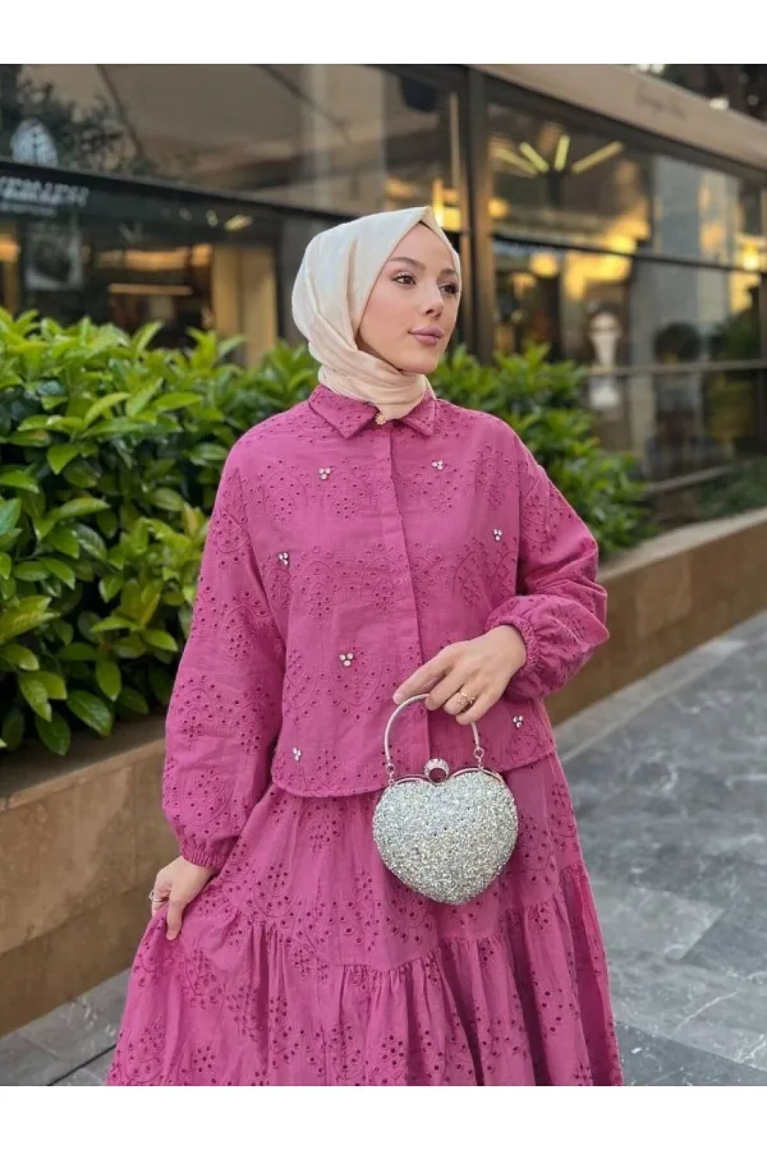 Modamorfo بدلة تنورة بتفاصيل صدفية - فوشيا