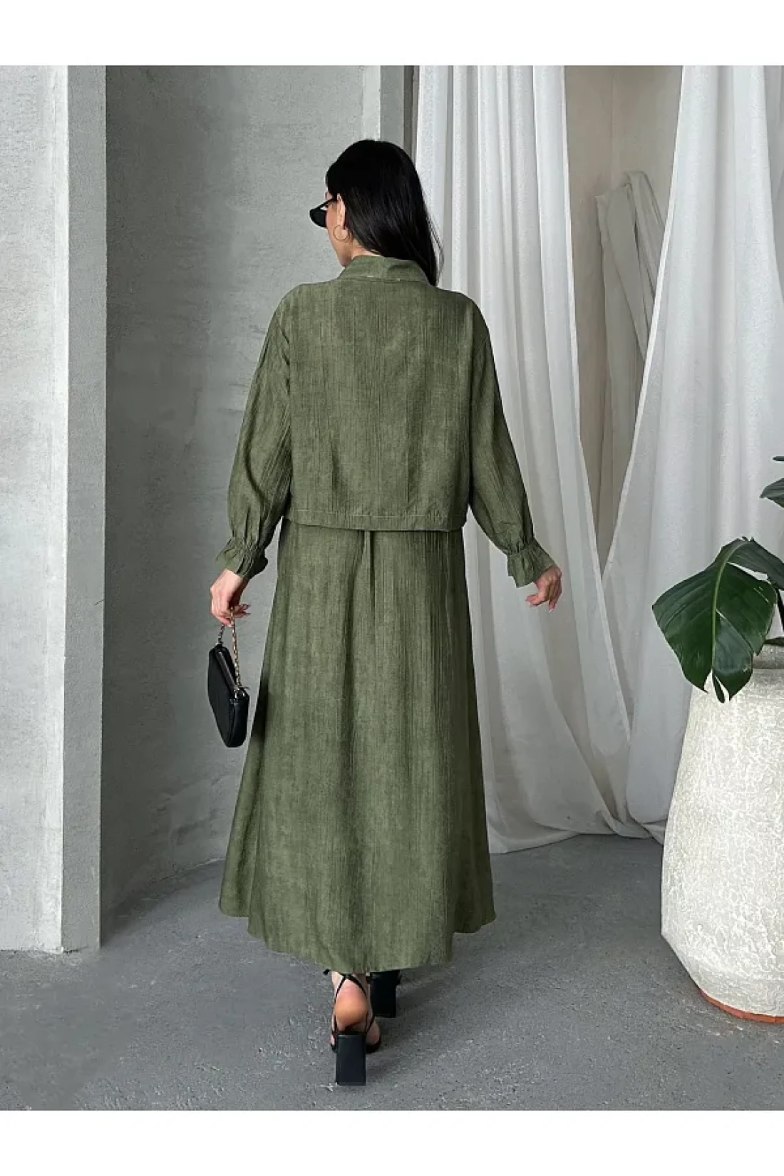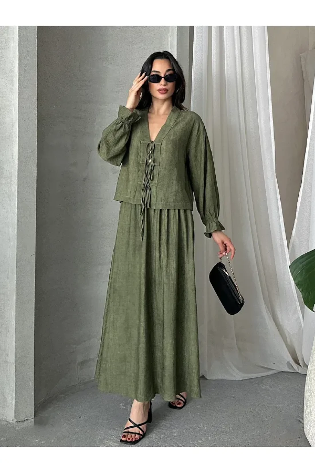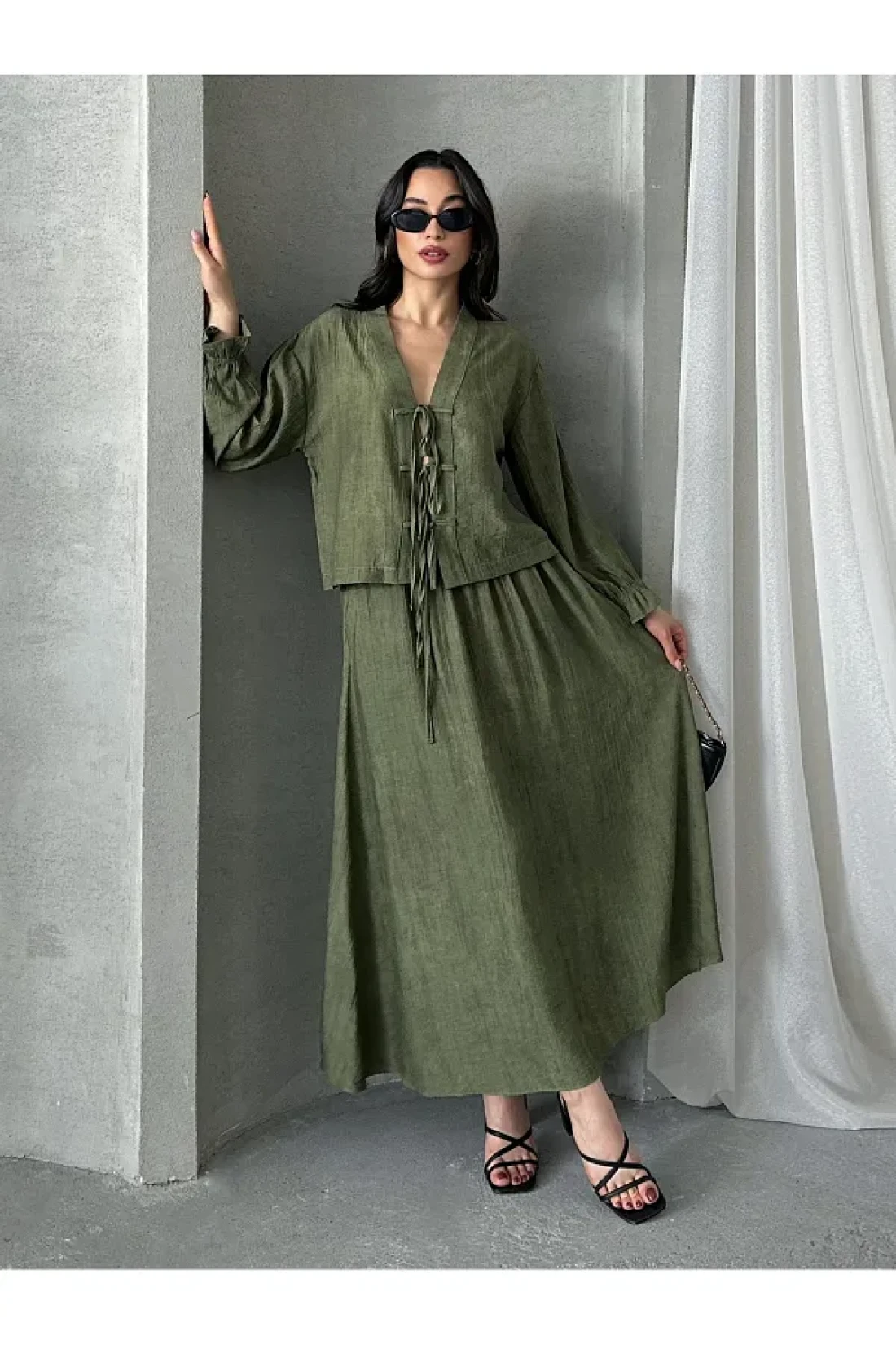 MD trend بلوزة نسائية برباط - طقم تنورة