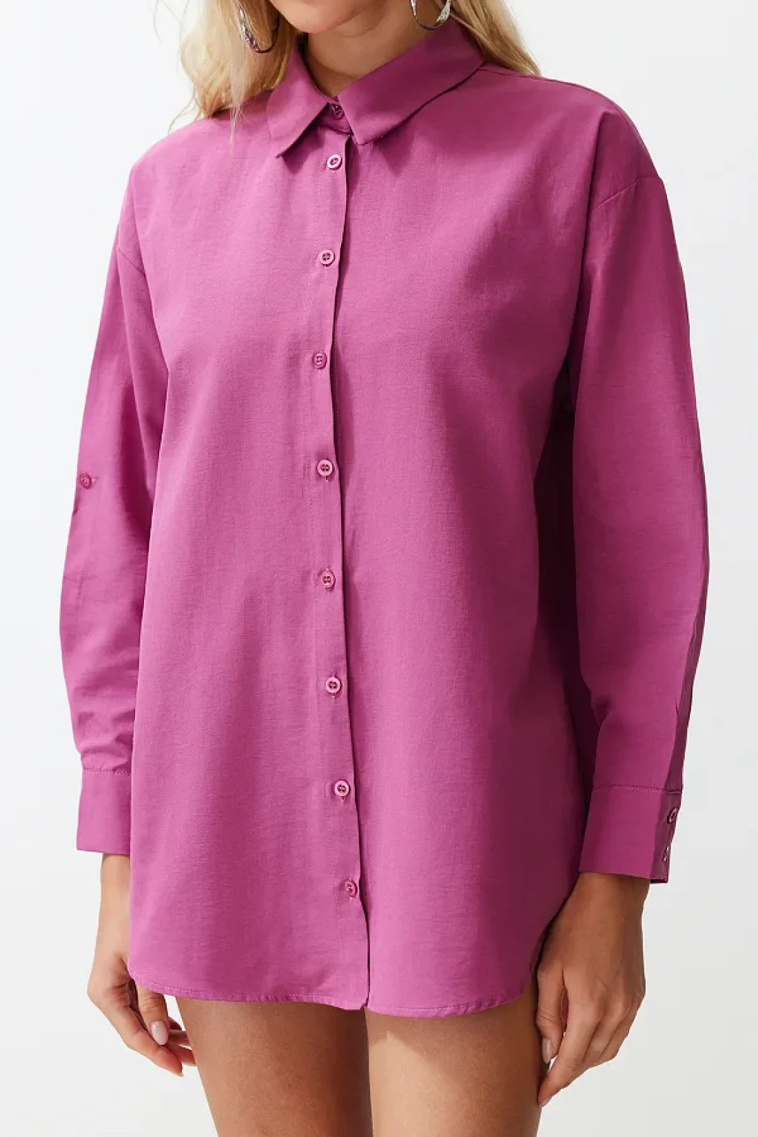 Collection قميص شاطئ منسوج باللون البرقوق TBESS22GO0664