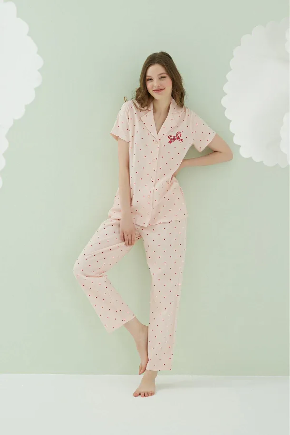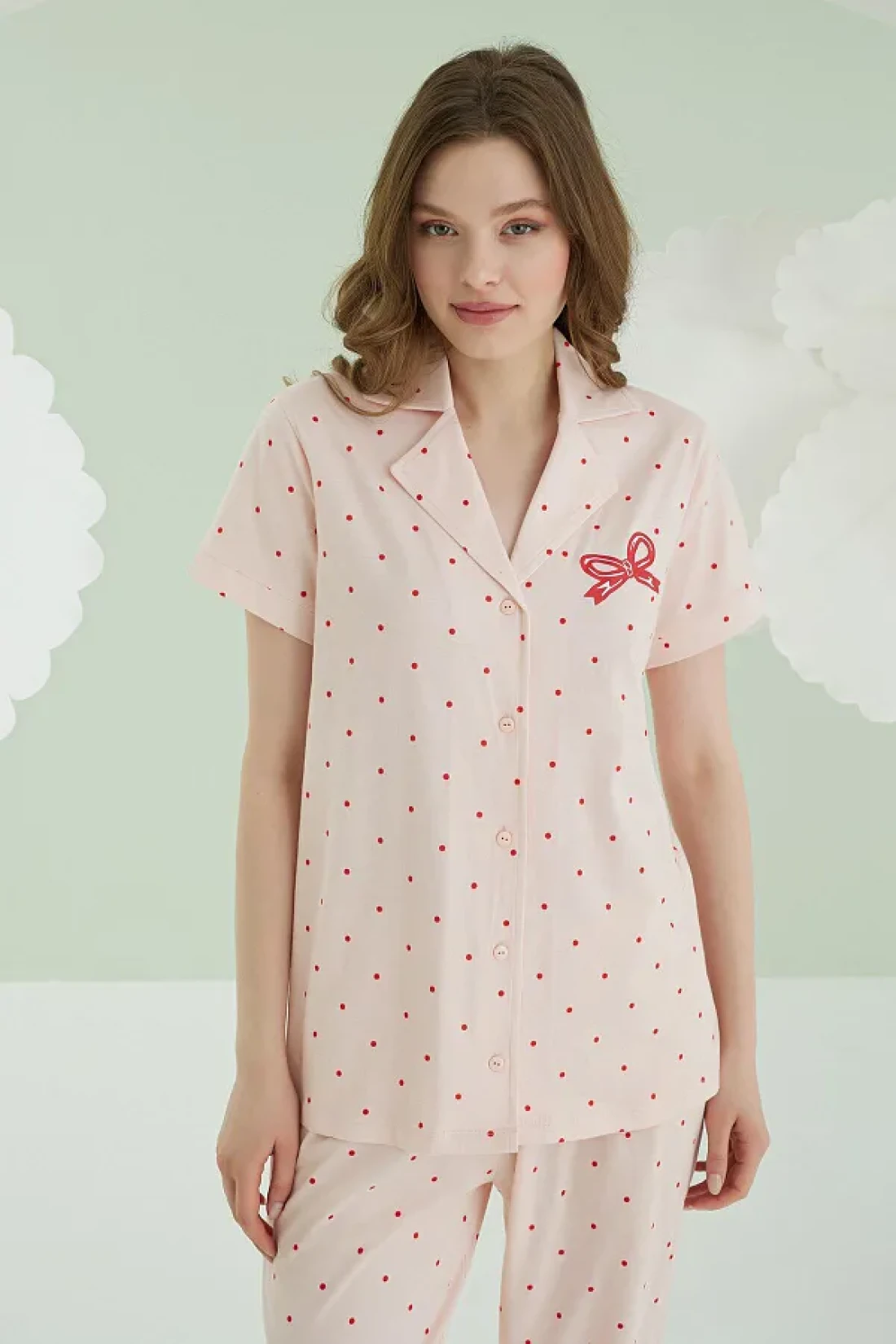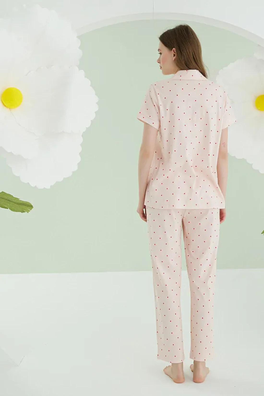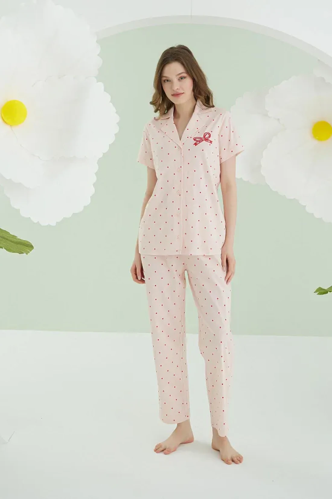 Nbb بدلة بيجامة نسائية من القطن 100%، منقط باللون الأحمر