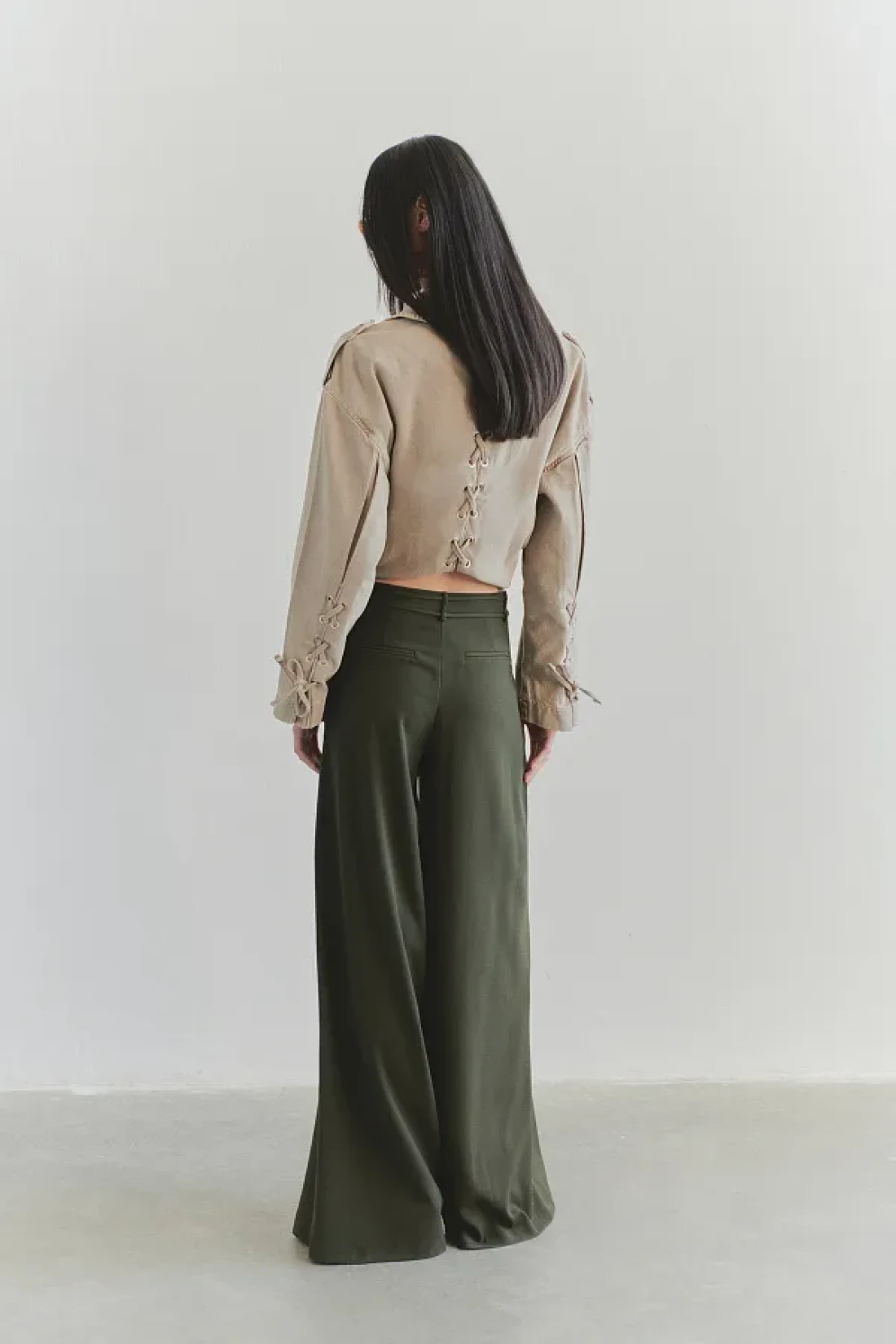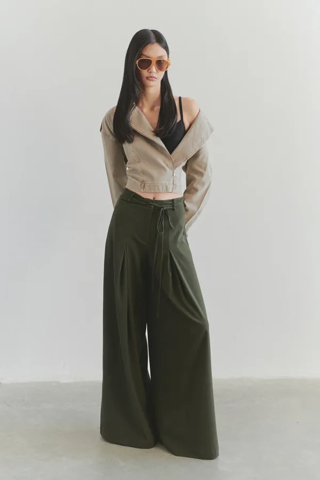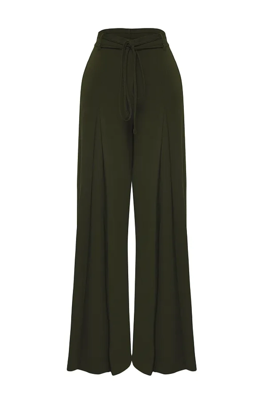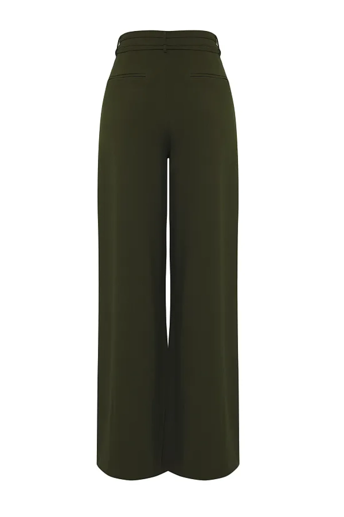 Collection إصدار محدود - بنطال منسوج بحزام كاكي واسع الساق TWOSS25PL00082