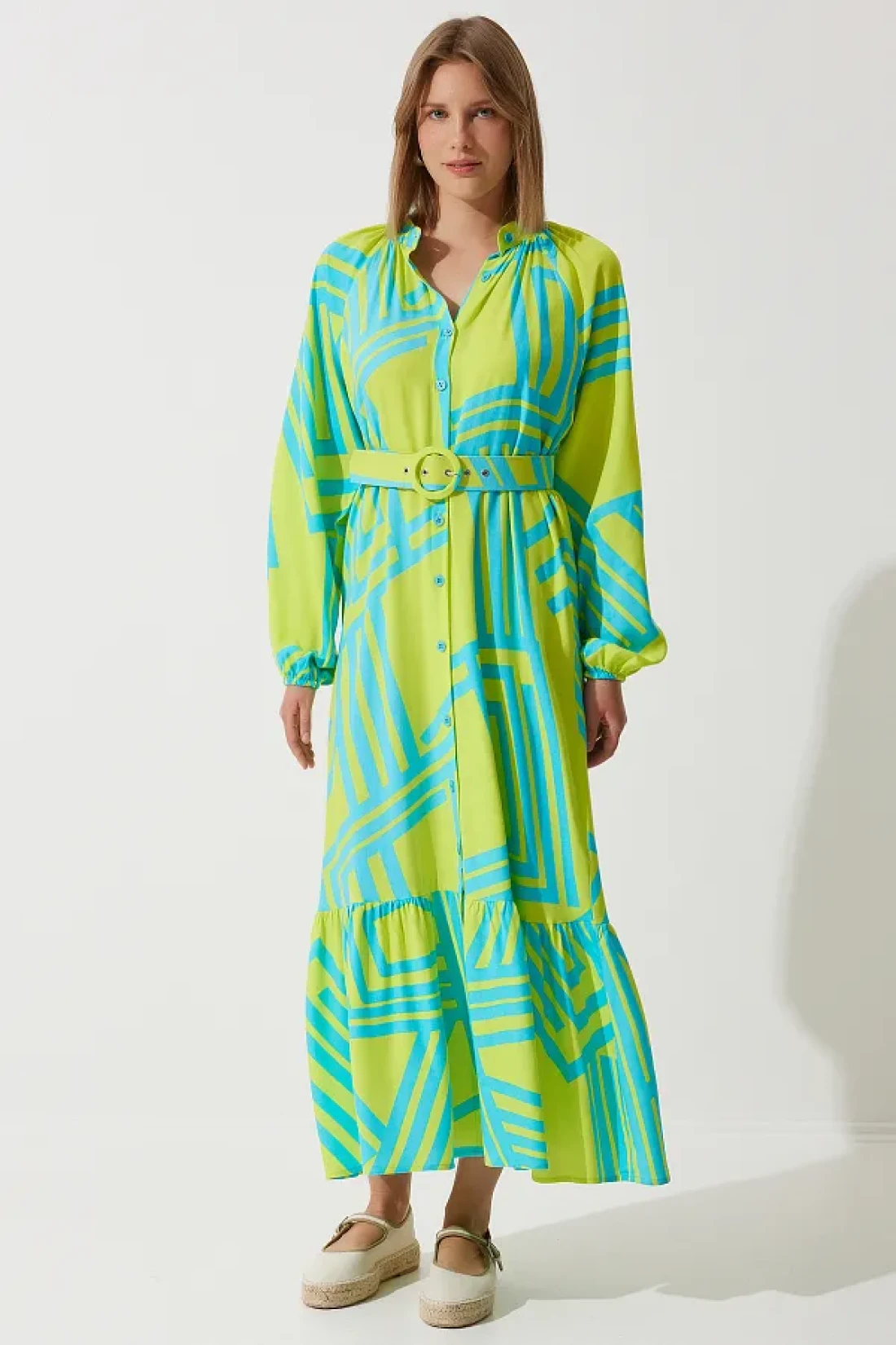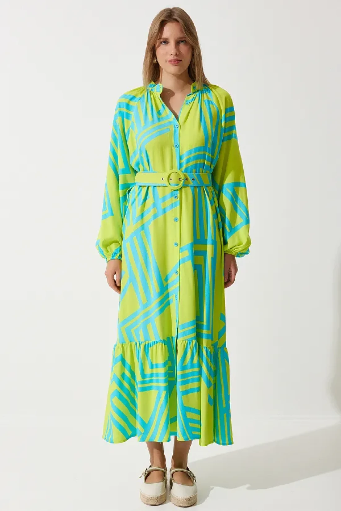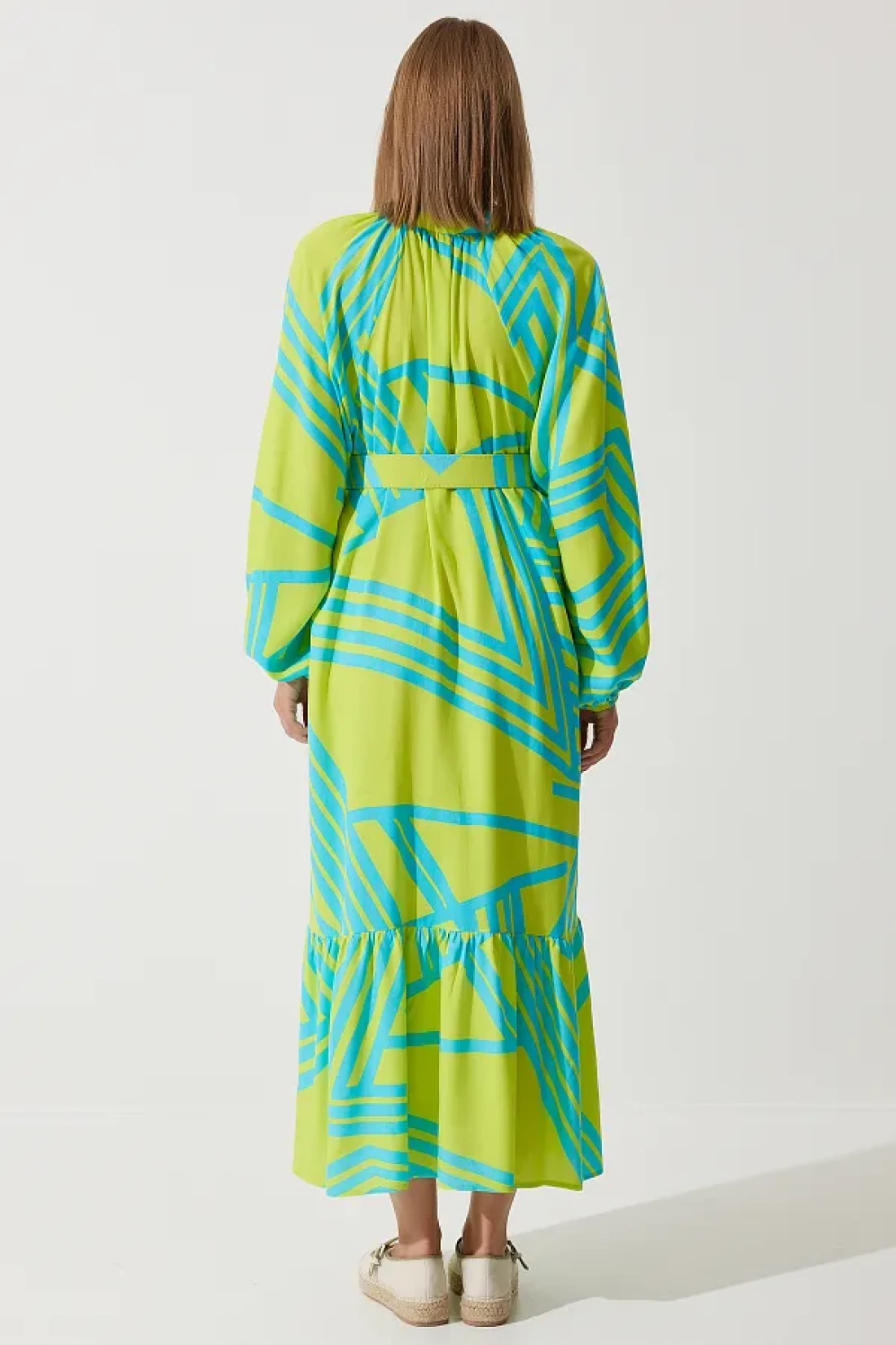 95٪ بوليستر 5٪ ليكرا؛ فستان فيسكوز صيفي مريح وكبير الحجم مع حزام مشبك مصنوع من نسيجه الخاص، غير مبطن، غير شفاف. طول المنتج: 130 سم طول الذراع: 65 سم؛ قد تختلف الألوان في لقطات الاستوديو بسبب اختلافات الإضاءة. الطول: 1.76 سم ، الصدر: 86 سم الخصر: 60 سم الورك: 92 سم