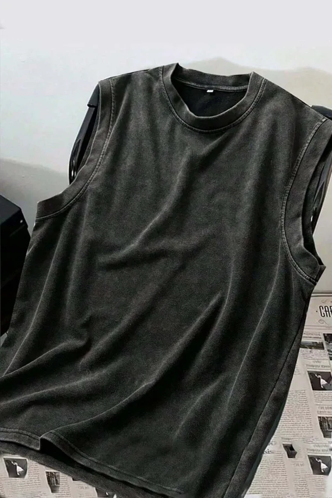 Karakedi تيشيرت أسود قابل للغسل بدون أكمام للجنسين