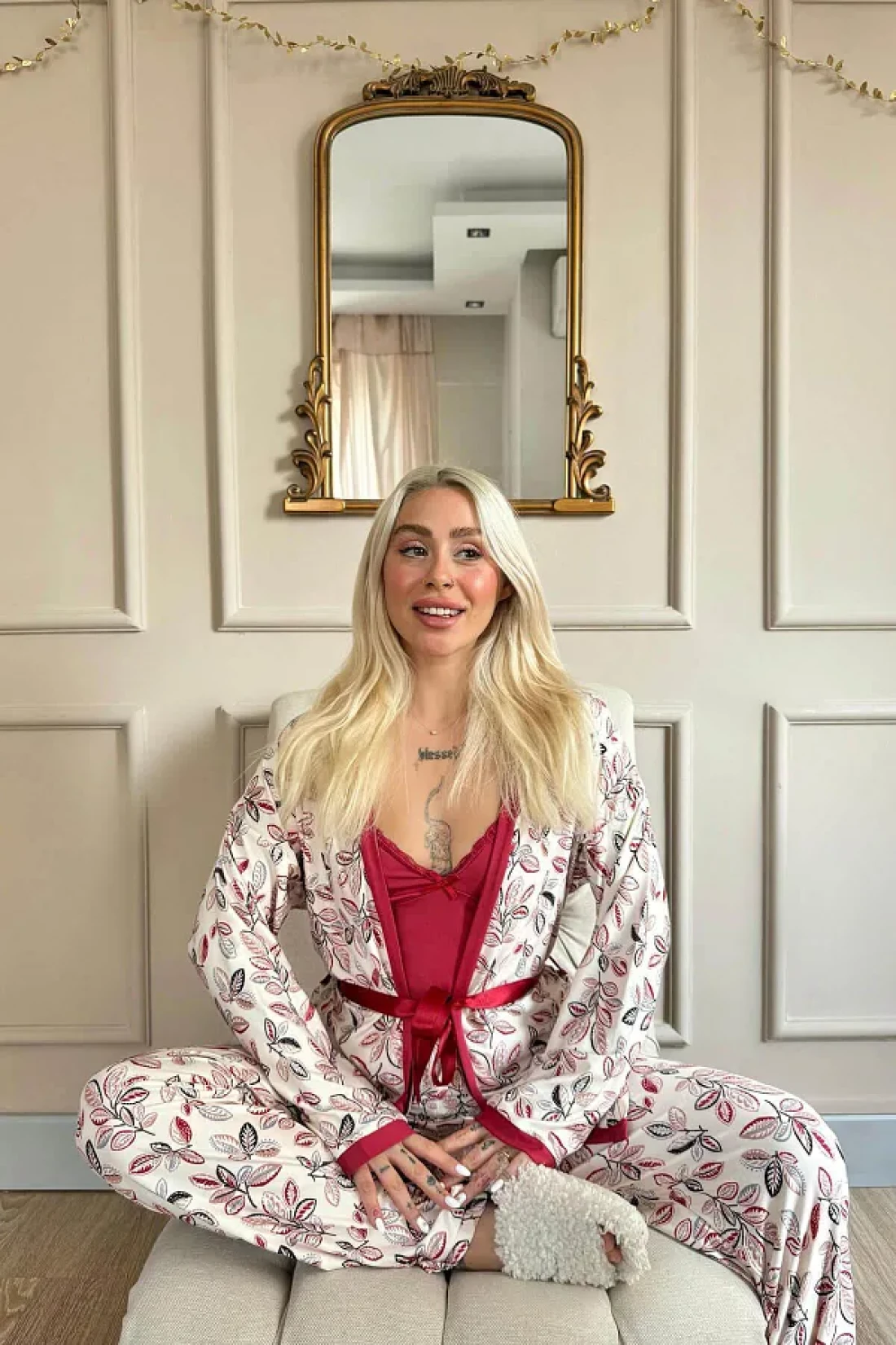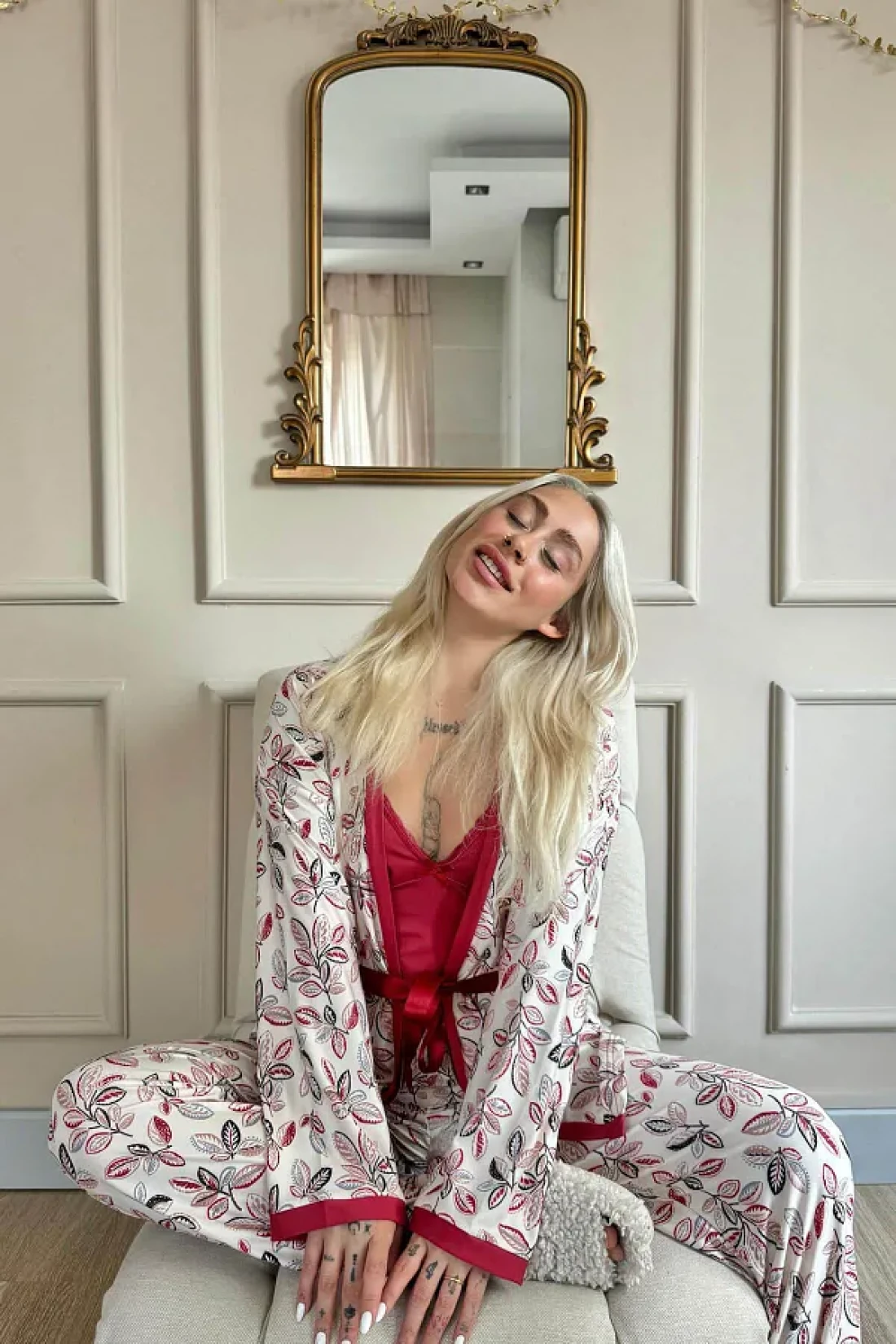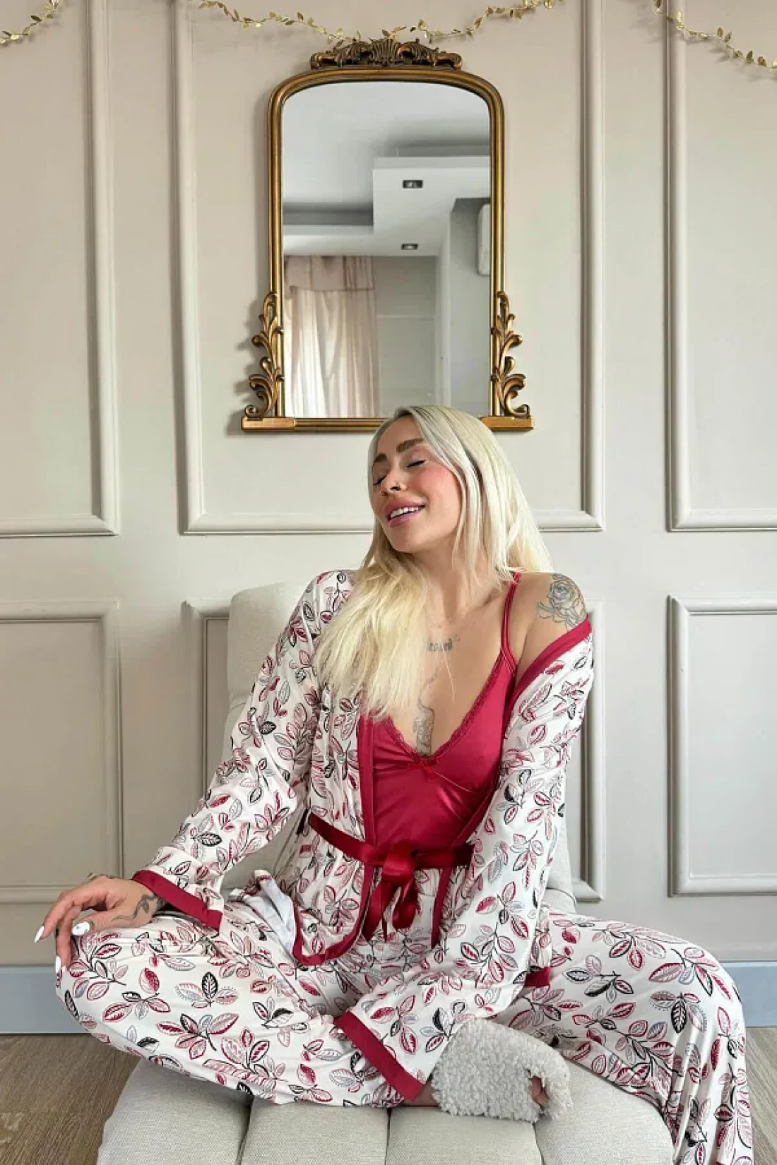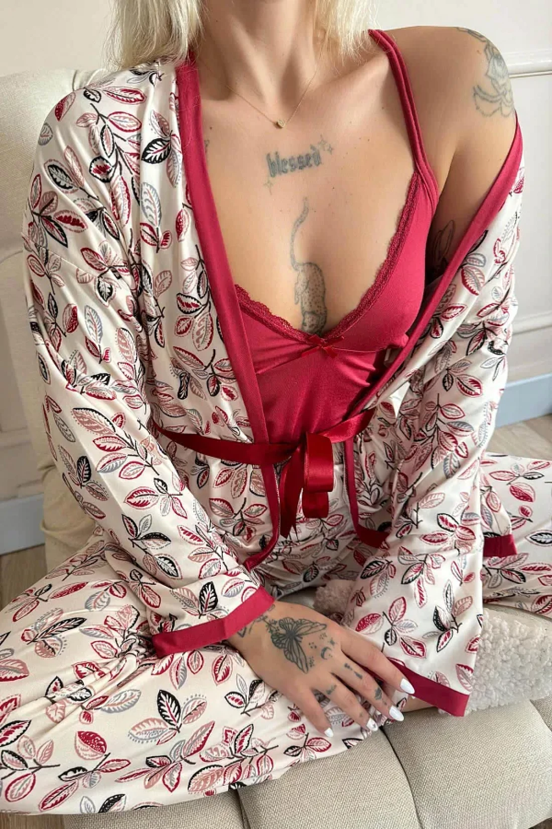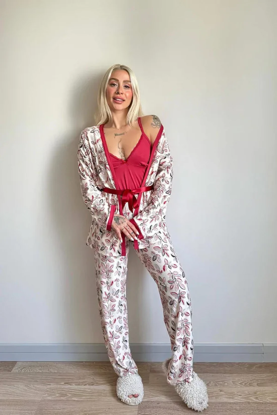 Pijamaevi طقم بيجامة نسائية محبوكة حصريًا من Red Flore