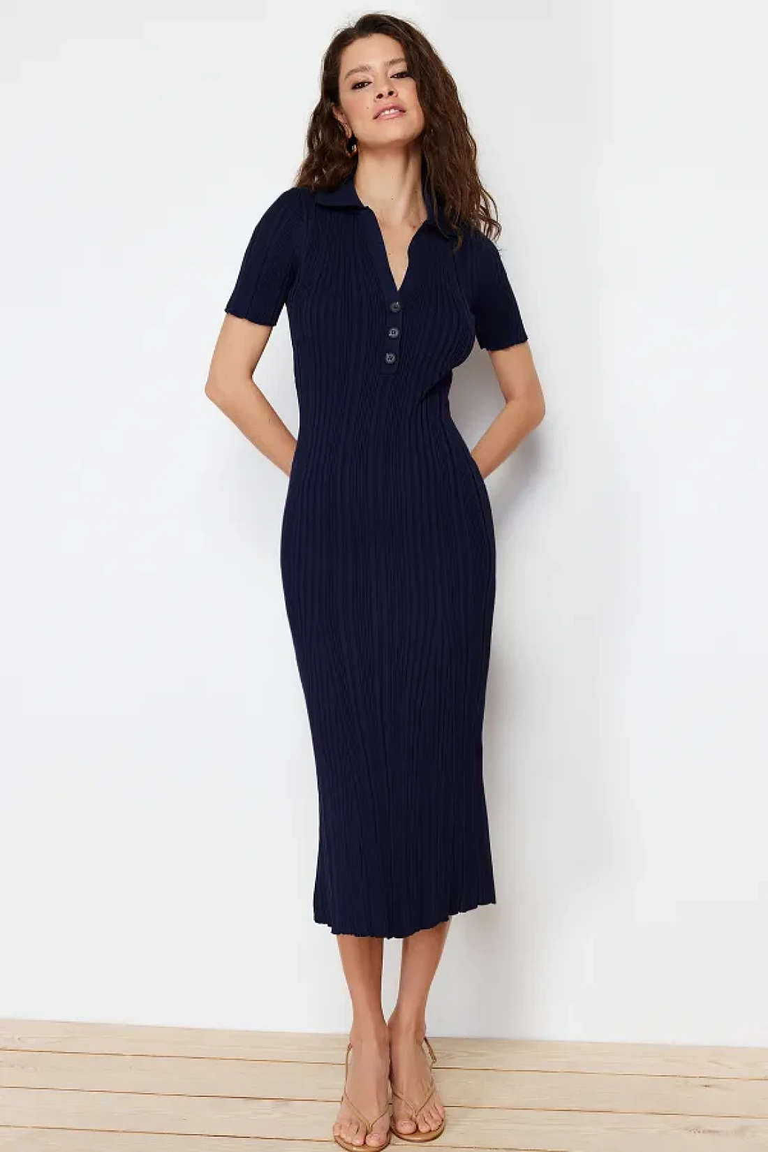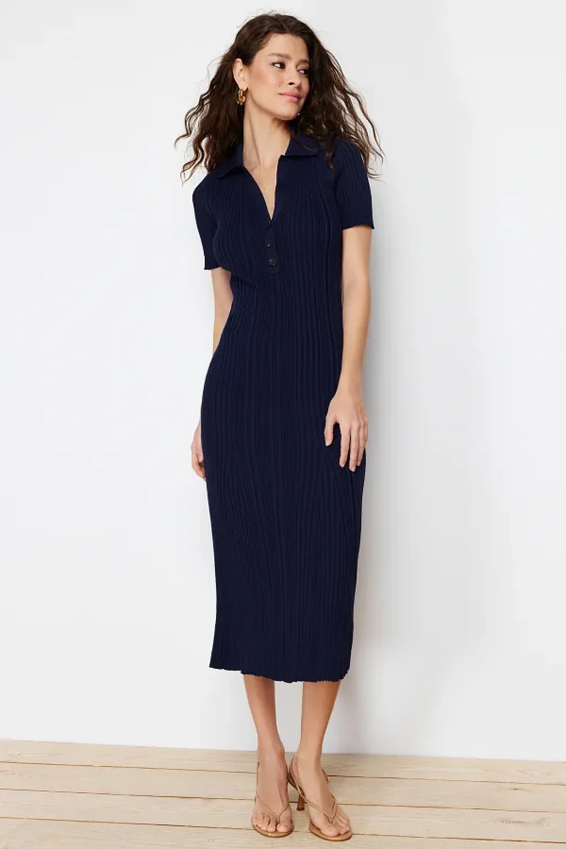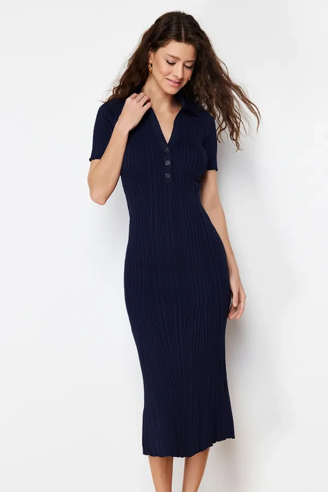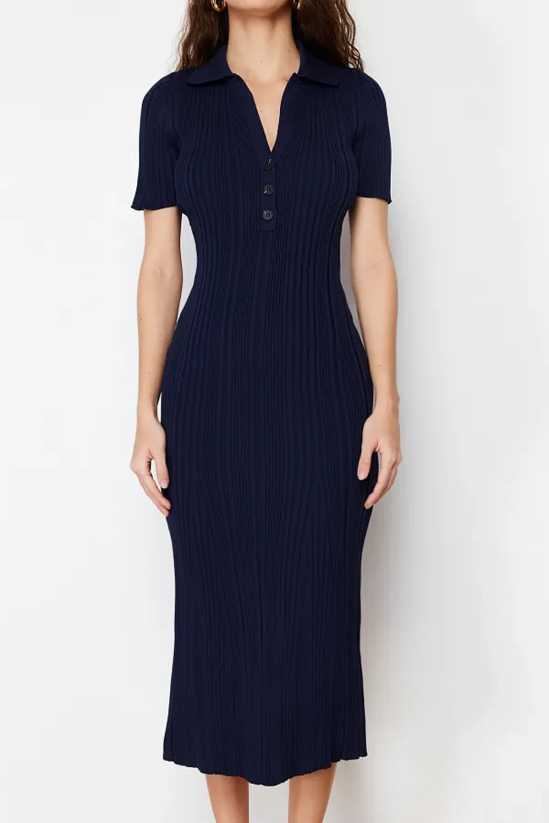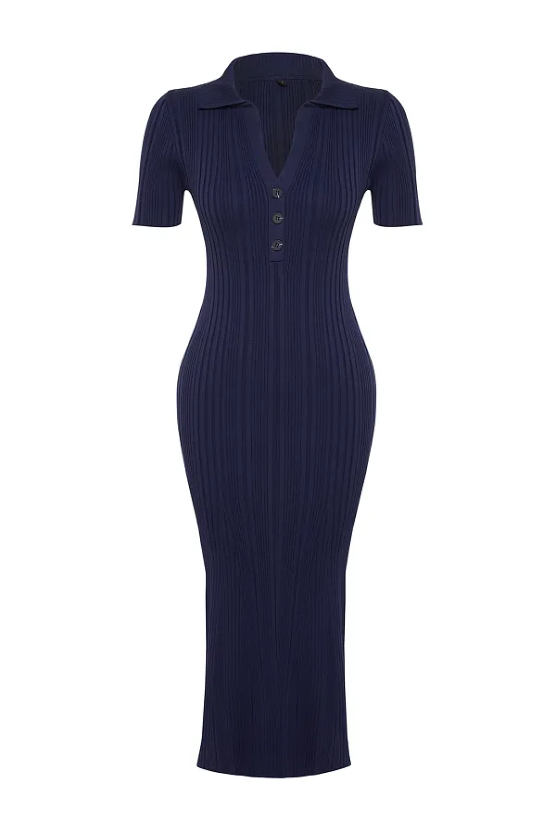 Collection فستان ماكسي بياقة بولو باللون الأزرق الداكن TWOSS24EL00282