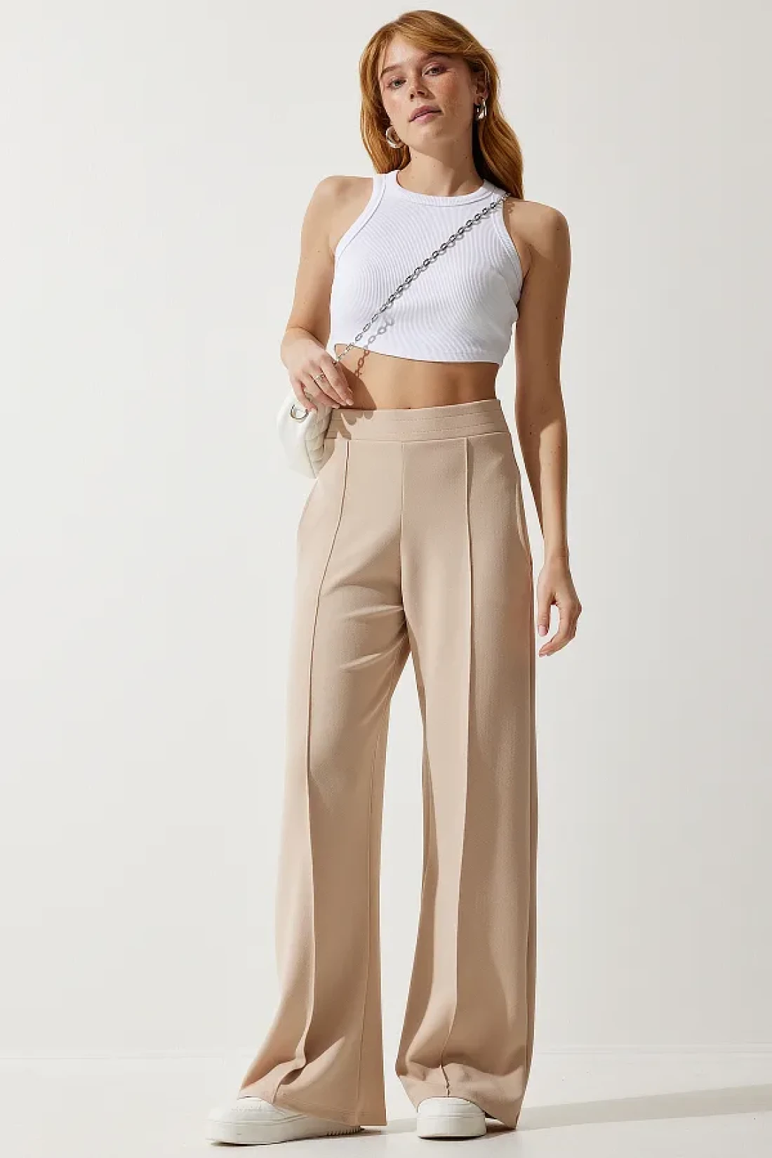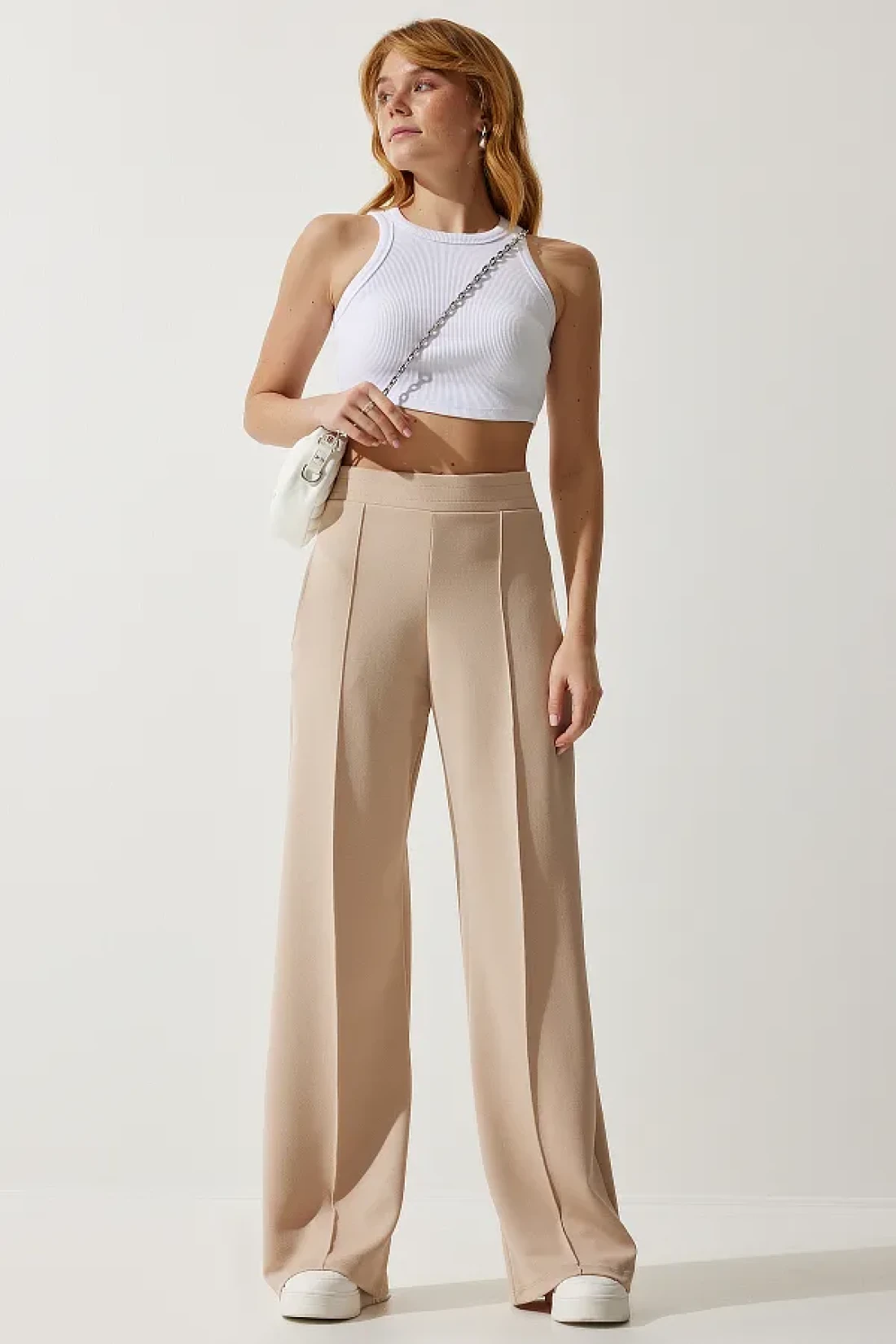 هيكل مرن يتكيف مع جميع أنواع الجسم بقصته القياسية نسيج متين يحافظ على شكله حتى مع الاستخدام طويل الأمد بفضل محتواه العالي من البوليستر مصممة للاستخدام العملي، هيكل الجيب المزدوج مثالي لحمل أغراضك الصغيرة معك. يوفر النسيج المنسوج ذو السماكة المتوسطة تجربة مريحة أثناء التحولات الموسمية. مكون المادة من مزيج من 95% بوليستر و5% إيلاستين يوفر المرونة والراحة؛ يمكنك استخدام منتجك لفترة طويلة، مثل اليوم الأول، مع تعليمات الغسيل التي توفر سهولة الصيانة. لديها مجموعة واسعة من المستخدمين بتصميمها الذي يناسب جميع الفئات العمرية. النمط البسيط، الذي يبرز بمظهره البسيط والأنيق، يجد بسهولة مكانه في تركيباتك اليومية. تصميم الساق الواسعة يخلق صورة ظلية عصرية ومريحة بينما لا يقيد حرية حركتك؛ يوفر مقعدًا مريحًا طوال اليوم مع ارتفاع الخصر الطبيعي بفضل صورته الظلية ذات الأرجل الواسعة، فهو عصري