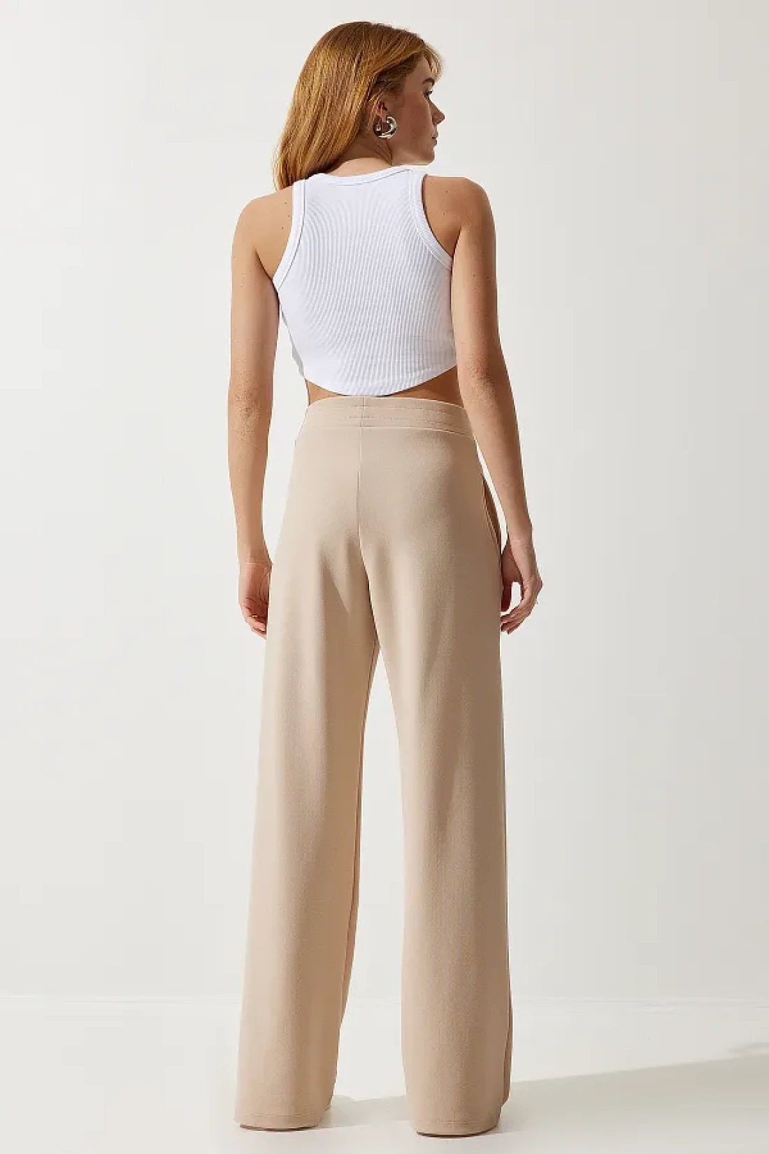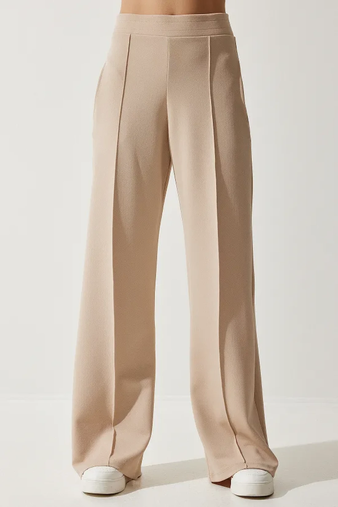 Happiness İstanbul بنطال رياضي نسائي كريمي قابل للتمدد BF00090