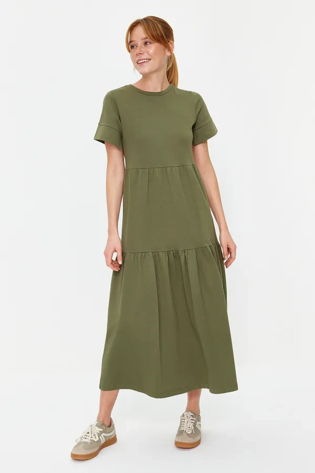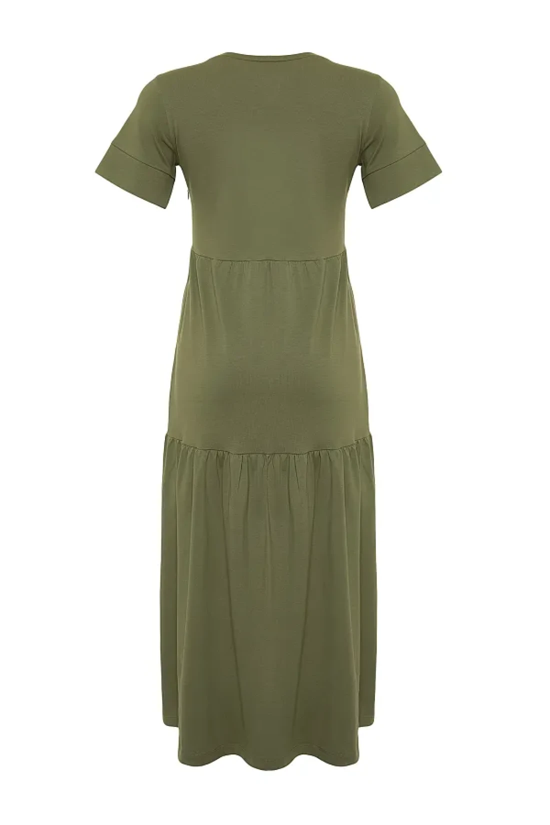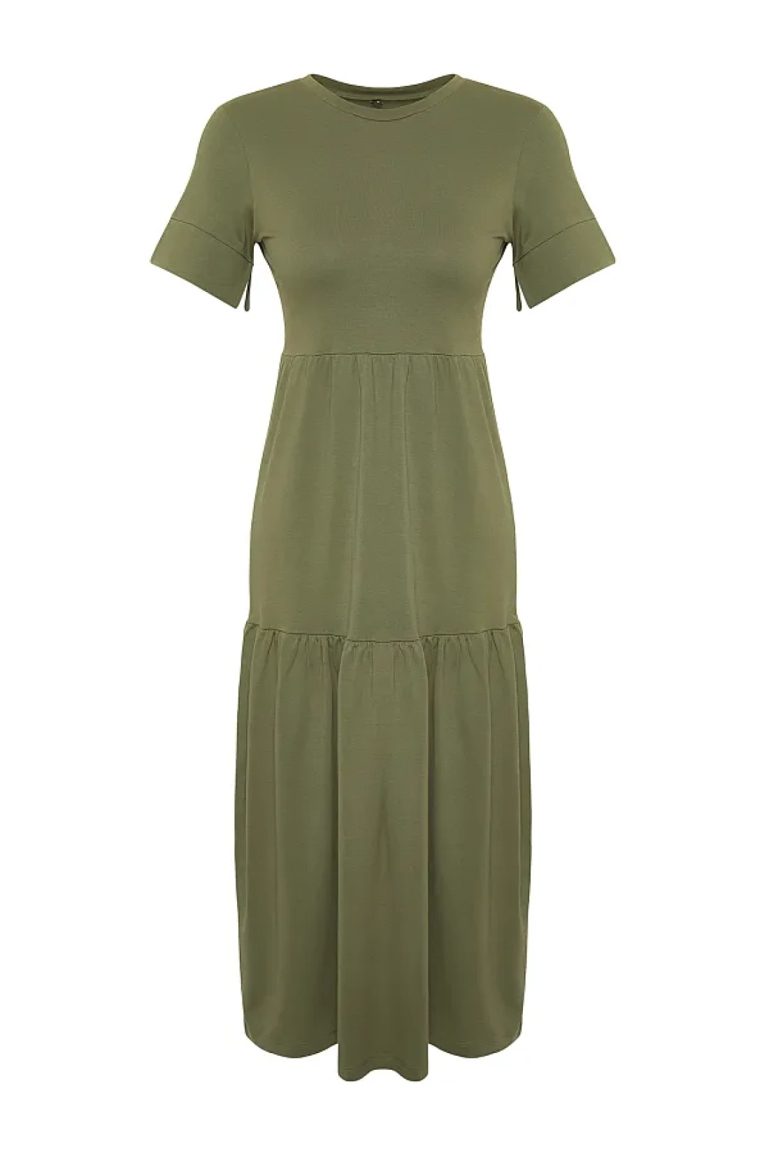 Collection فستان تي شيرت طويل محبوك بأكمام قصيرة كاكي TWOSS24EL00132