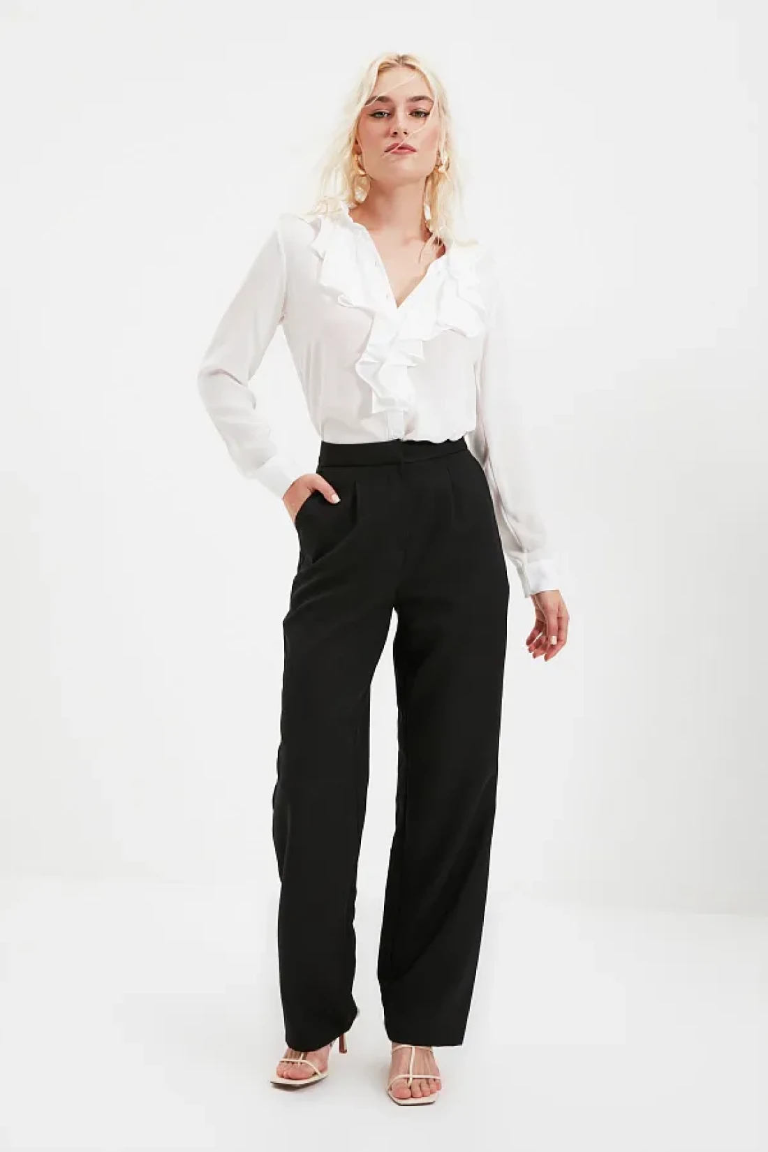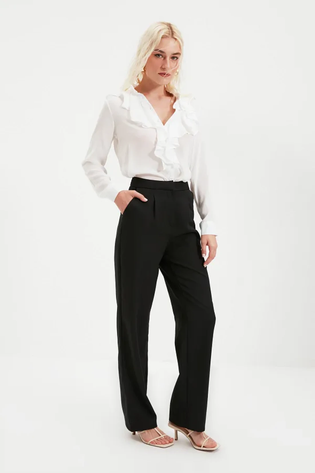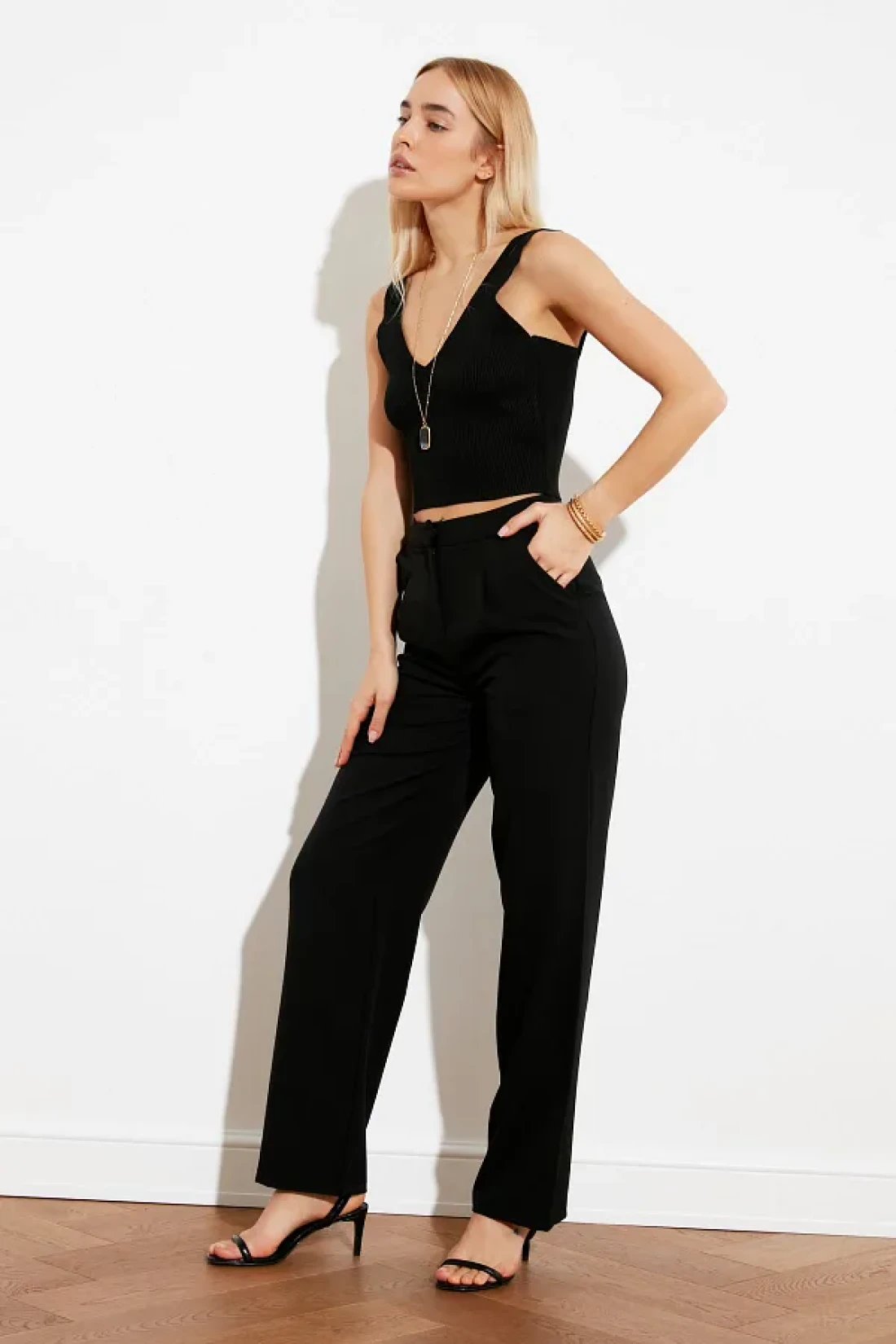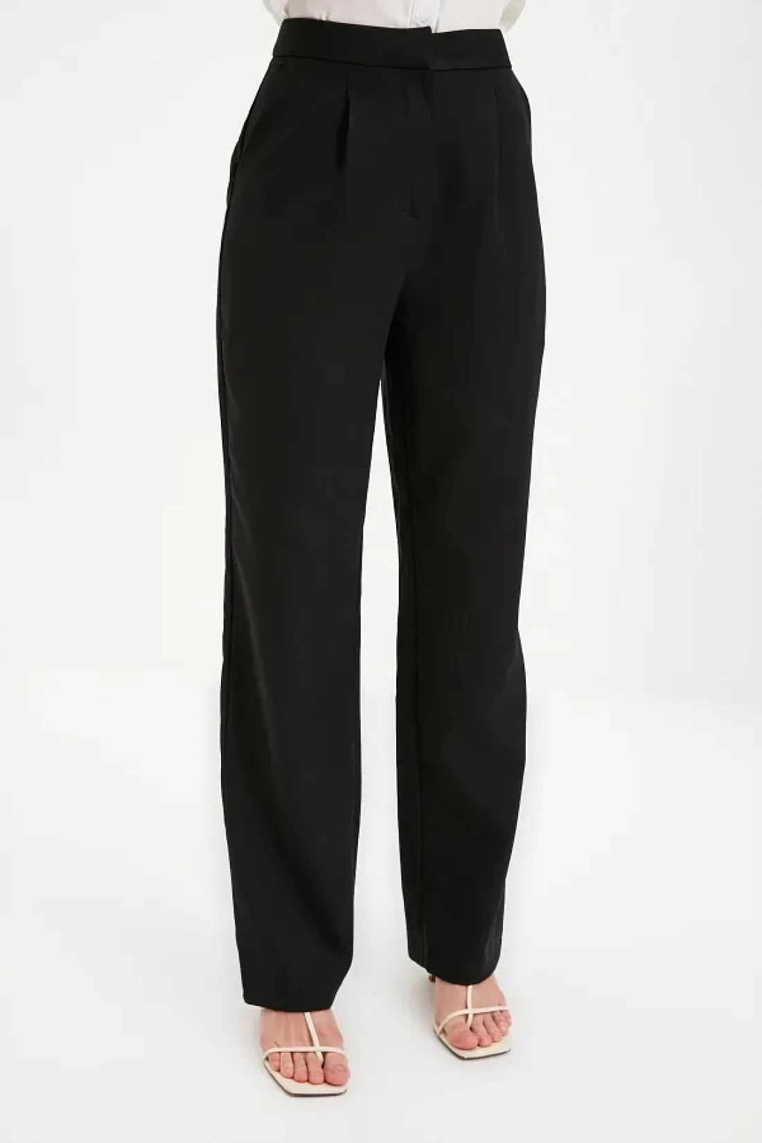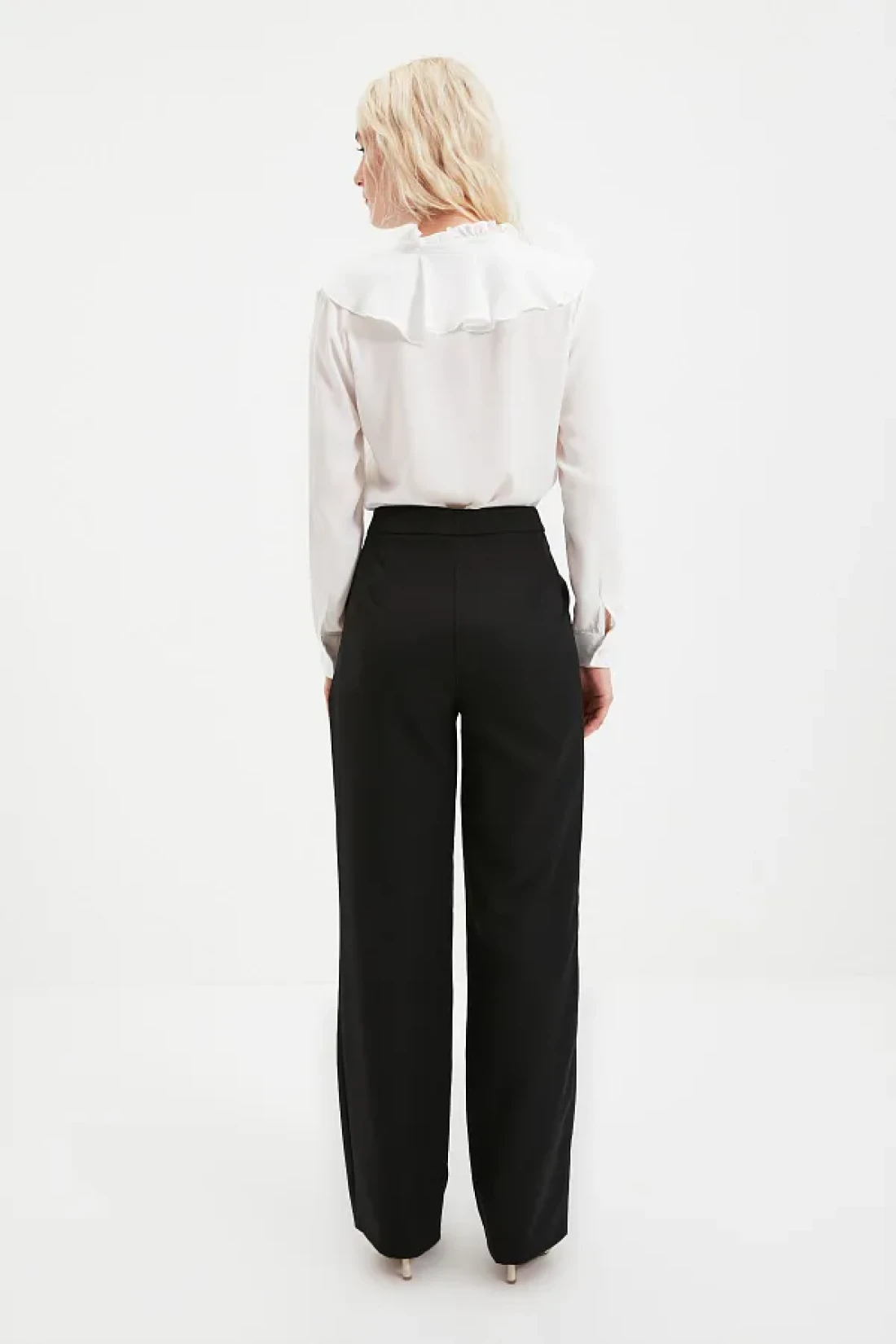 Collection بنطال قماش أسود مطوي بأرجل واسعة - TWOSS21PL0155