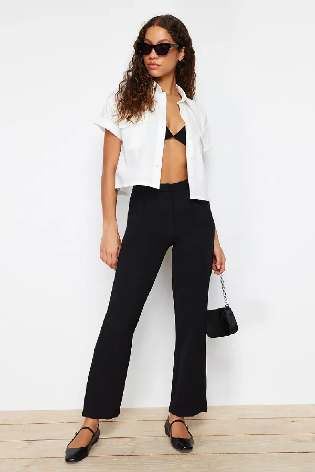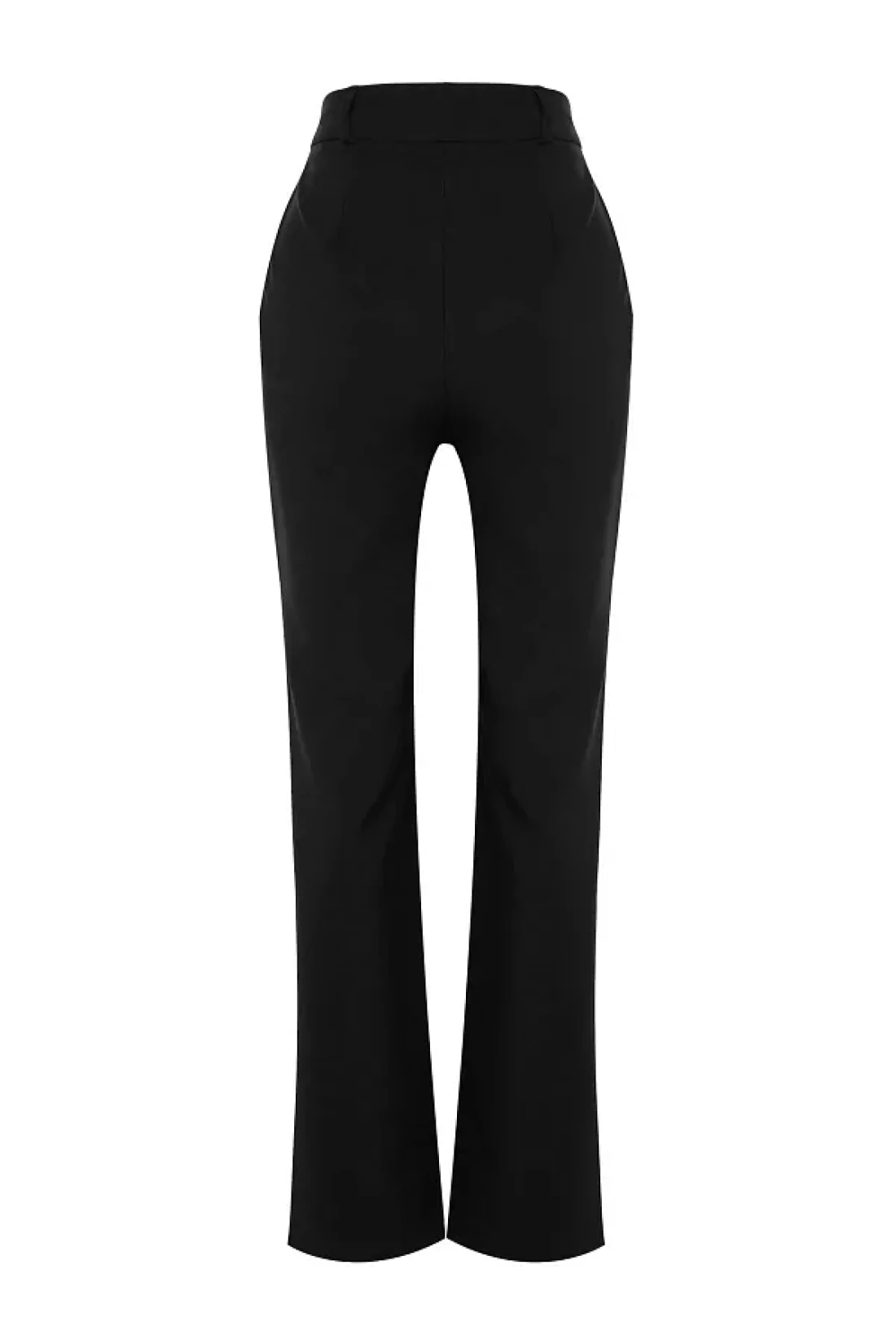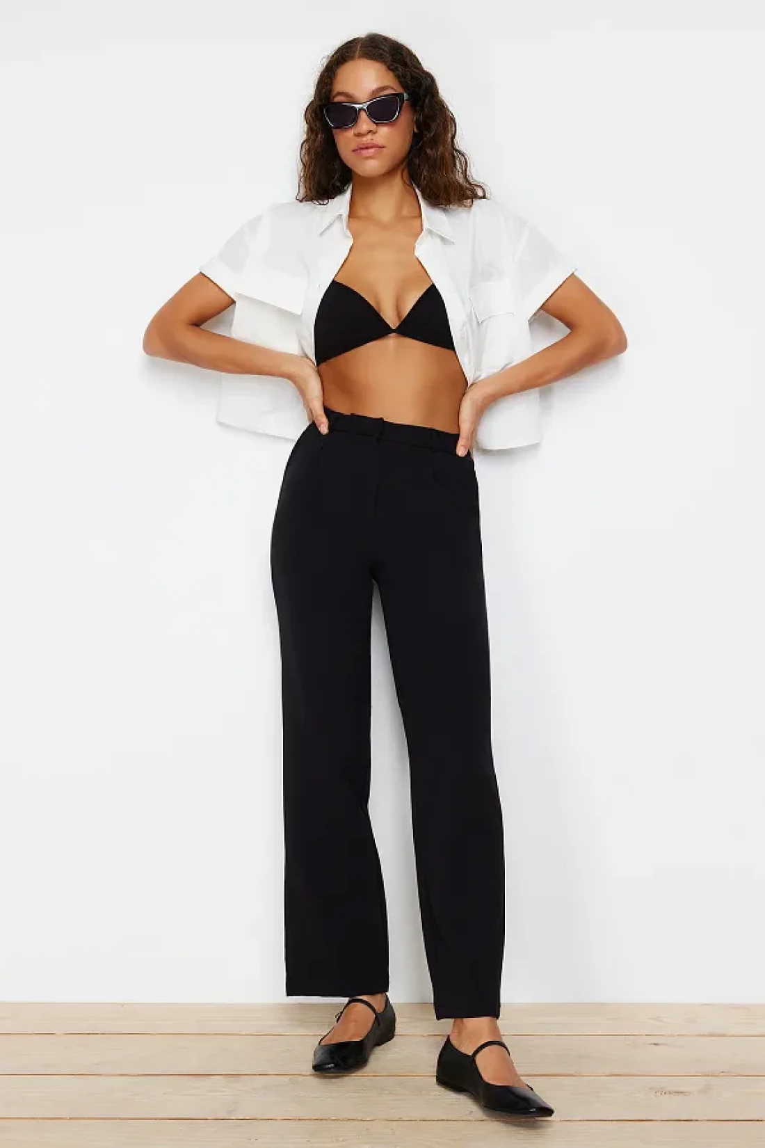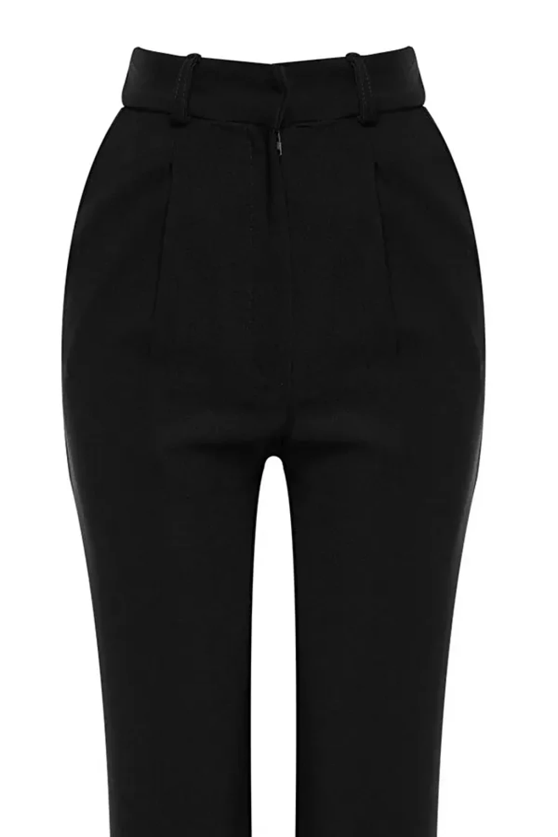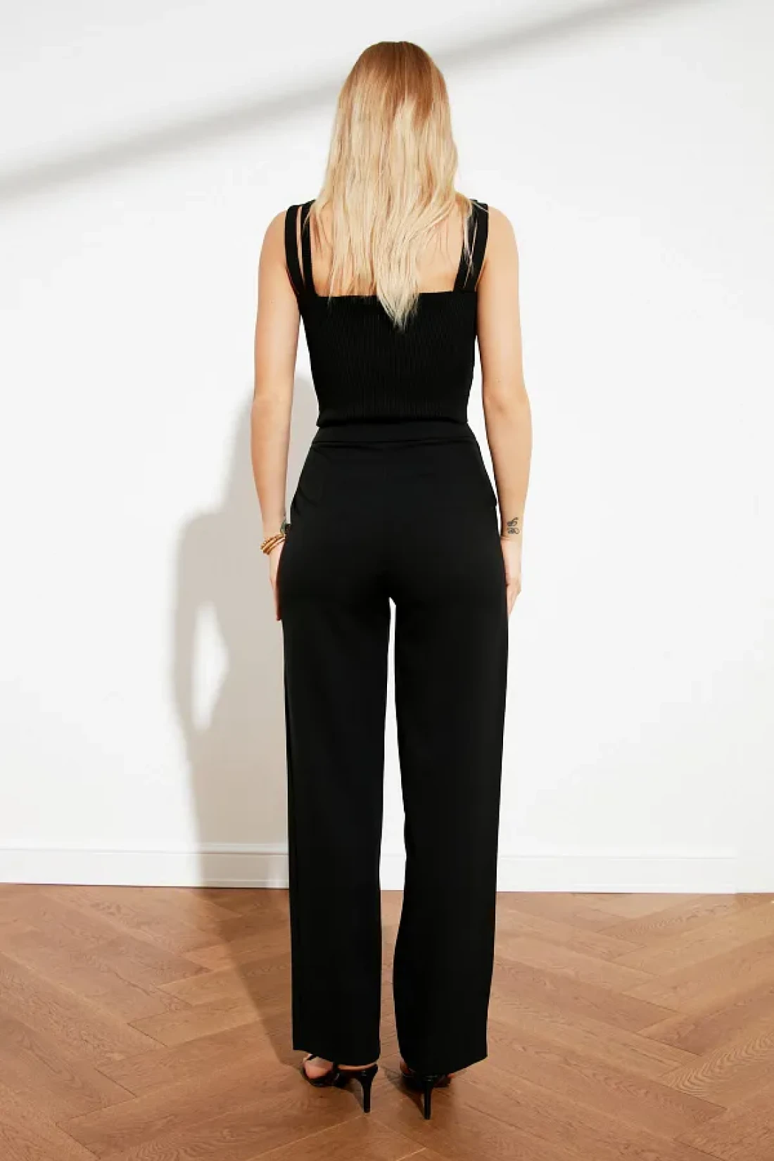Collection بنطال قماش أسود مطوي بأرجل واسعة - TWOSS21PL0155