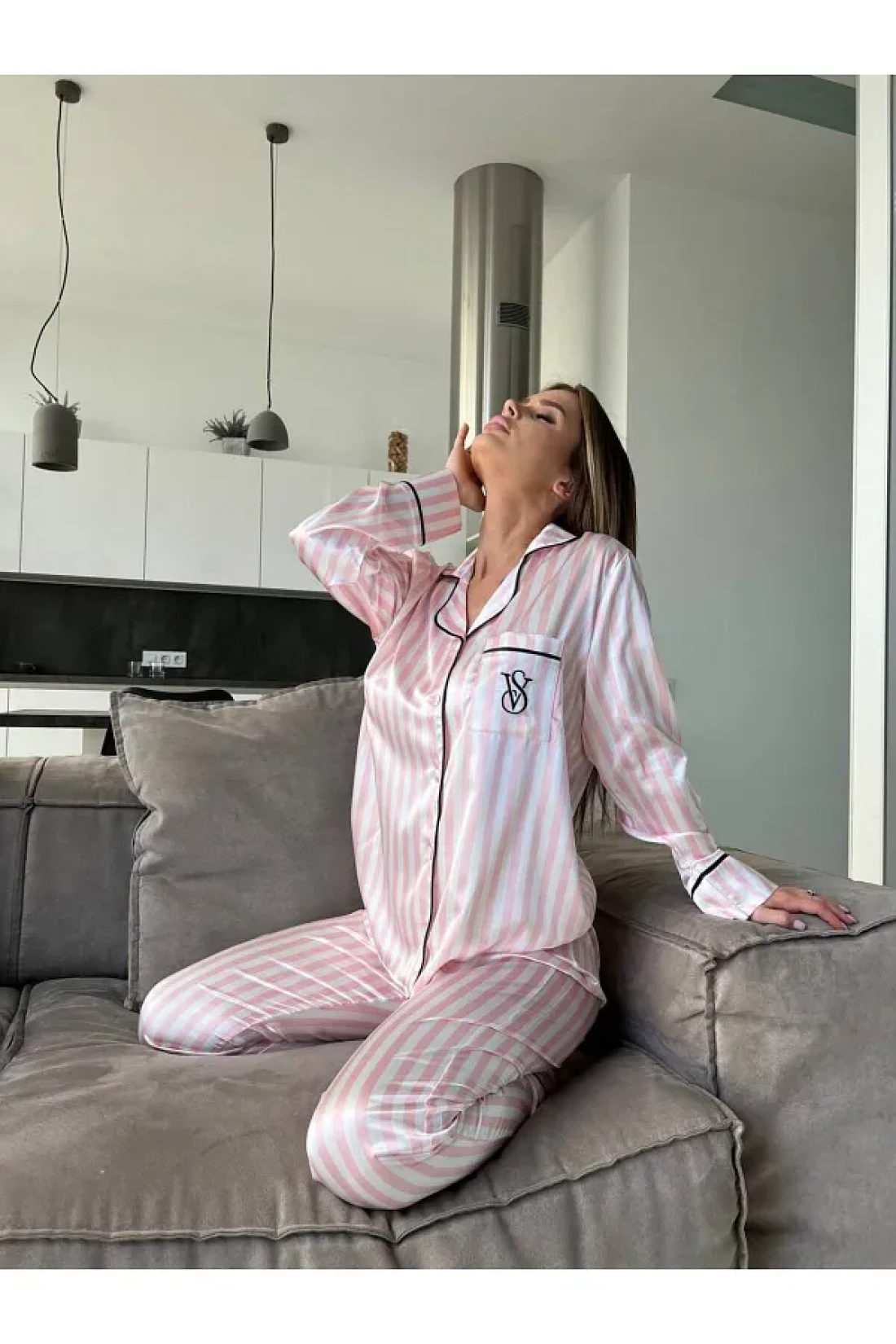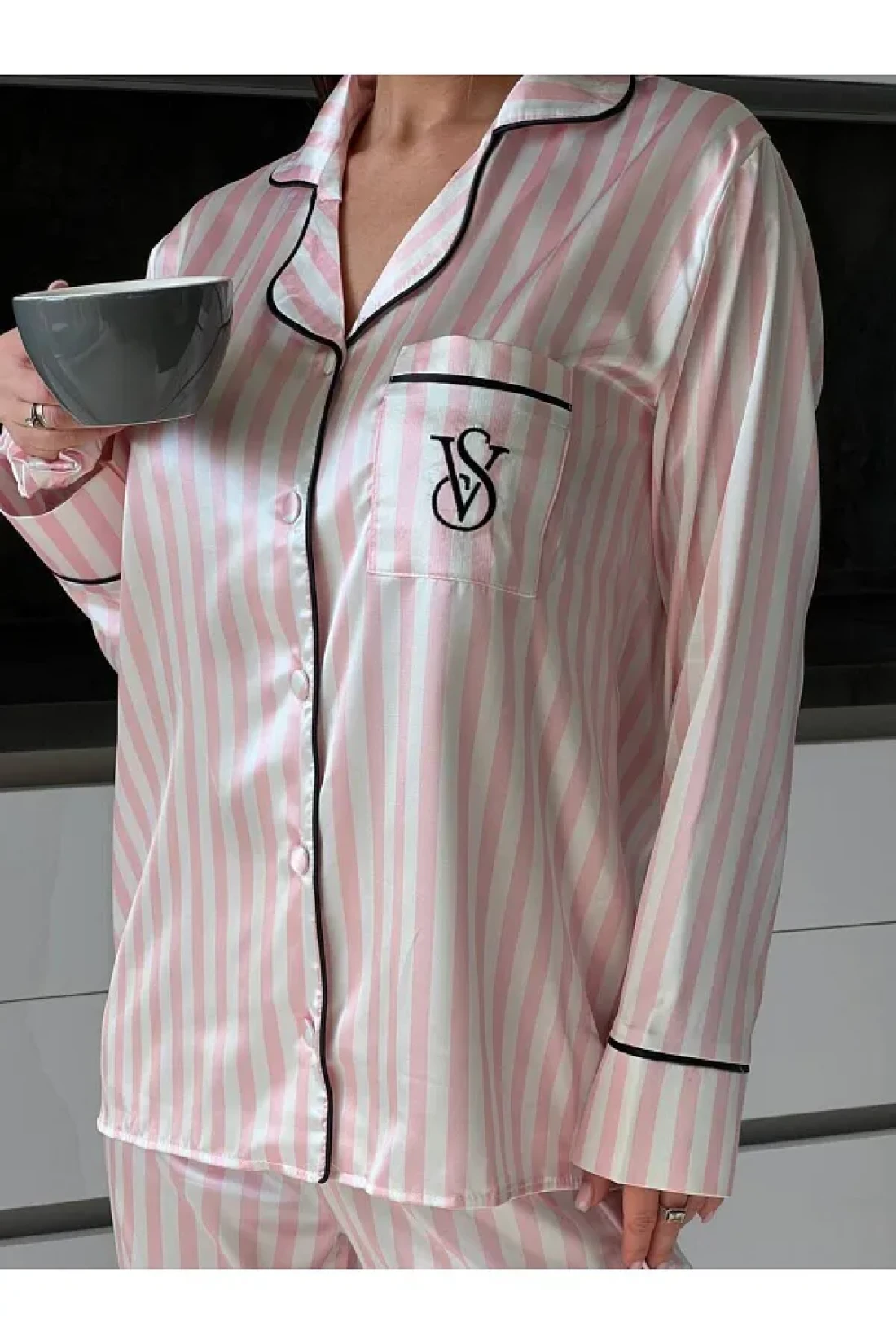 Victoria __طقم بيجامة من قماش الساتان من موديلات فيكتوريا سيكريت مقاس 2 بوصة