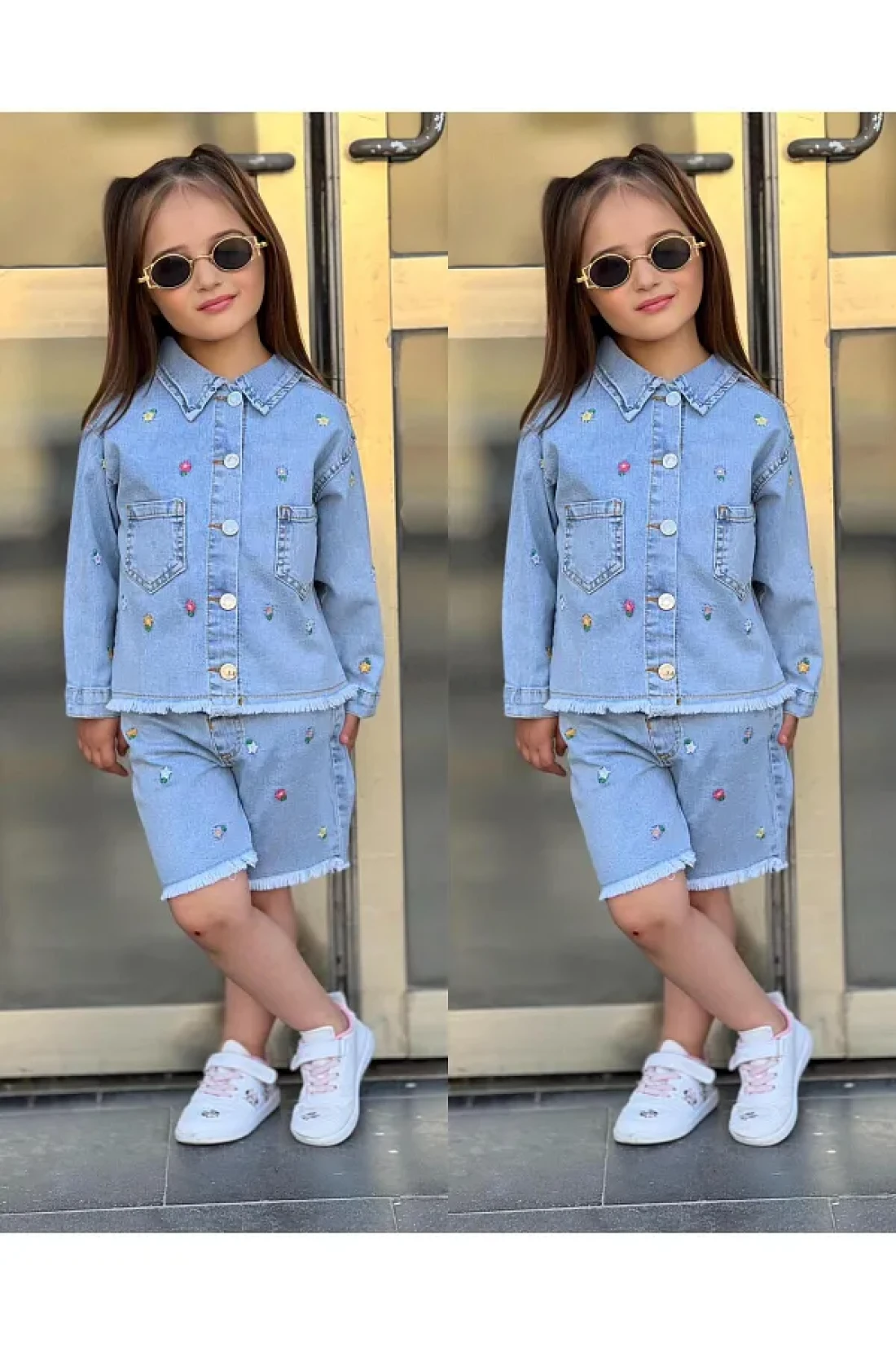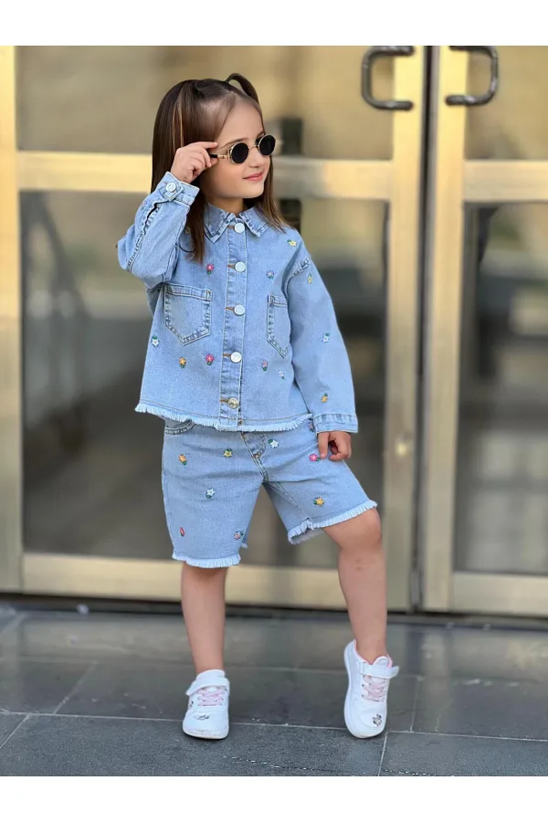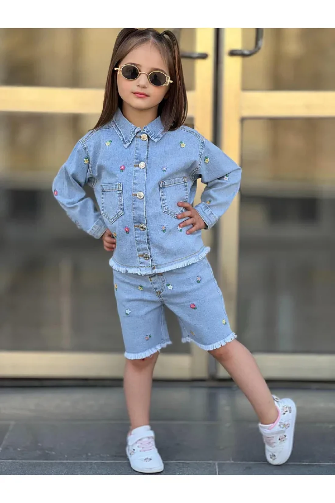 yns coolstar طقم شورت وسترة صيفية من الليكرا للموسم الجديد مكون من قطعتين من قماش الدنيم المطرز بالزهور القطنية