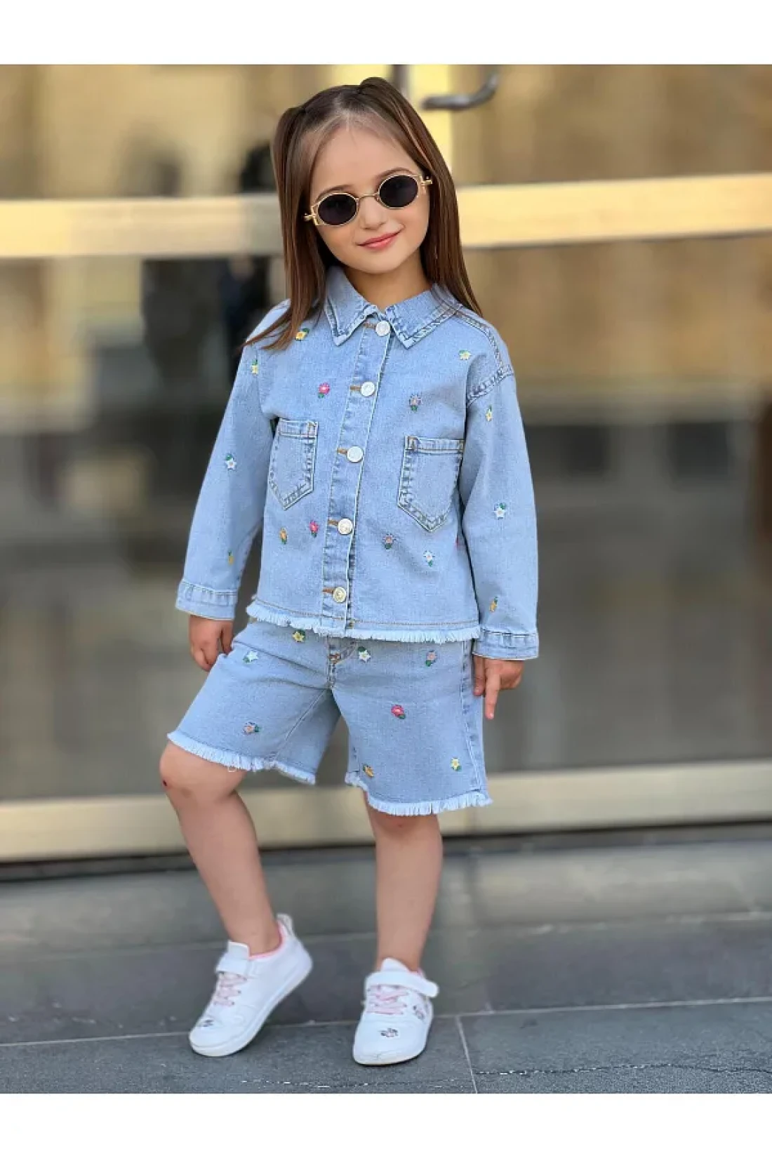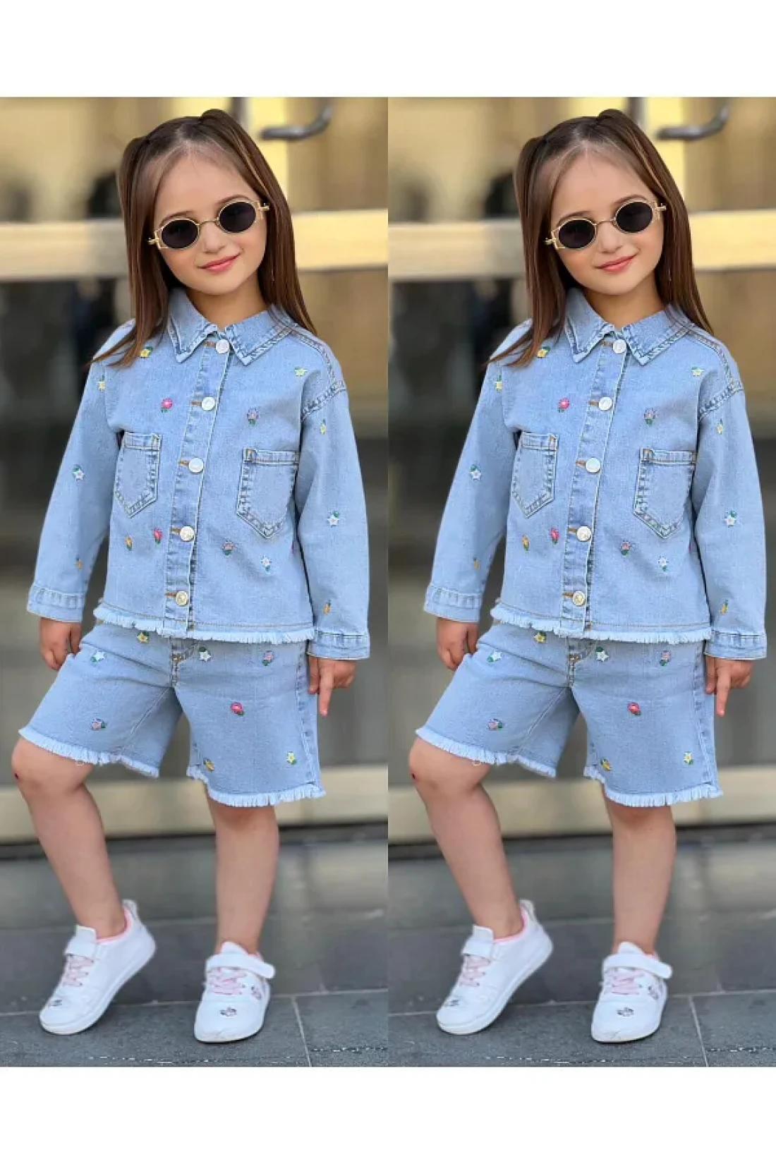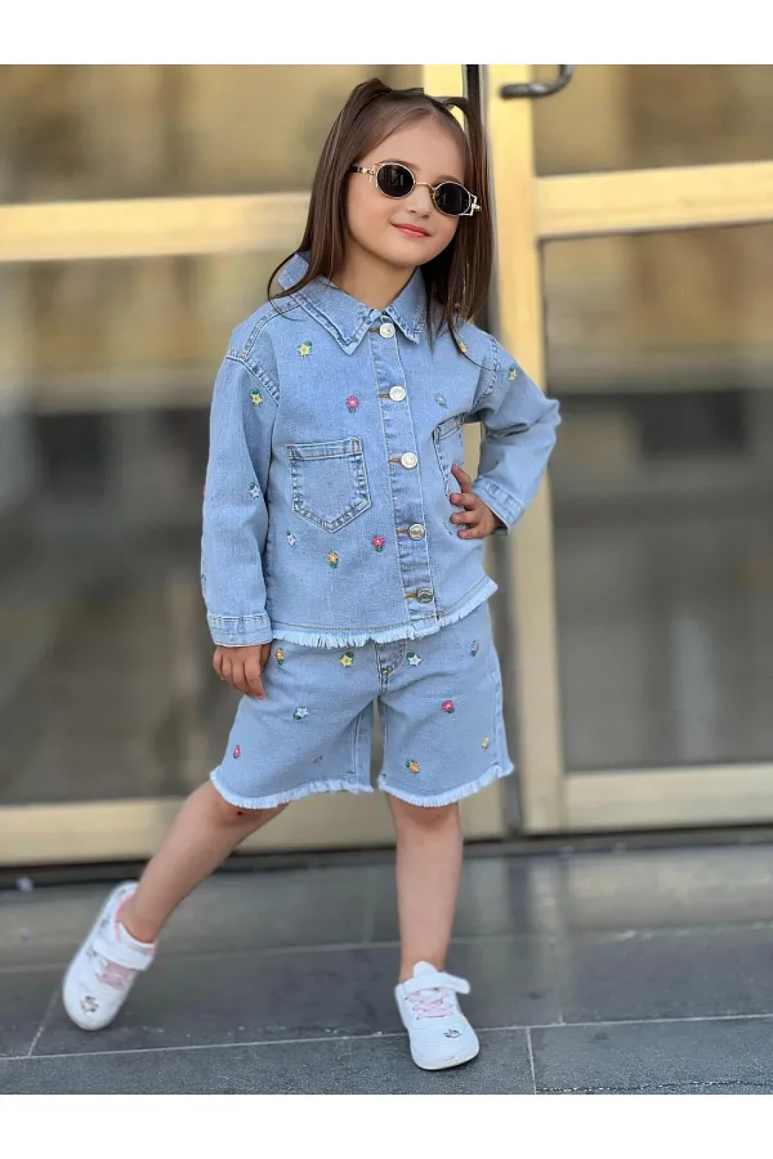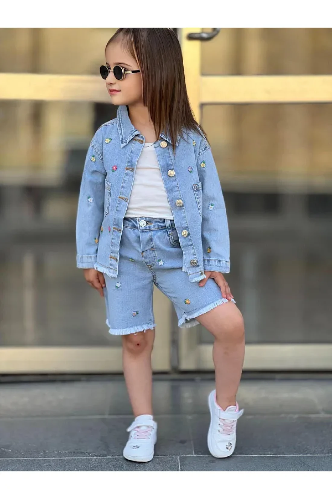 yns coolstar طقم شورت وسترة صيفية من الليكرا للموسم الجديد مكون من قطعتين من قماش الدنيم المطرز بالزهور القطنية