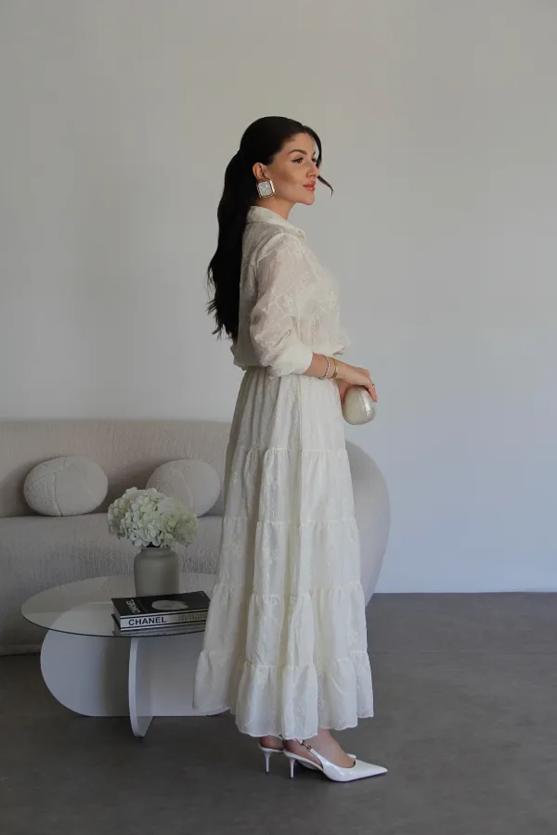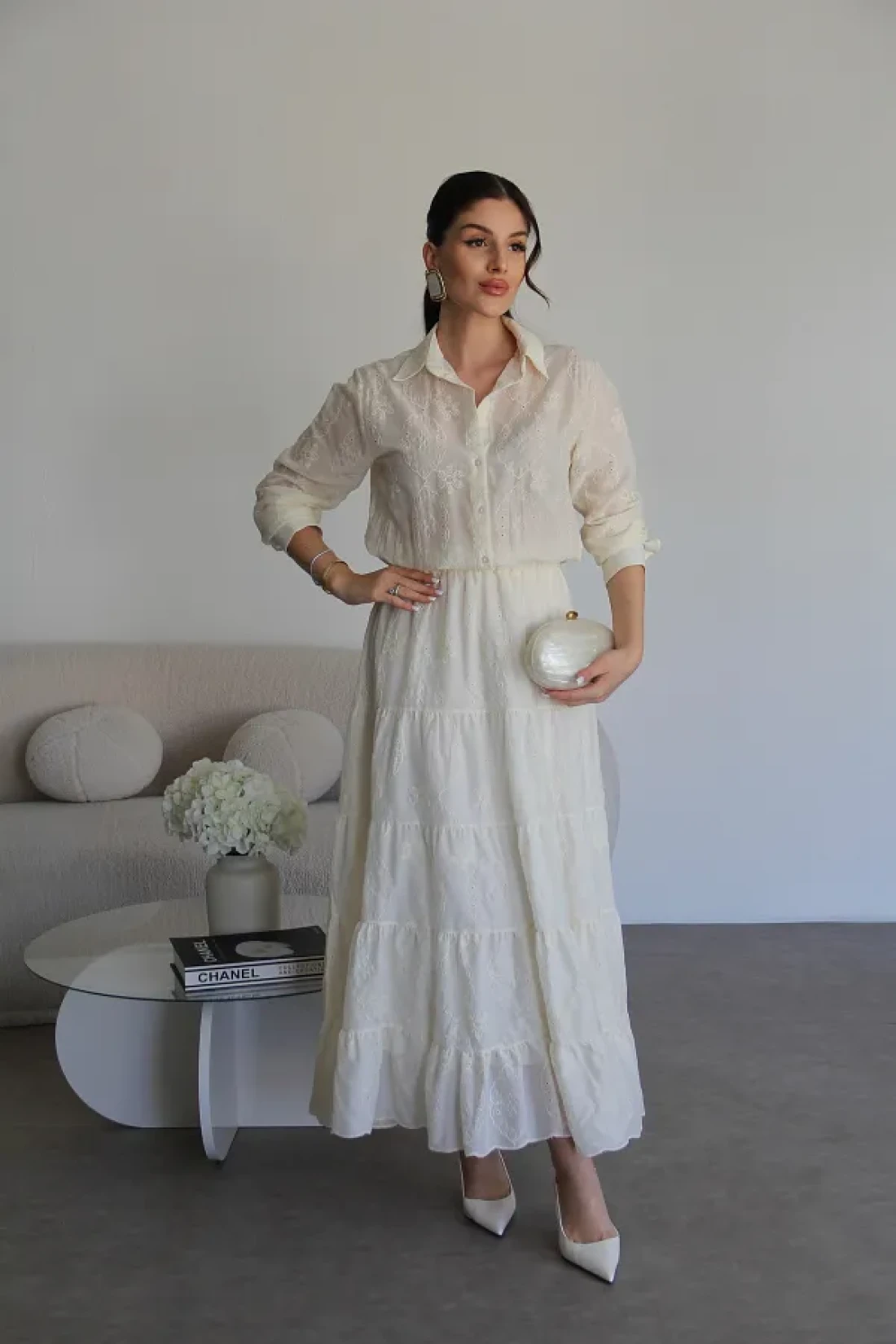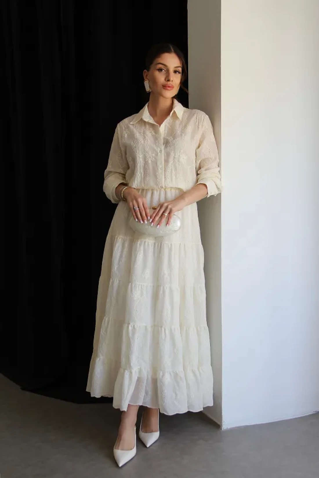 - هذا الفستان، الذي سيجعلك تبدين أنيقة في البيئات العصرية، هو أحد القطع الأساسية في أي خزانة ملابس. جودة عالية، فستان طويل ممتاز مطرز بالكريمة للموسم الجديد يحتوي على قماش البرود. أبعاد المنتج: الارتفاع: 140 سم. القميص يحتوي على ياقة، خصر مطاطي، بطانة داخلية، ونصف طول مزود بأزرار. معلومات النموذج: الطول: 170 سم الوزن: 52 كجم: الحجم على النموذج هو S.