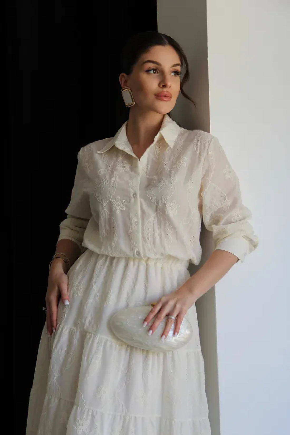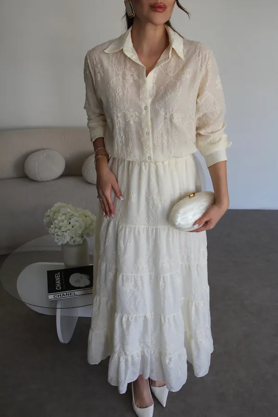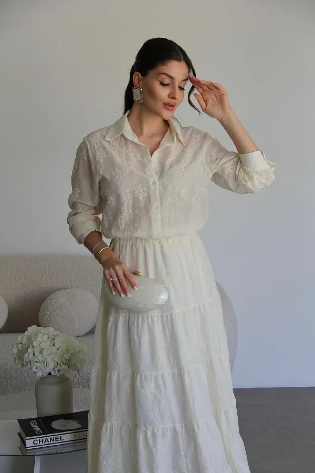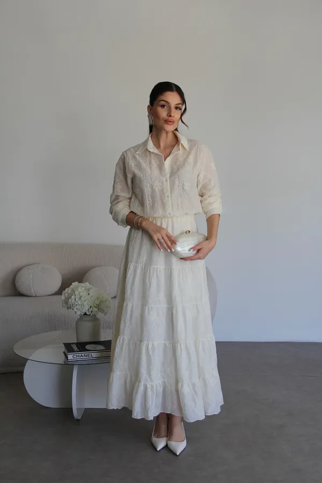 - هذا الفستان، الذي سيجعلك تبدين أنيقة في البيئات العصرية، هو أحد القطع الأساسية في أي خزانة ملابس. جودة عالية، فستان طويل ممتاز مطرز بالكريمة للموسم الجديد يحتوي على قماش البرود. أبعاد المنتج: الارتفاع: 140 سم. القميص يحتوي على ياقة، خصر مطاطي، بطانة داخلية، ونصف طول مزود بأزرار. معلومات النموذج: الطول: 170 سم الوزن: 52 كجم: الحجم على النموذج هو S.