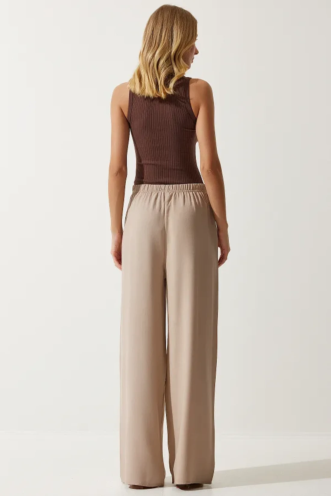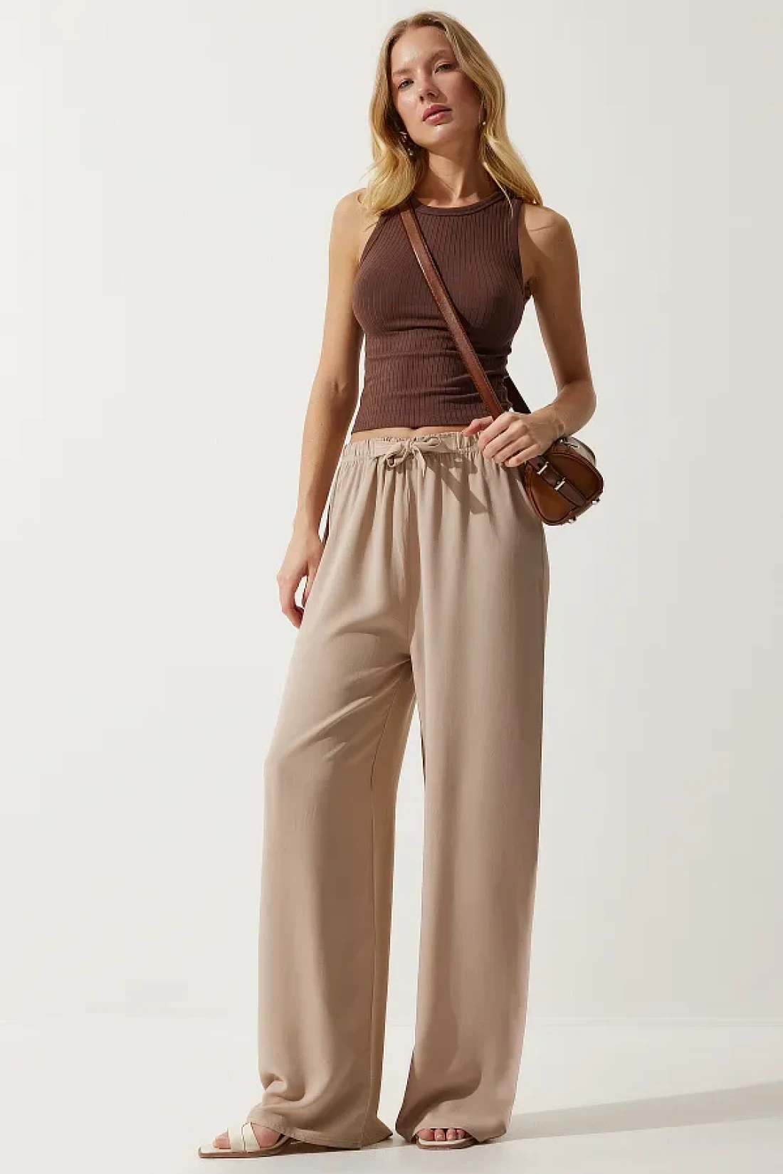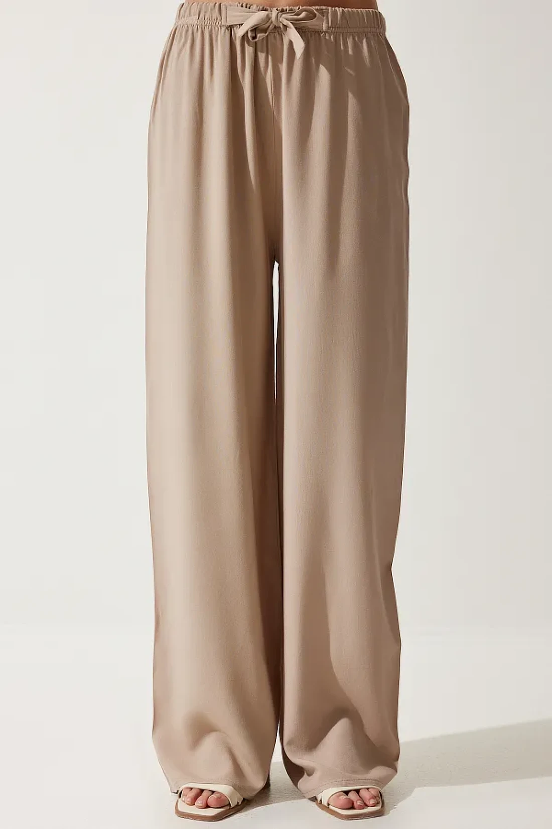 Happiness İstanbul بنطلون فيسكوز بالازو صيفي بيج للنساء EN00610
