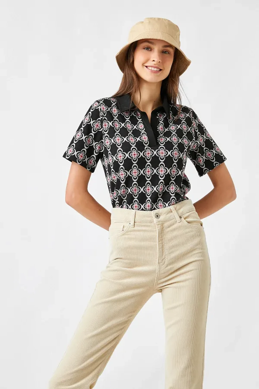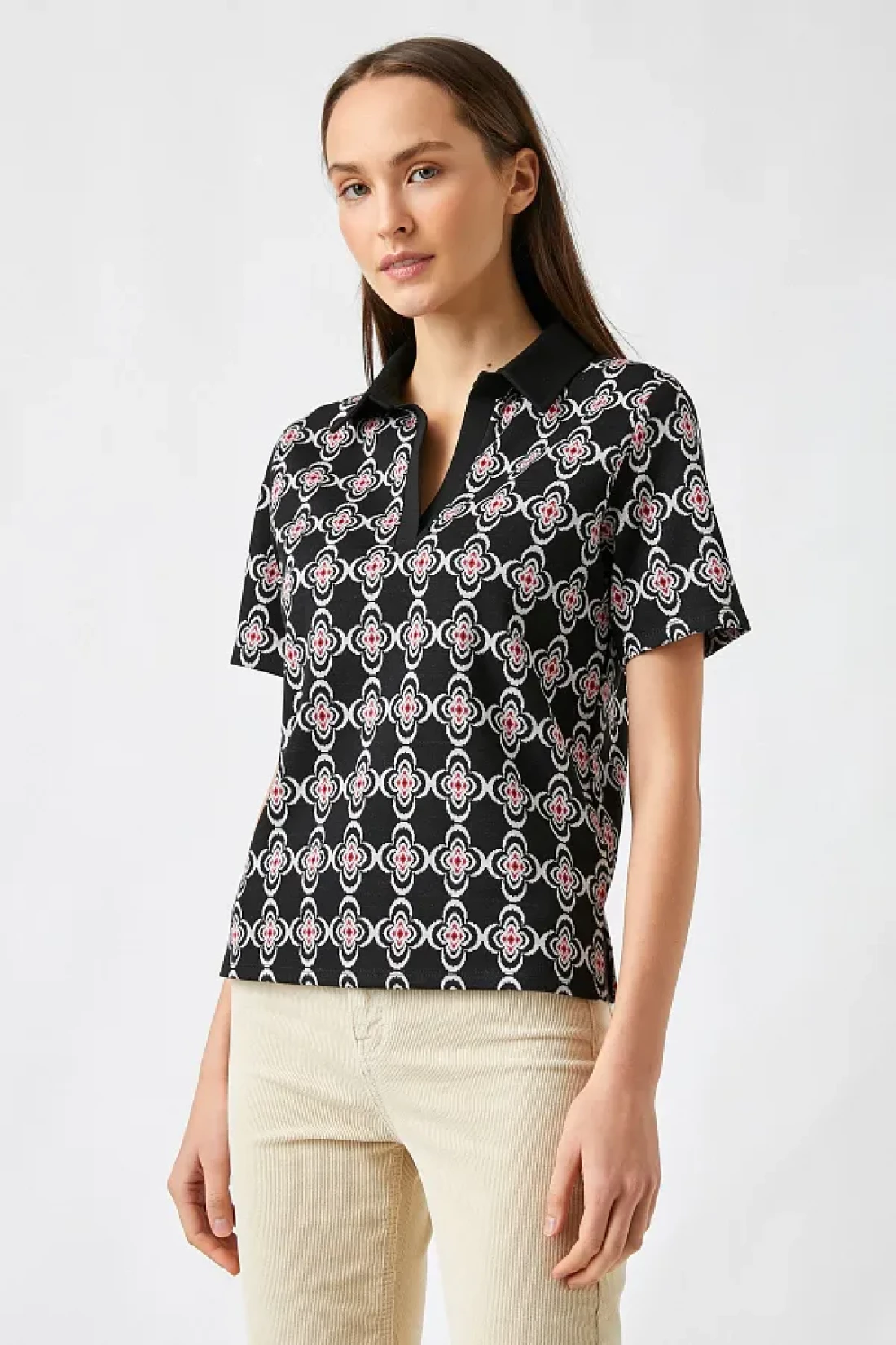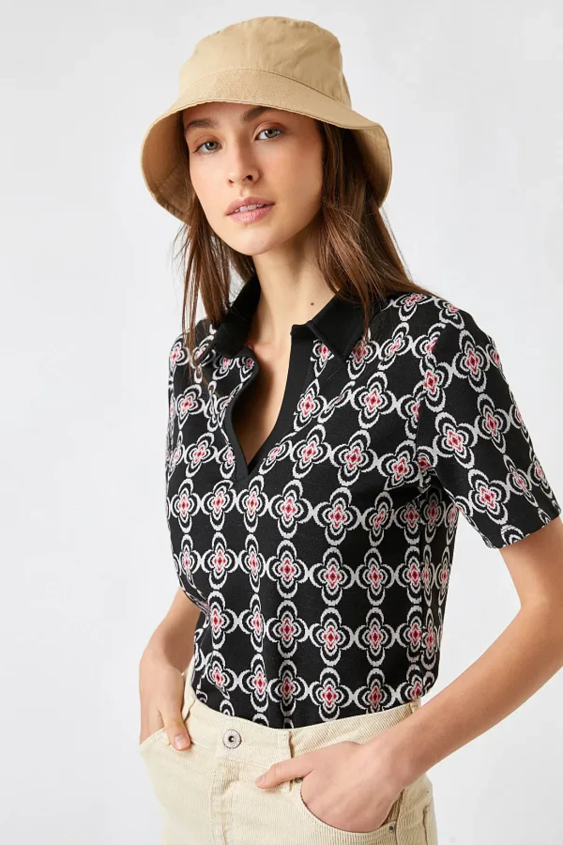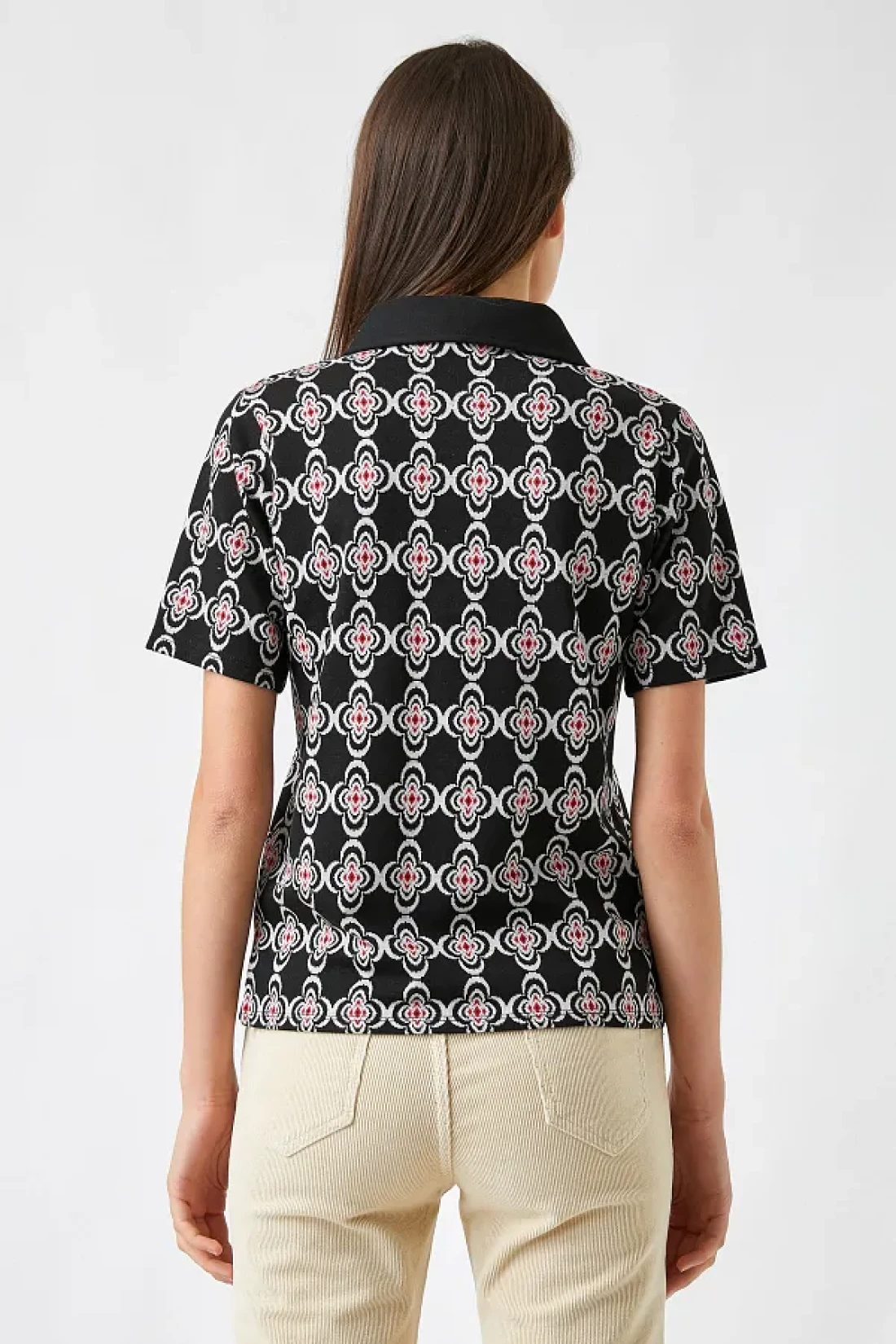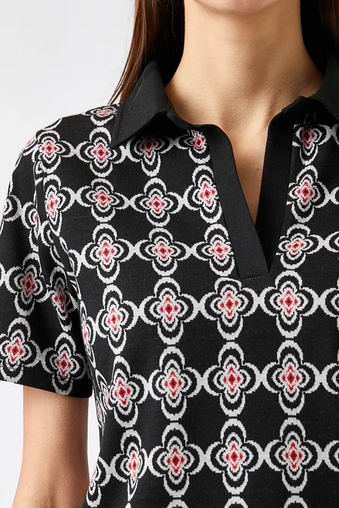 مع صورة ظلية أساسية، يمكن ارتداؤها مع جميع أنواع الأجزاء السفلية، مما يجعلها ضرورية في خزانة ملابسك. يمكن تنظيفه بسهولة وفقًا لتعليمات الغسيل من النوع 1، مما يجعل الصيانة عملية. يساعدك في إنشاء أسلوب حديث وديناميكي بنمطه الهندسي. يوفر تجربة مريحة مع قصته العادية التي تناسب الجسم بشكل مثالي. بفضل تفصيل ياقة البولو، يعطي مظهرًا راقيًا وفي نفس الوقت يصبح جزءًا لا غنى عنه من الملابس العادية.