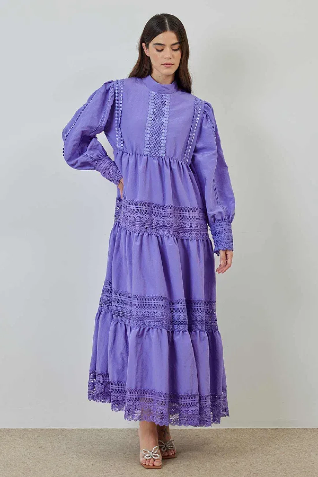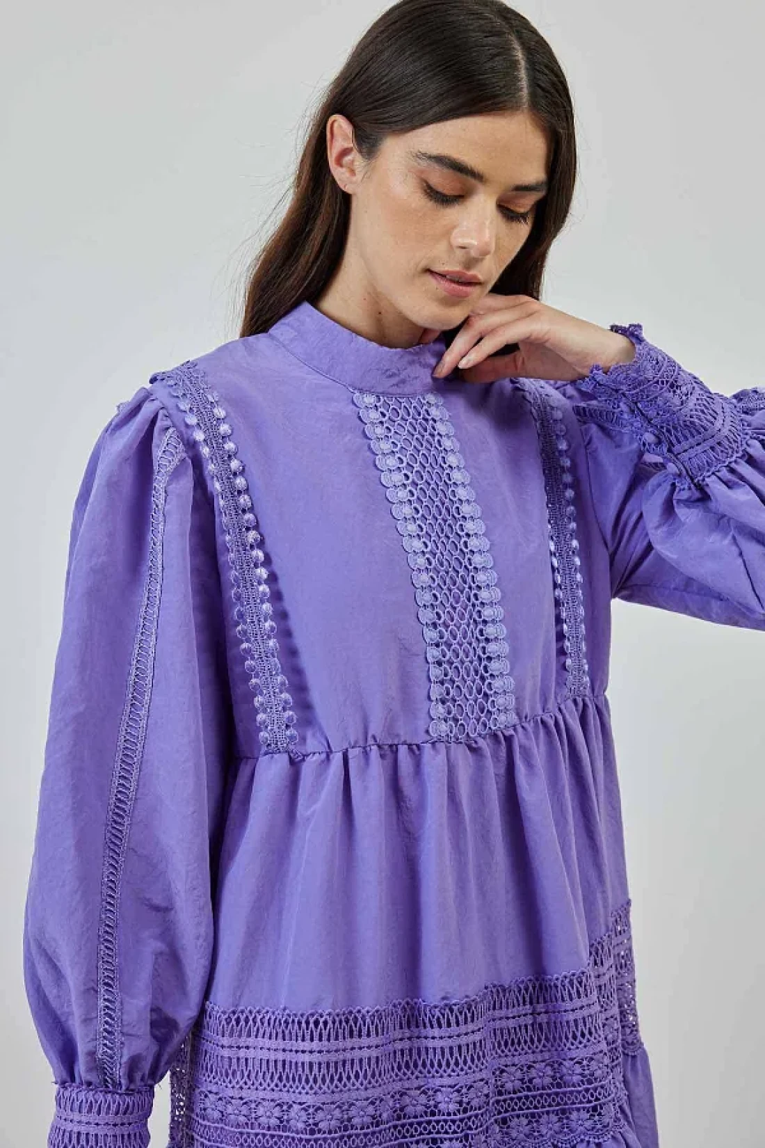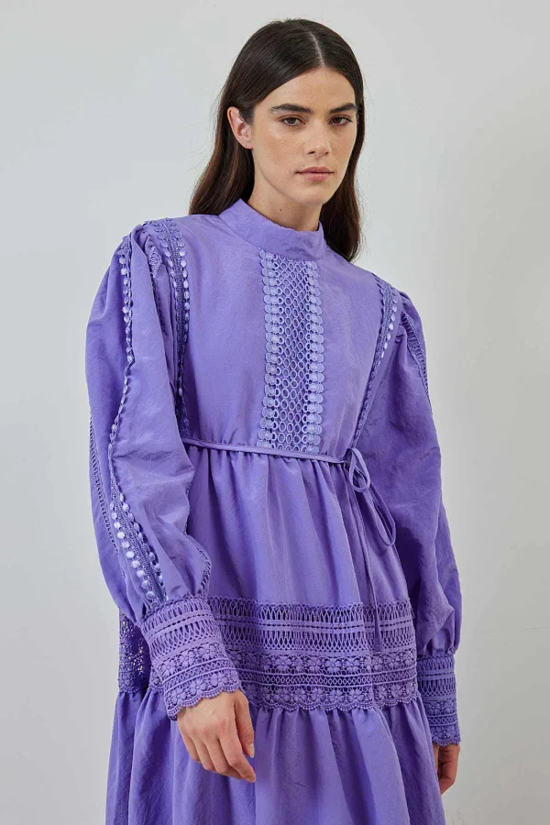 Hooopstore فستان بتفاصيل دانتيل أرجواني