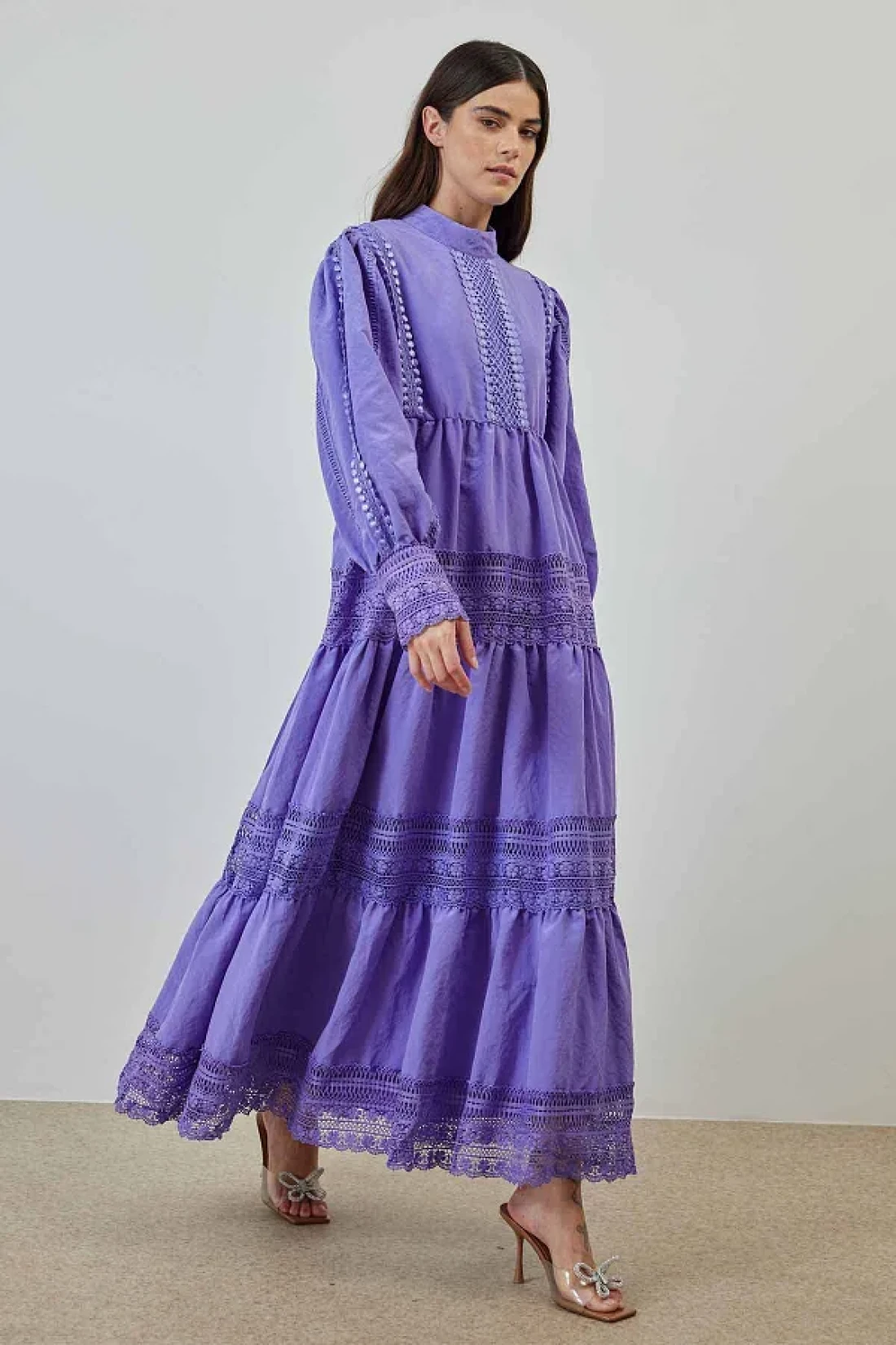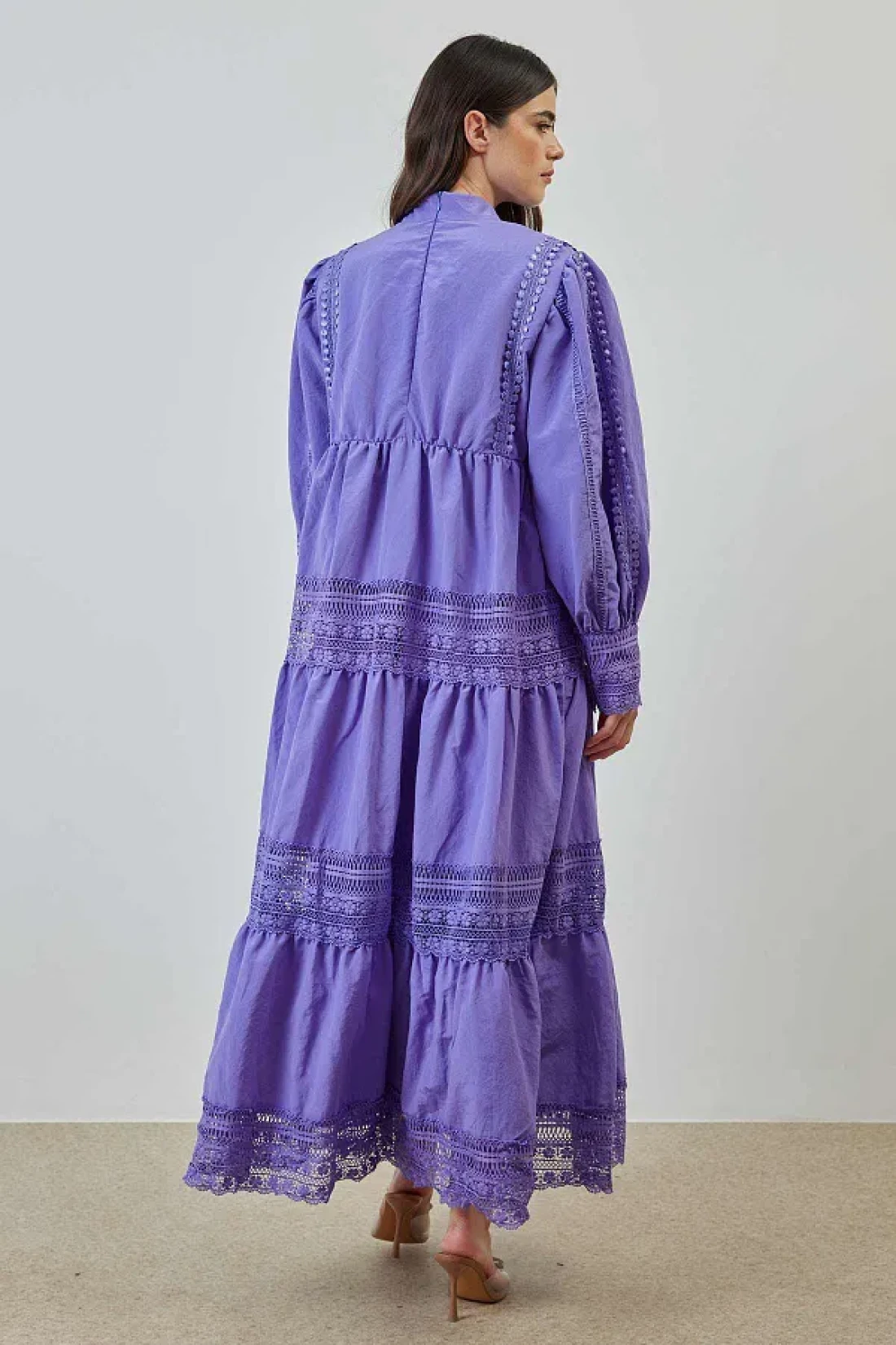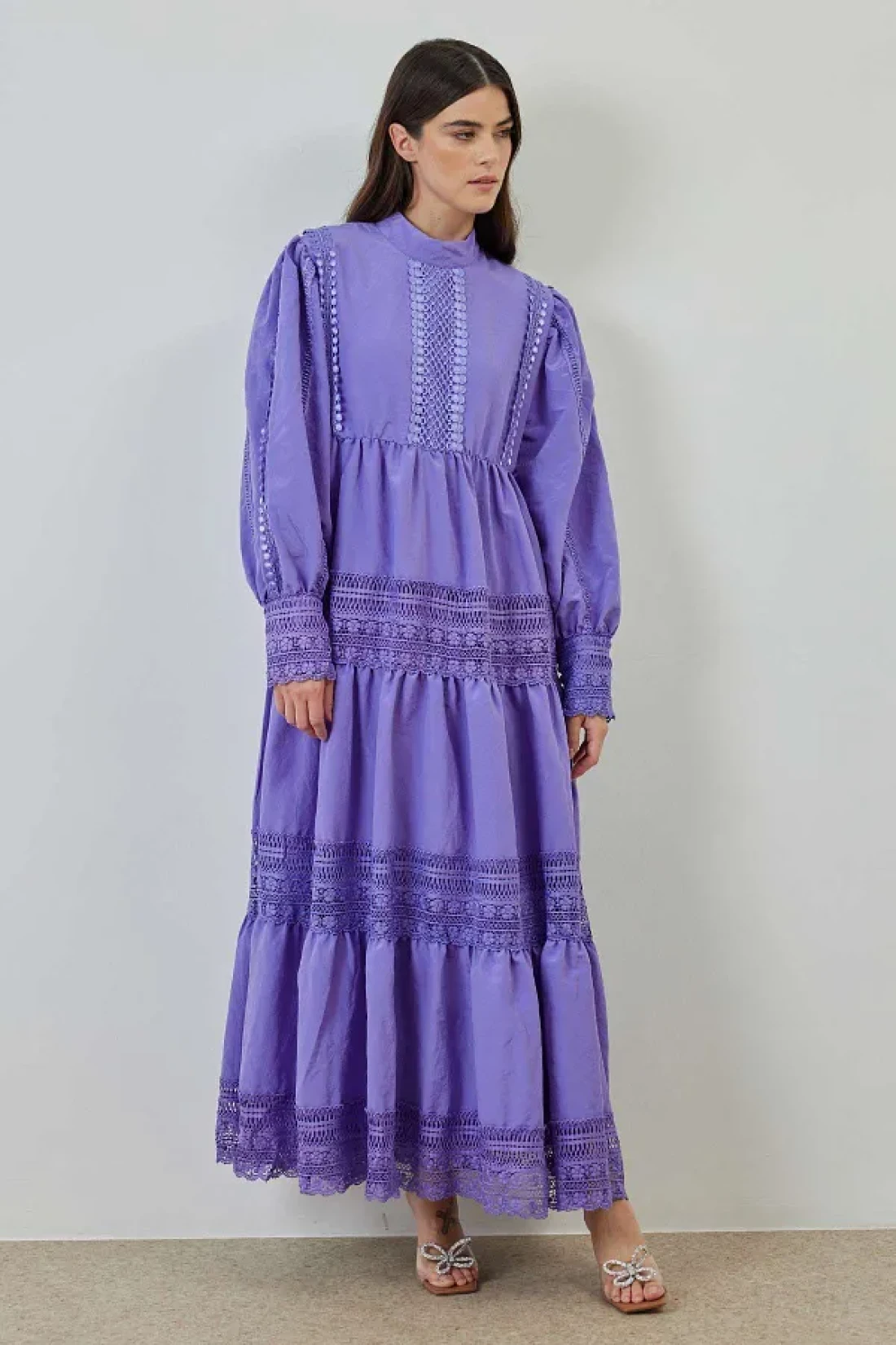 Hooopstore فستان بتفاصيل دانتيل أرجواني