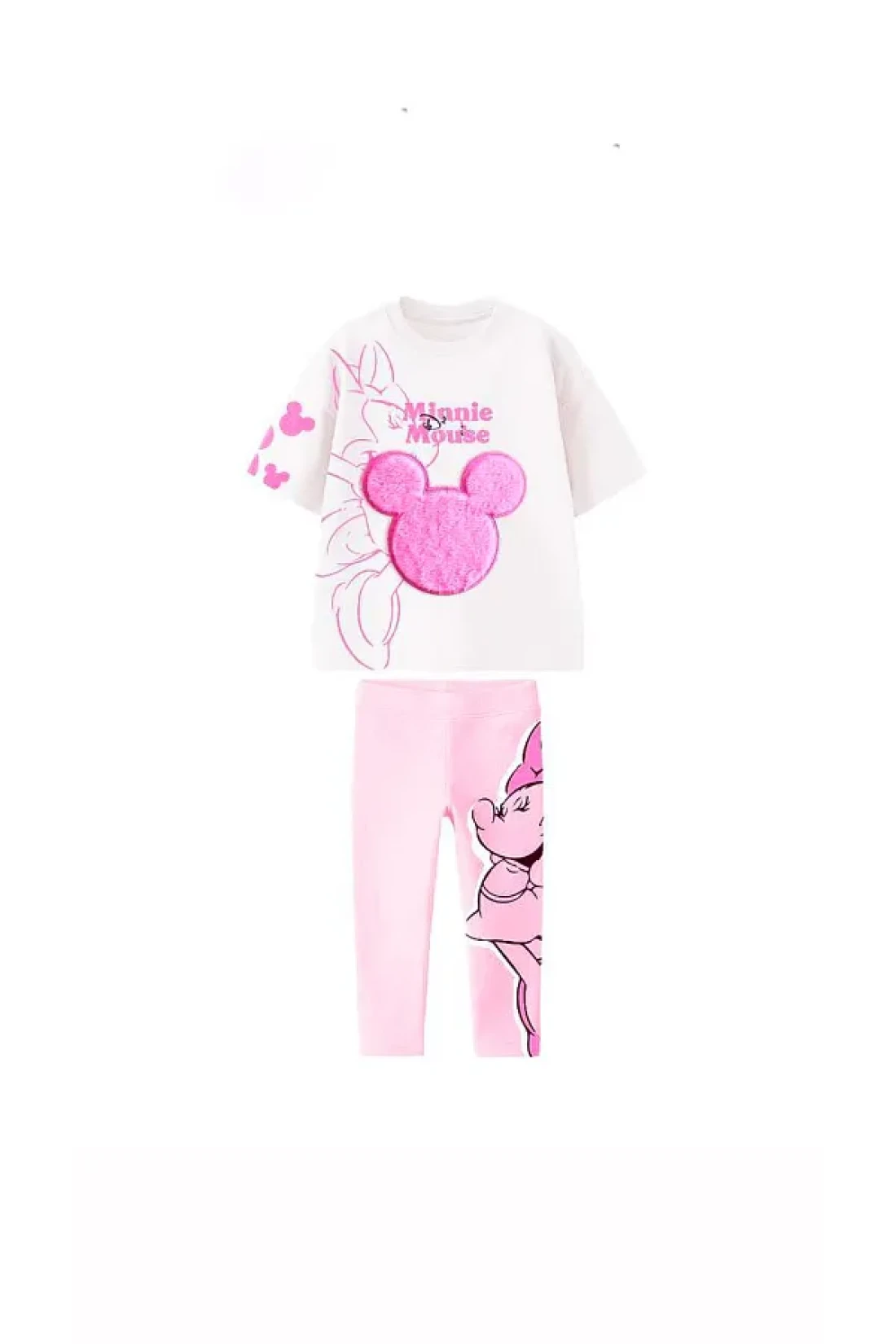 Lolliboomkids طقم بناتي باللون الوردي - تي شيرت قطني بنمط مطرز وطبعة وسروال ضيق، قطعتان