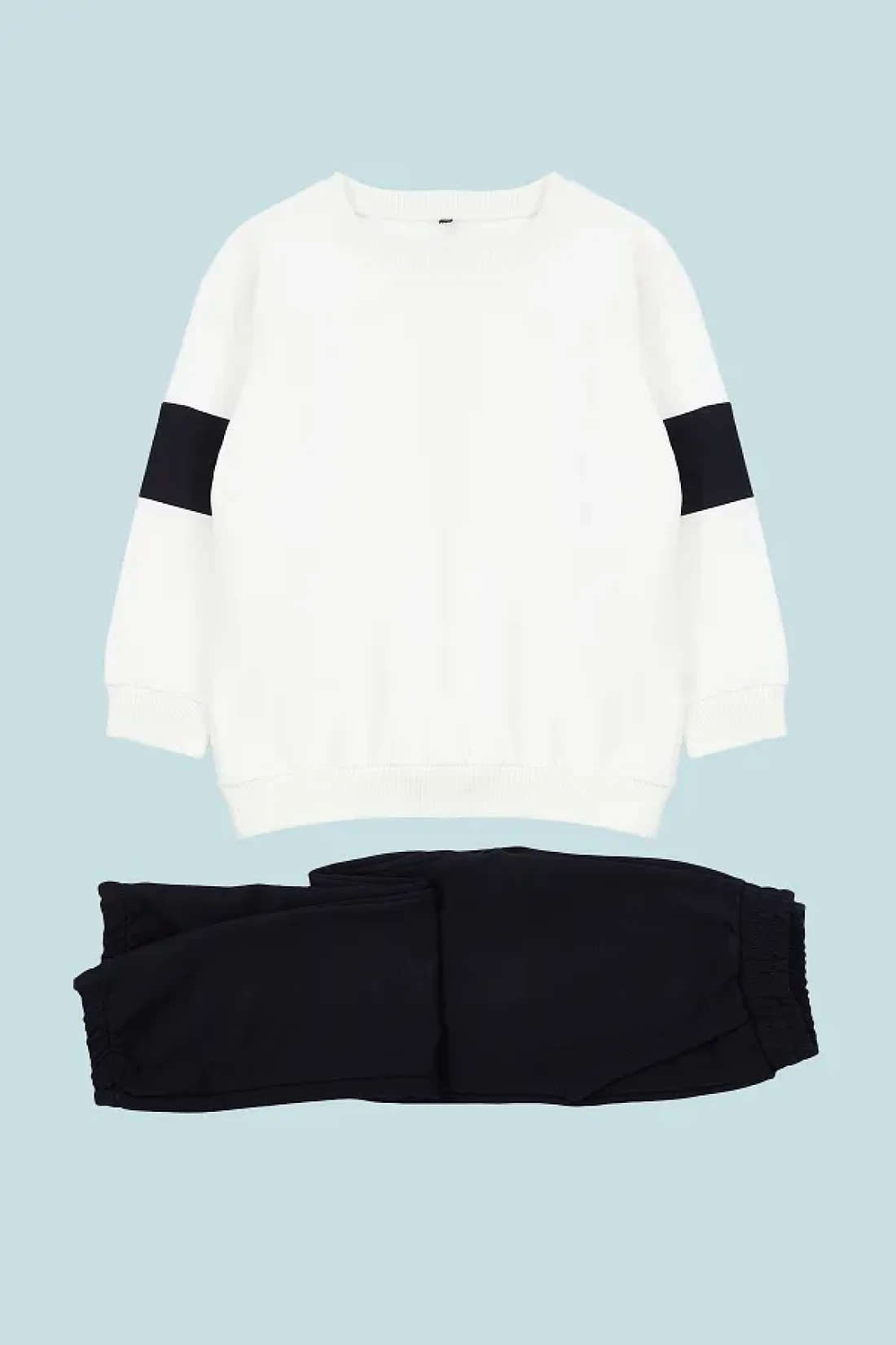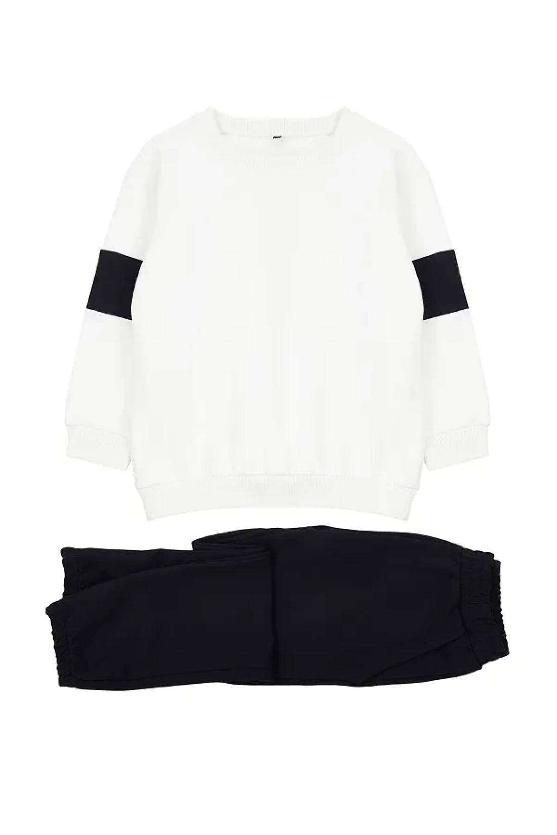 TRENDYOLKIDS طقم سويت شيرت وبدلة رياضية للأولاد من القطن Ecru - كتلة الألوان، TKDAW25AU00019