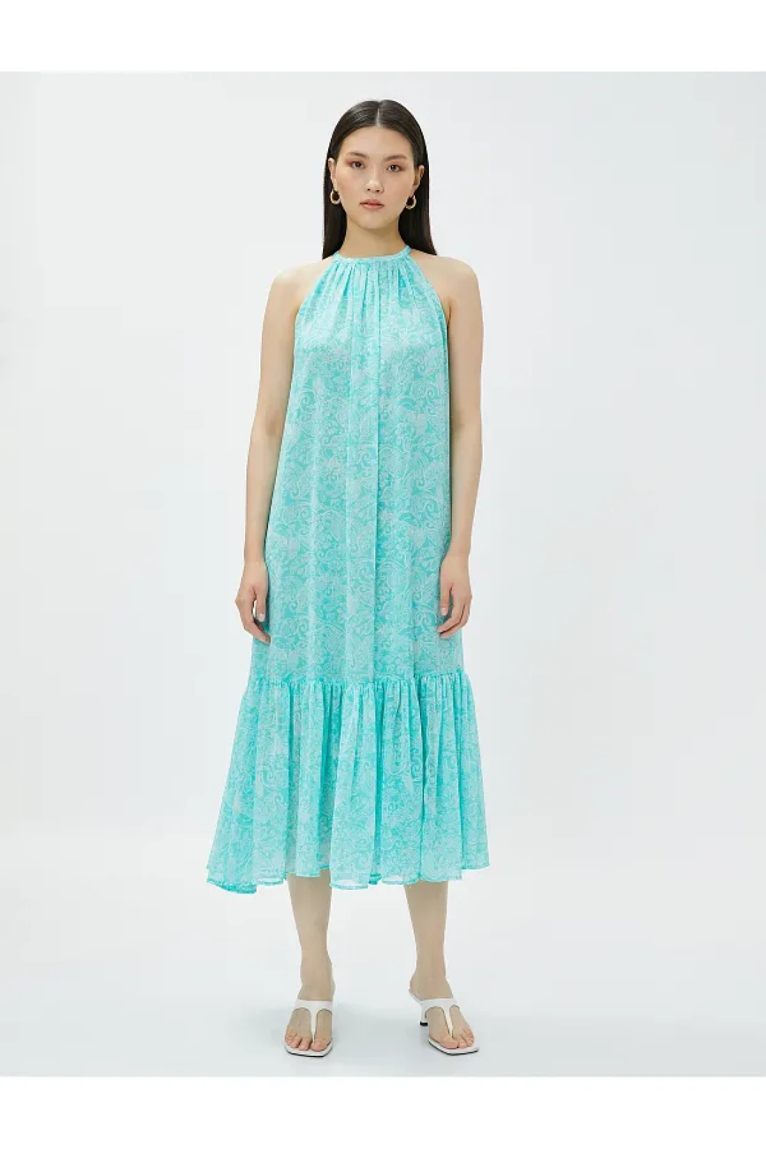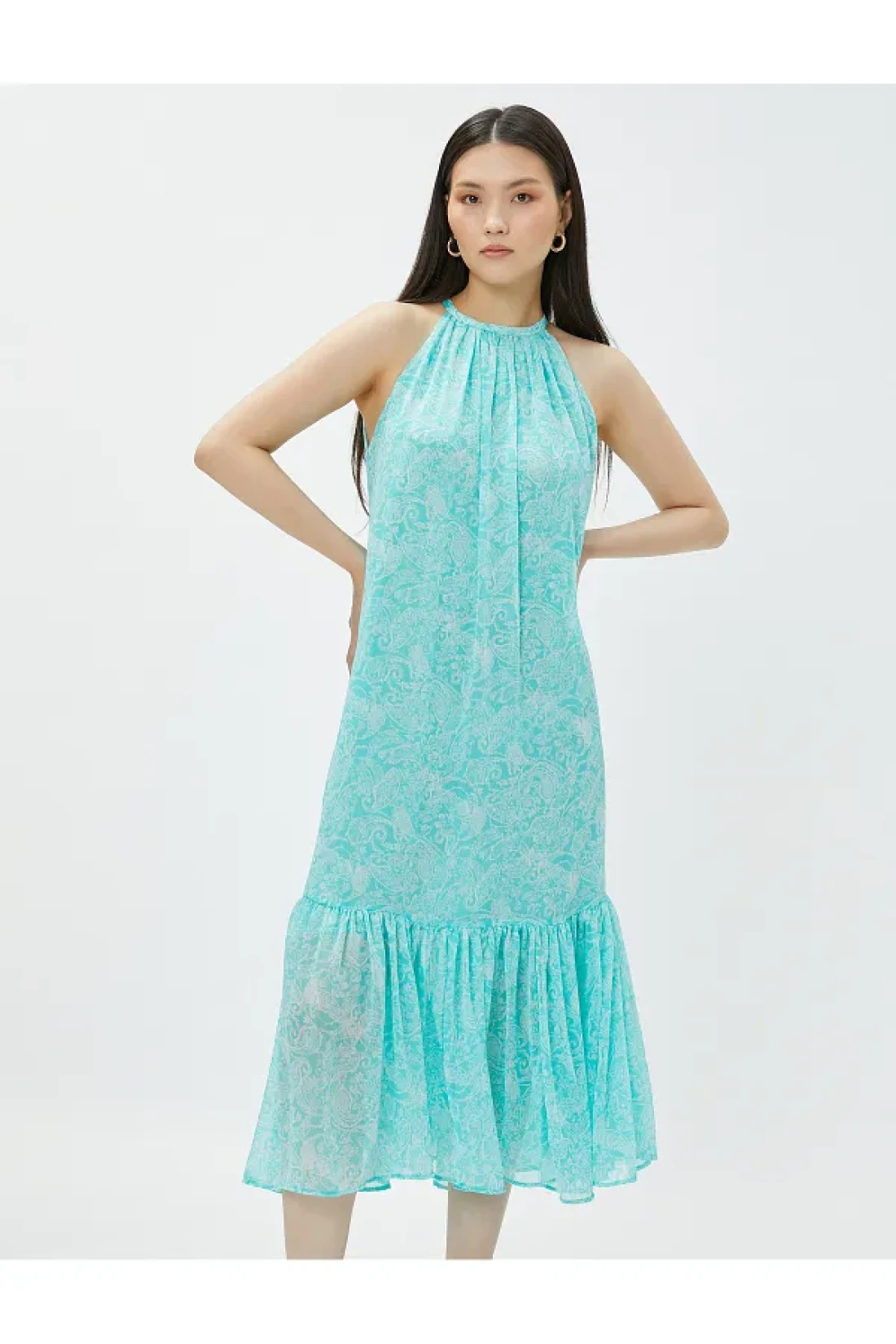 Koton فستان الأزهار ميدي طول الرسن الرقبة