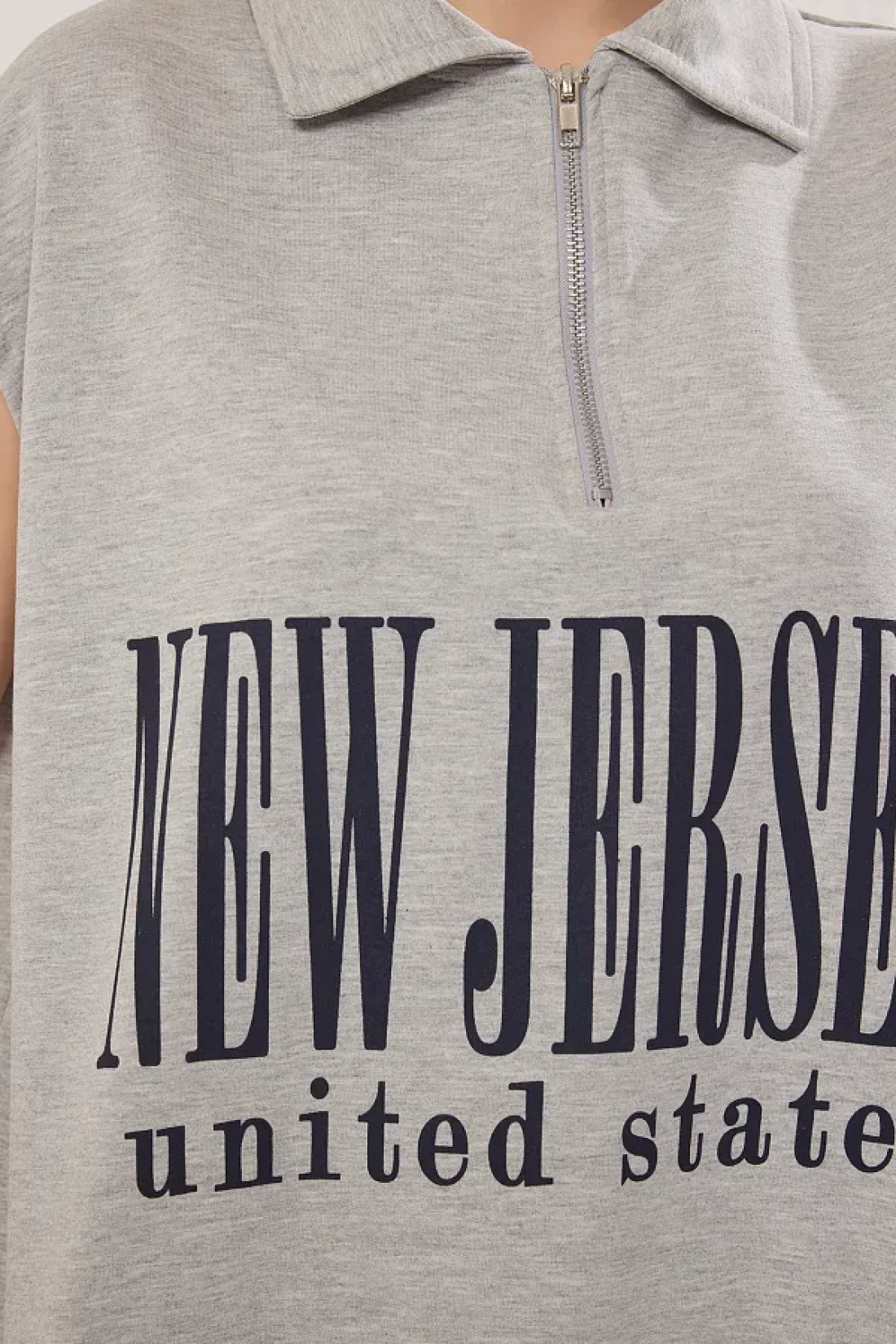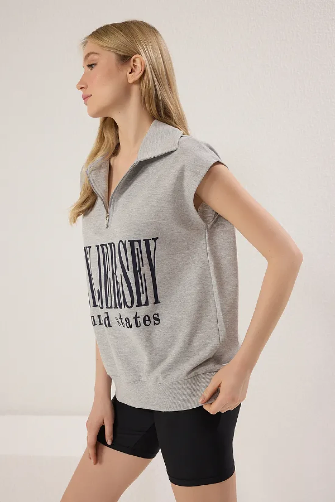 Collection تي شيرت رمادي ميلانج كبير الحجم - طباعة شعار، مقاس TWOSS25TS00116